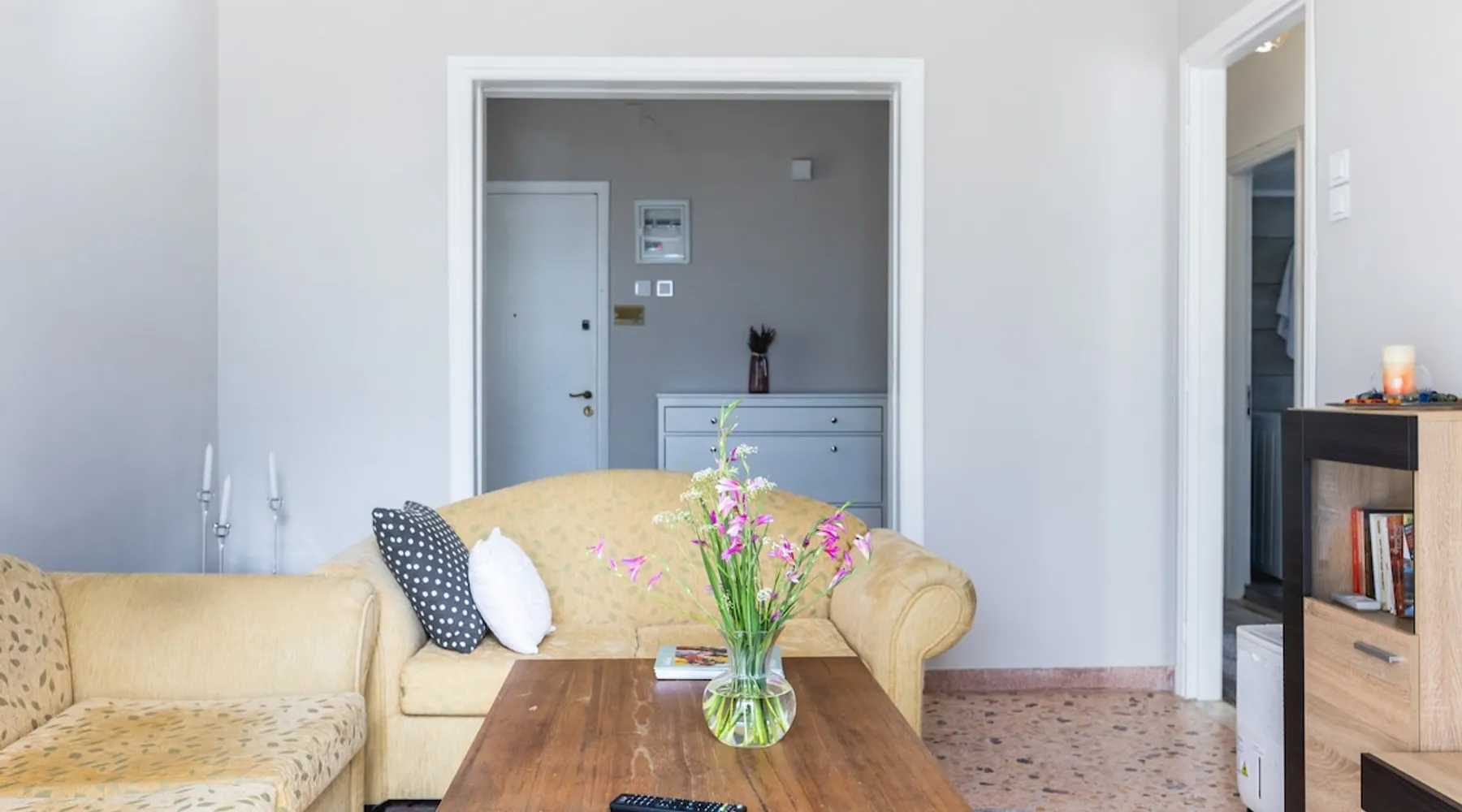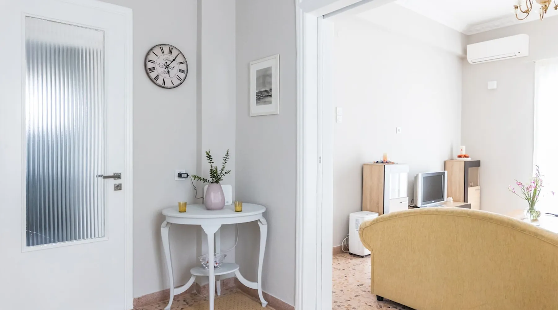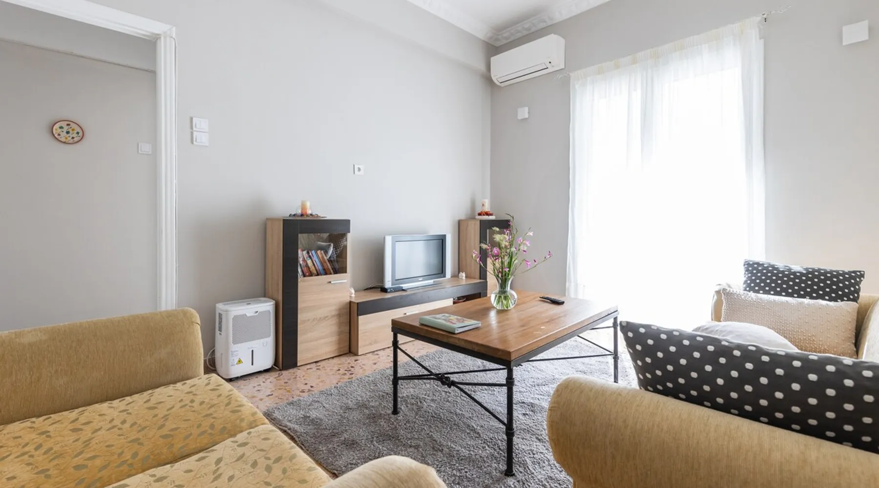 Two bedroom apartment next to the church of Ypapanti. Air conditioning in bedrooms and living room. The apartment is on the first floor. Registration Details 00001918960