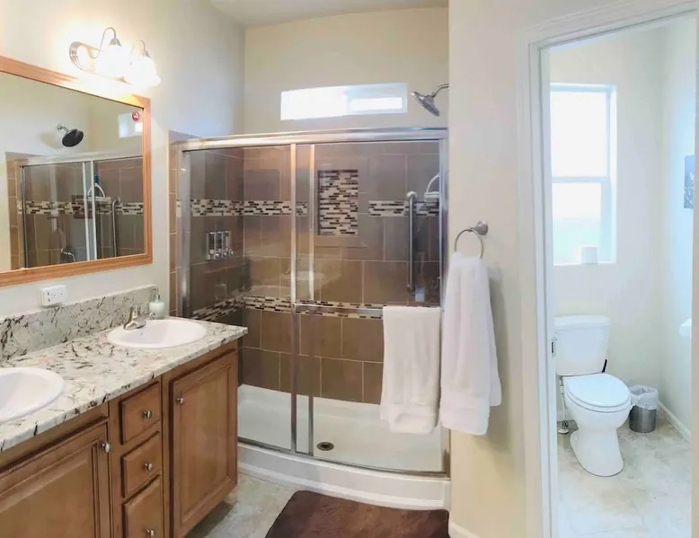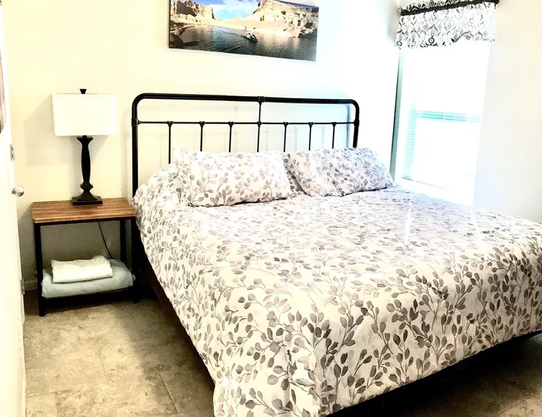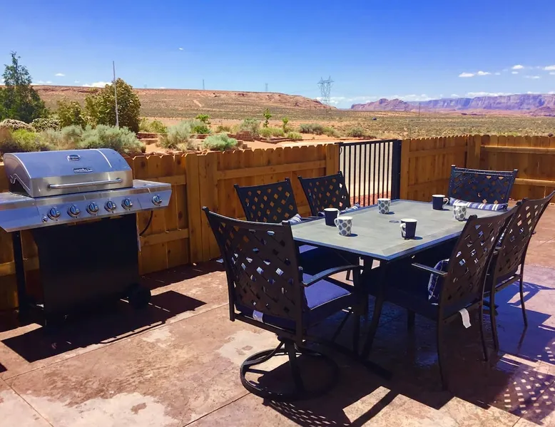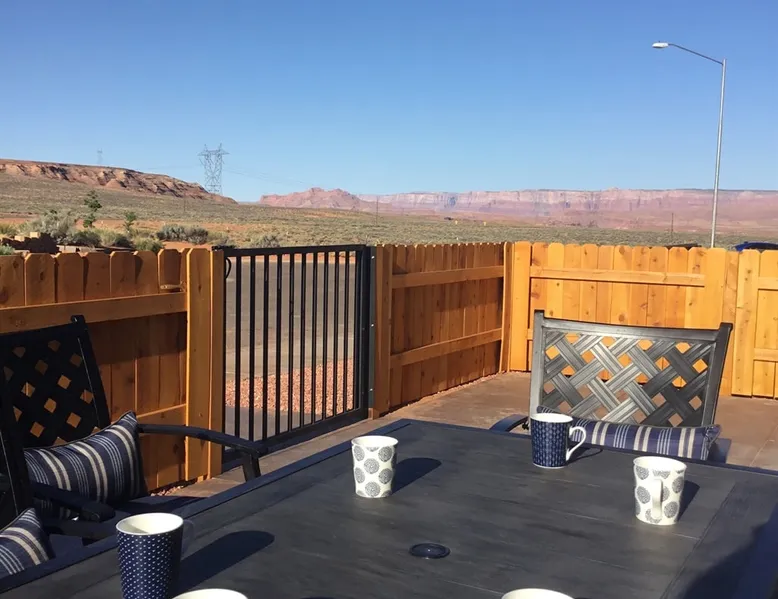 #AntelopeCanyonHouse NEW 2BD 2BA, sleeps up to 4-6 in a tranquil neighborhood on the edge of Page; view of the Vermillion Cliffs from the front courtyard-ng This is a listing for a three bedroom house, but offering only two bedrooms, to allow lower pricing for smaller groups. If you rent this, you get the master bedroom and second bedroom, each with a king sized bed. We lock off the bunk bed room, which saves time and laundry in order to offer you a lower priced option. The space -Boat/Jet ski parking off street - Master bath with walk in shower, 2nd bath with shower/tub & handicapped handle - Kitchen with granite countertops and fully outfitted with electric cook top, black stainless steel fridge, full size oven & microwave, dishwasher, farmhouse sink with garbage disposal, high-quality stainless steel pans, toaster, drip coffee maker, standard dishes, utensils and flatware provided. You'll find most common spices available for cooking use. - Stamped concrete front courtyard with patio furniture, bench on covered porch, perfect for morning coffee and sunset views over 42in fence. -Stainless Steel BBQ - Backyard with 6ft wooden fence to keep your pups safe! Feel free to pull your ATV/dirt bike into the gated driveway for safe storage. - Front driveway fully gated with additional on-site parking. No garage access. - Full size Whirlpool washer / dryer in house. - WIFI & CABLE TV (Page is very remote, all the internet is slow!) - AIR CONDITIONED home for your comfort. - FISHERMAN'S paradise, check out Wayne's Words Forum for ideas and detail Guest access You have access to the entire property except the locked garage & locked 3rd bedroom, this is an entire house to yourself, not shared, no meals provided. Fully equipped kitchen to use Dog crate available on request Iron & Ironing board available on request Pack n Play available, on request, but we are not childproofed Absolutely no smoking of any substance, no vaping or e-cigarettes, inside the house. If you smoke outside, pick up your butts. We provide access to Wi-FI with a 1GB modem, but please be aware, Page is a small town in a remote area, the internet sometimes goes up & down for no apparent reason. We provide smart TVs with streaming.. Other things to note No parties, no extra guests beyond the original agreed number without permission. Sign rental agreement at booking with ID upload for security A security Deposit Hold of $300 is required