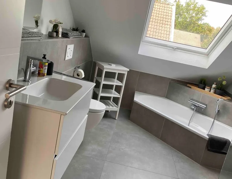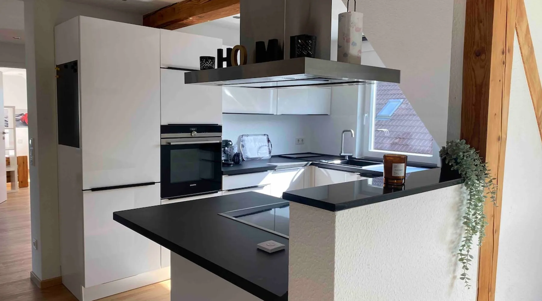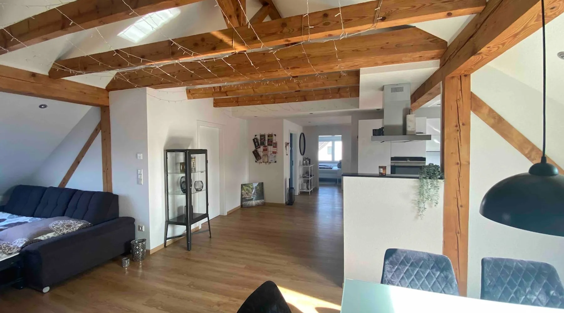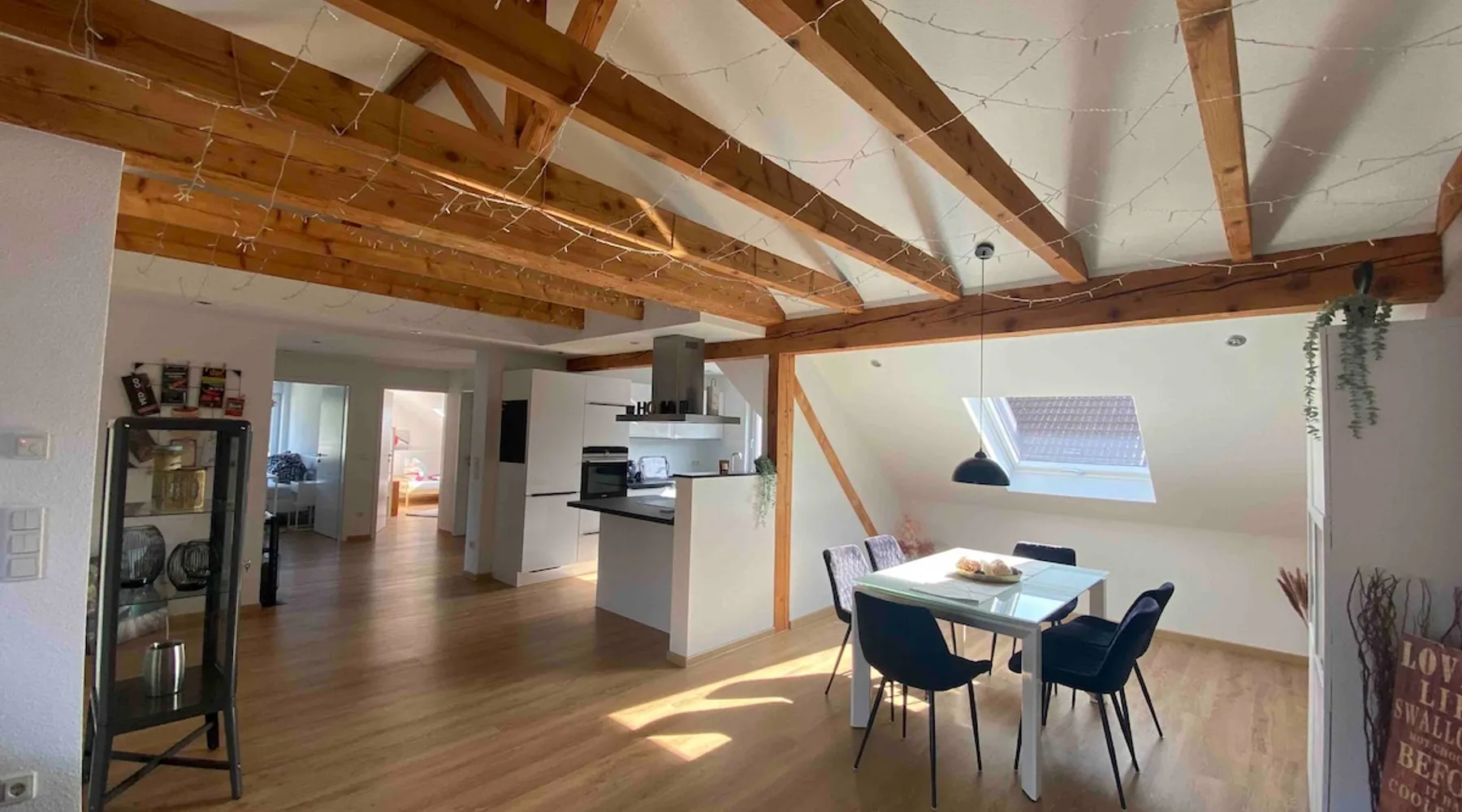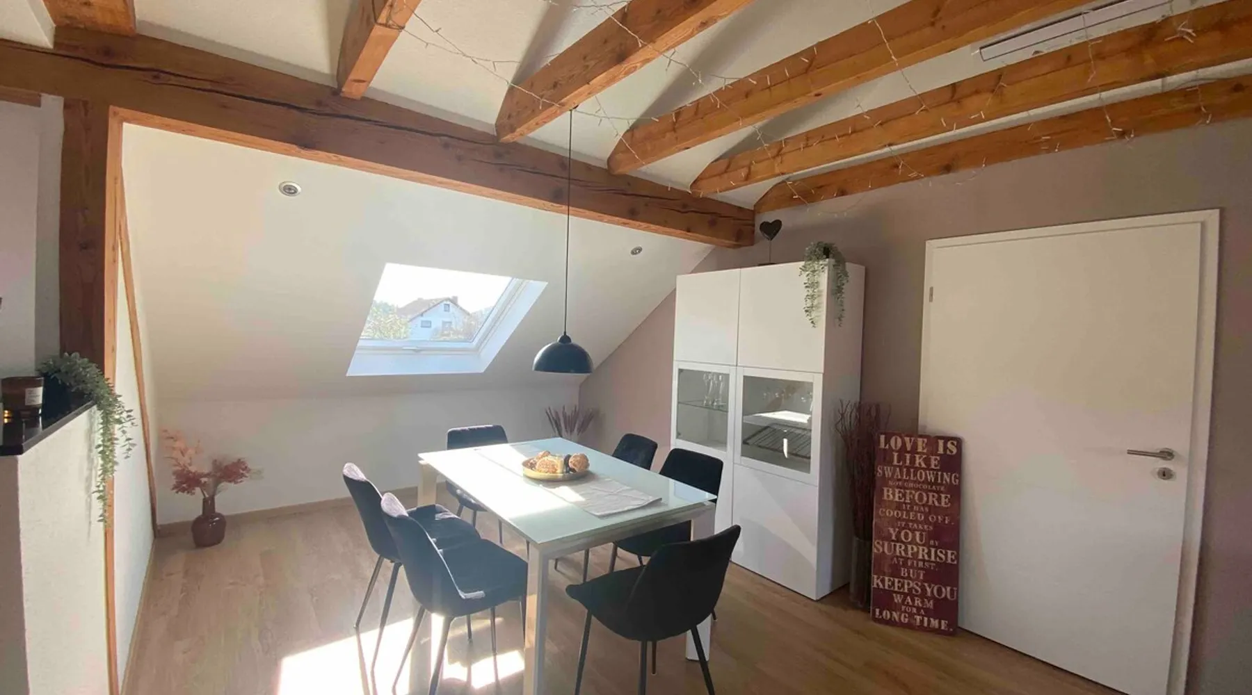 The apartment is quiet and thus offers pure relaxation! In addition, the modern bathroom is equipped with underfloor heating and thus offers the ideal conditions for a relaxing bath. The Wi-Fi for you in the apartment is included. So nothing stands in the way of relaxing film evenings on the sofa. In the well-equipped kitchen, you can easily and quickly conjure up your favorite food. See you soon, looking forward to seeing you soon! The space Our apartment PettCasa was completely renovated in 2019/20, it has everything you need for everyday life. Perfect for couples, families or groups looking for a relaxing break in a stylish environment. All utilities (electricity, water, heating, internet) are included in the price. However, we ask for a mindful and economical use of energy. Excessive use (e.g. continuous operation of fan heaters, air conditioners or charging electric cars) is not included in the nightly rate and can be charged separately We have prepared for the following things: Bed linen, towels, toilet paper, paper towels, cleaning products as well as cleaning cloths and milk sponge, oil, salt, pepper, vinegar as well as coffee (1x 1x guest/guest), milk and sugar. Other coffee capsules can be bought through us if desired, for €0.70/ capsule. Guest access The entire attic is used exclusively by you. Other things to note Smoking is strictly prohibited throughout the apartment. We are happy to provide an ashtray that you can use on the outside stairs.