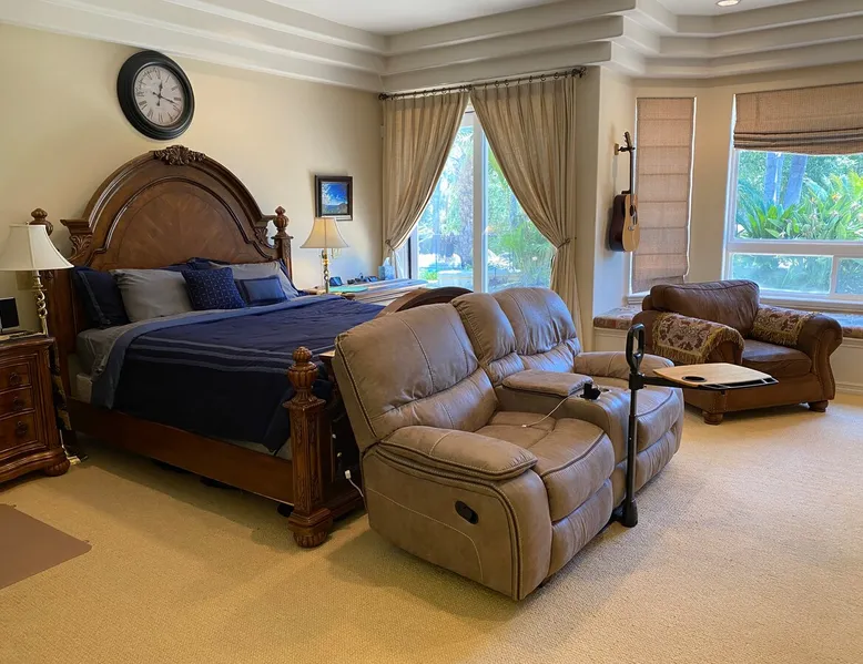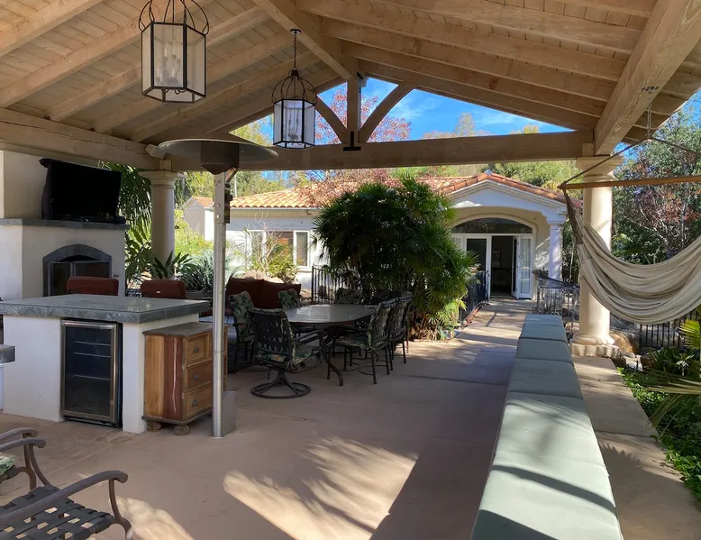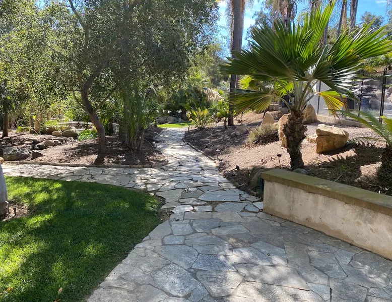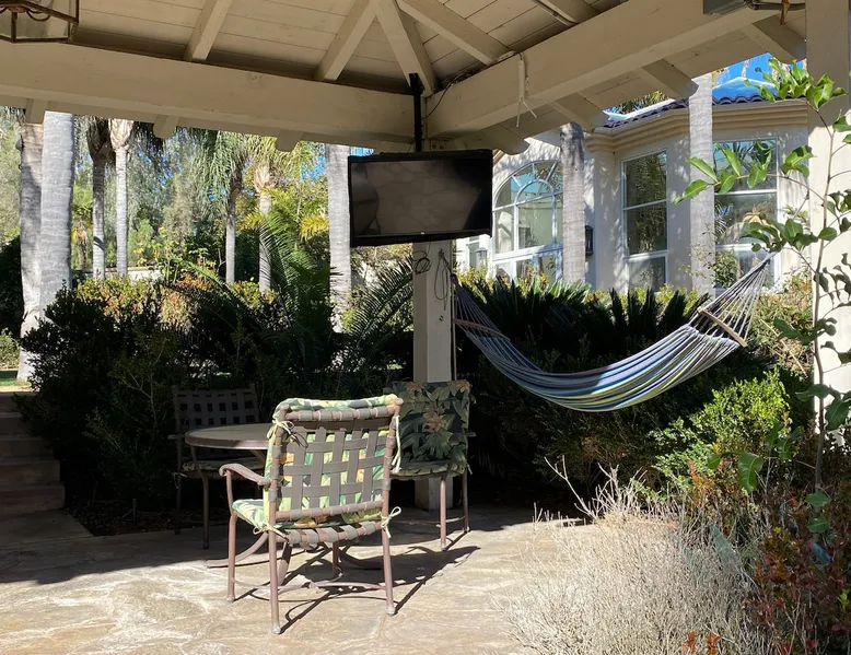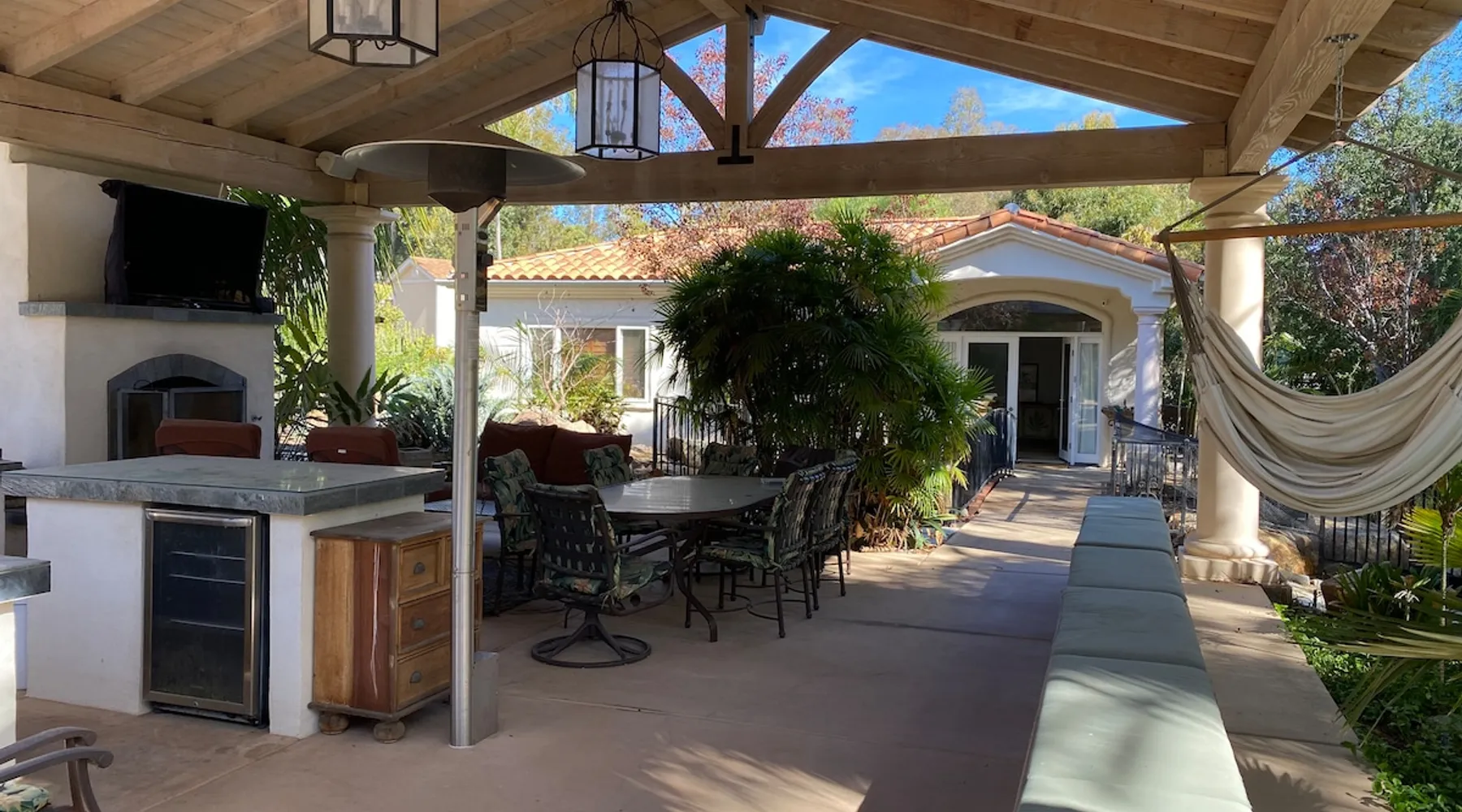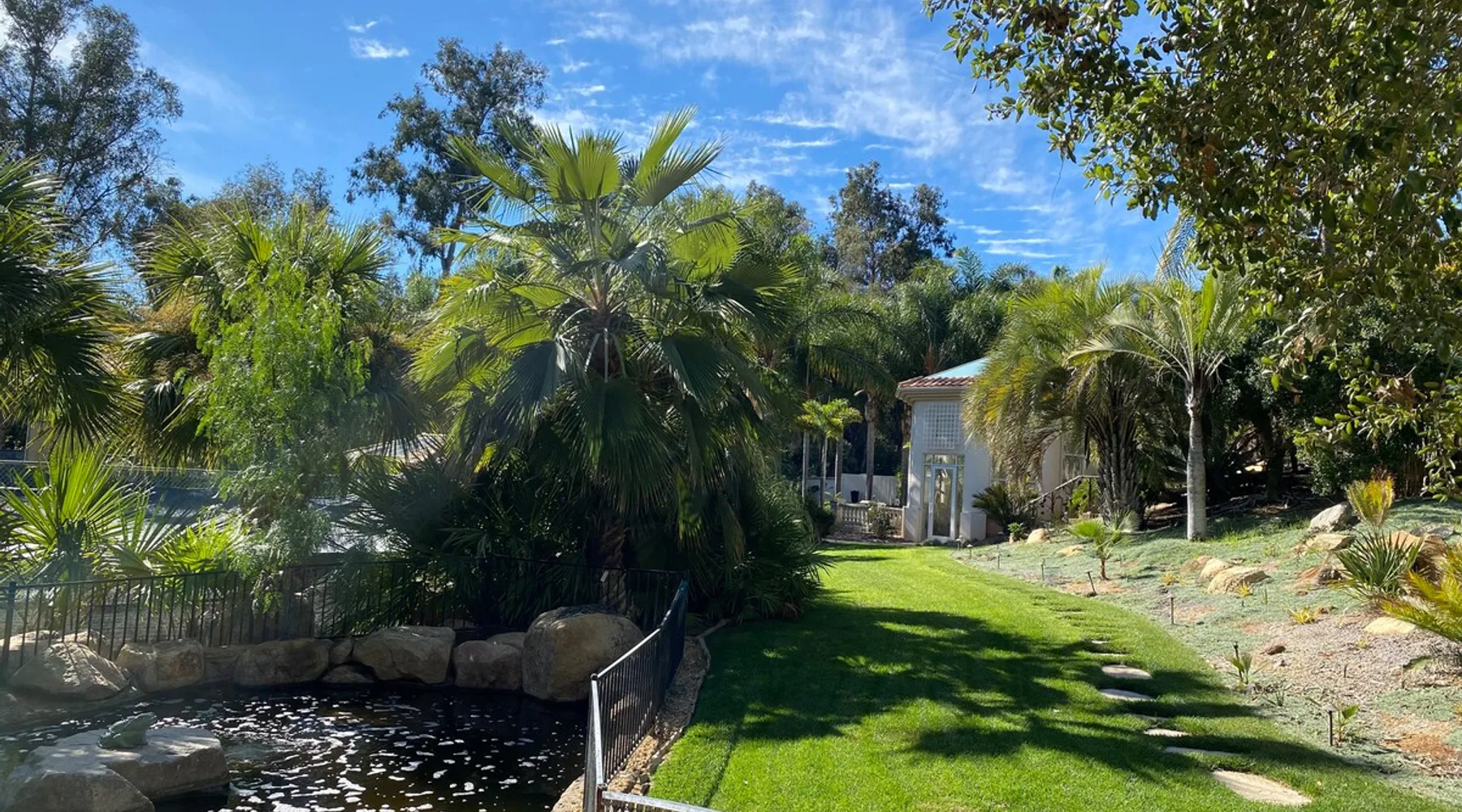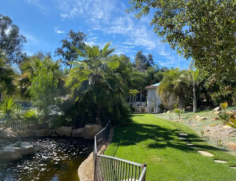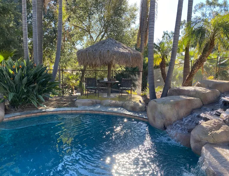 Take it easy at this unique and tranquil family home in a high end neighborhood. There is outdoor dining and grilling, an outdoor fireplace and a pool and jacuzzi. There are two koi ponds, a tennis court and a rose garden. The space There are over 400 palm trees and cycads on the estate as well as 50 rose bushes, fruit trees and other luxurious amenities. There is a stream and 2 koi ponds and it has a quiet serene feel to it. Even though the little stream is going 24/7, if you close the windows, you can't hear it at all. This is a very quiet neighborhood perfect for someone who wants to relax. Guest access Feel free to sample fruit from the fruit trees or wander the rose garden or play some tennis. Please follow signs on the property and don’t go in the conservatory. There are some really prickly things in there. Guests do not have access to the cottage, garage and 3 closets in the house Other things to note For liability purposes, when you make your reservation, please include all guests who will come on to the property, even if they are only there during the day and do not plan to stay over night. The Residence and the patio outside the family room are private spaces for this reservation. All other outdoor amenities including the pool, jacuzzi, tennis court etc. are shared spaces. They are shared with me and my family and/or other guests that are staying in my RV or in a cottage on the back of the property. The pool is not heated. The water temperature is good for swimming from sometime in April through mid October. The water temperature in April and May, as well as October can be cooler. You are free to swim in the pool other times of the year as well, but the water will be cold. The Jacuzzi can be heated up year round. The price of natural gas tripled here earlier this year so if you do heat up the Jacuzzi, we ask that you heat it up right before you use it and turn it off right after you get out. Also, I have the control panel for the Jacuzzi and pool set up so that you cannot heat up the pool.. However, if you know what you’re doing, you can change the settings so that you can turn the heater in the pool on. Having said that, we do not allow it because the cost is prohibitive. If you change the settings and turn on the pool heater, a penalty fee of $1000 and $200 per day to pay for the gas will be charged to your account. Poway is the city in the country. It is just far enough away from the ocean that there is no salty smell in the air but close enough to everything to still enjoy it. There are horse trails all throughout Poway, so don't be surprised if you see a horse crossing the street in front of you. It really is a city, with a bit of country still in the air. Our mayor even wears a cowboy hat 24/7. Never seen him without it. Poway is - 24 minutes to the beach - 29 minutes to downtown San Diego - 36 minutes to Sea World - 38 minutes to Legoland - 26 minutes to Balboa Park - 24 minutes to San Diego Zoo Safari Park - 32 minutes to the Convention Center (Comicon) I am on the property daily doing upkeep, maintenance and working in the garden. If you need anything, let me know.