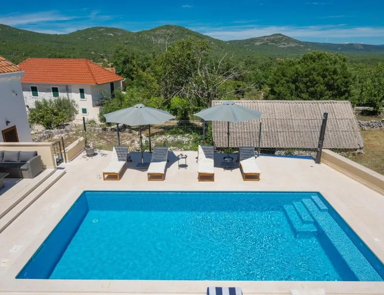 Elegant Accommodations: Unique Villa Pietra in Sestanovac offers a villa with three bedrooms and three bathrooms. The property features a spacious living room, terrace, and garden. Exceptional Facilities: Guests enjoy a sun terrace, outdoor swimming pool, and free WiFi. Additional amenities include a restaurant, games room, and barbecue facilities. Dining Experience: The family-friendly restaurant serves Mediterranean cuisine with vegetarian, vegan, and gluten-free options. Lunch and dinner are available in a traditional and romantic ambiance. Local Attractions: Blue Lake is 22 mi away, and Split Airport is 43 mi from the villa. Activities such as walking tours, hiking, cycling, and snorkeling are available nearby. This villa features a private pool and a fireplace. Boasting a private entrance, this air-conditioned villa features 2 living rooms, 3 separate bedrooms and 3 bathrooms with a walk-in shower and a hairdryer. Guests will find a stovetop, a refrigerator, a dishwasher and kitchenware in the fully equipped kitchen. The villa also comes with a barbecue. Featuring a terrace with garden views, this villa also features a washing machine and a TV with streaming services. The unit has 4 beds.