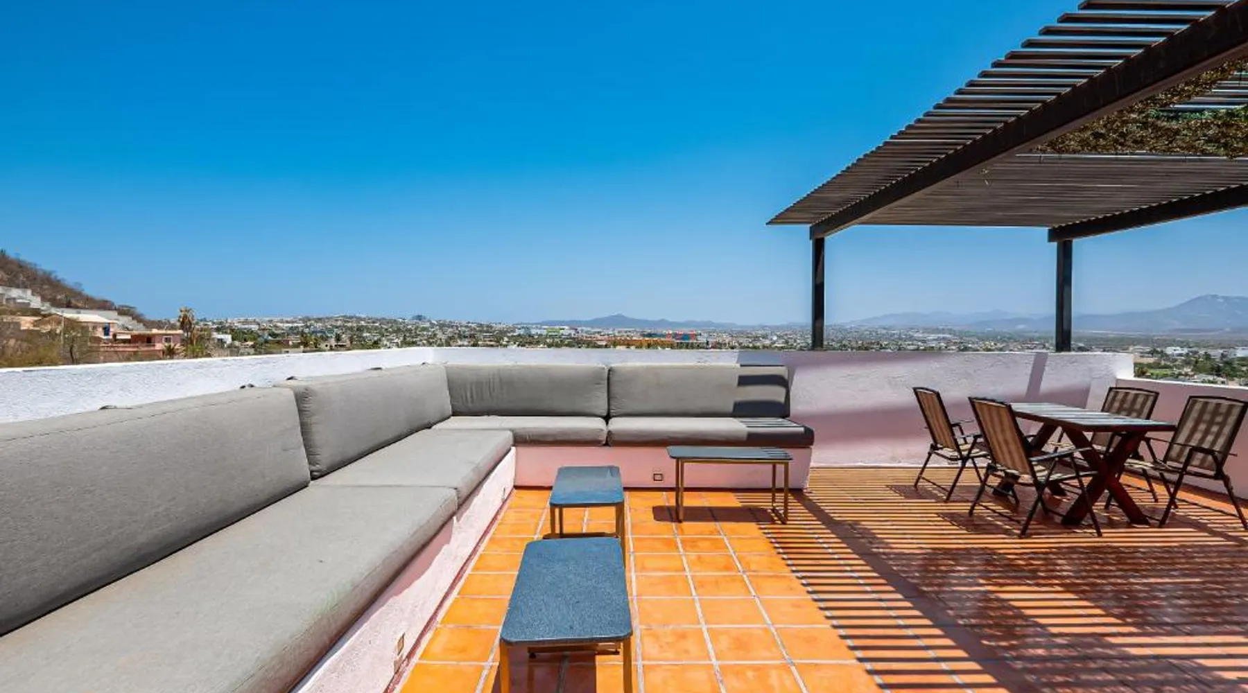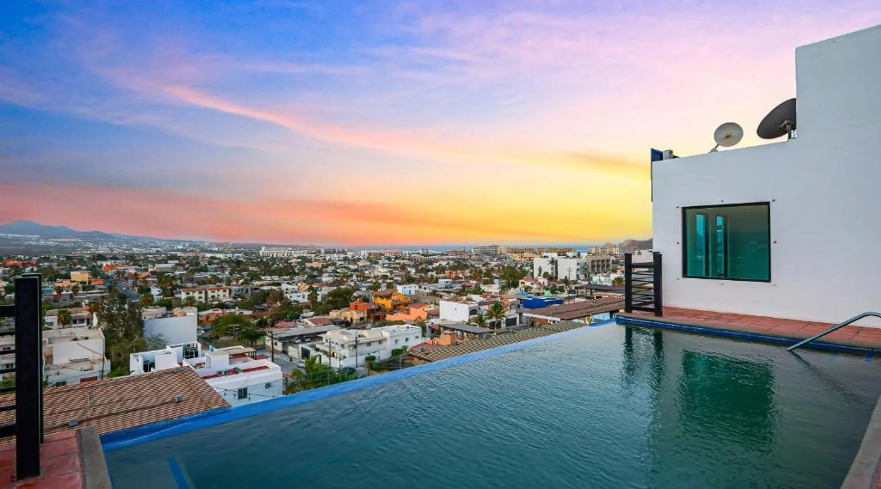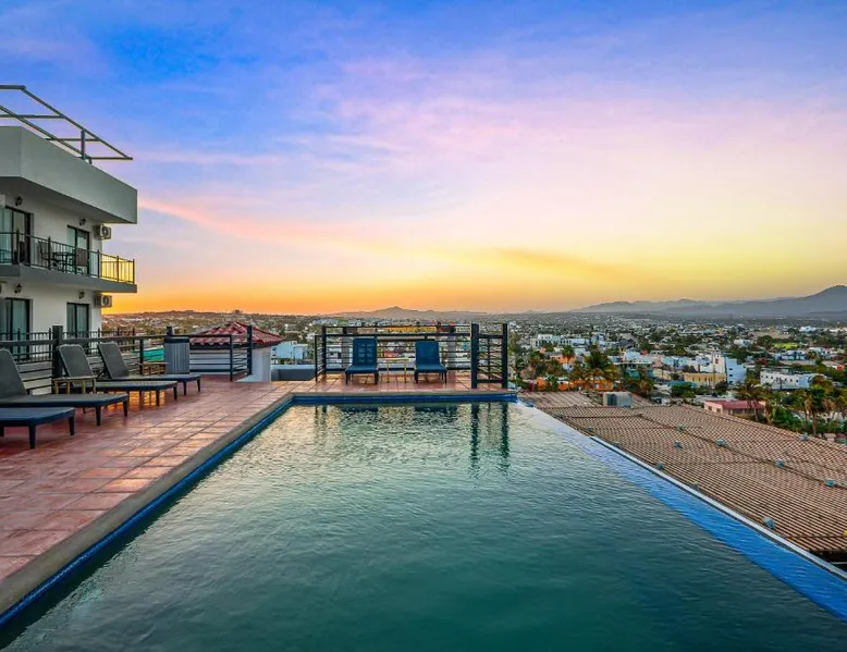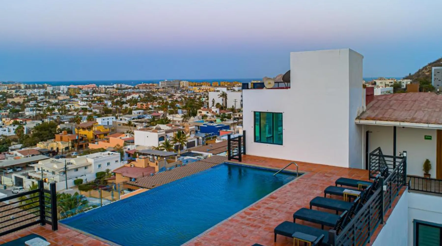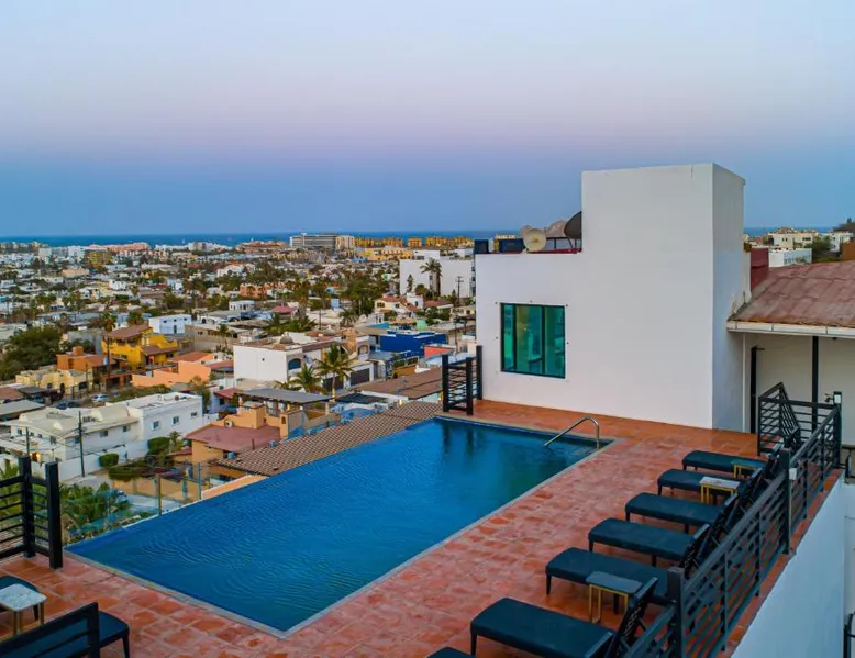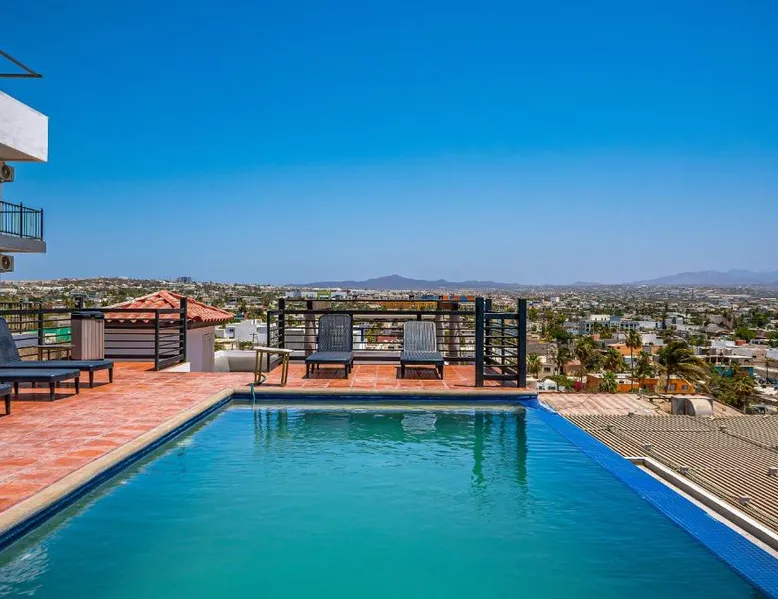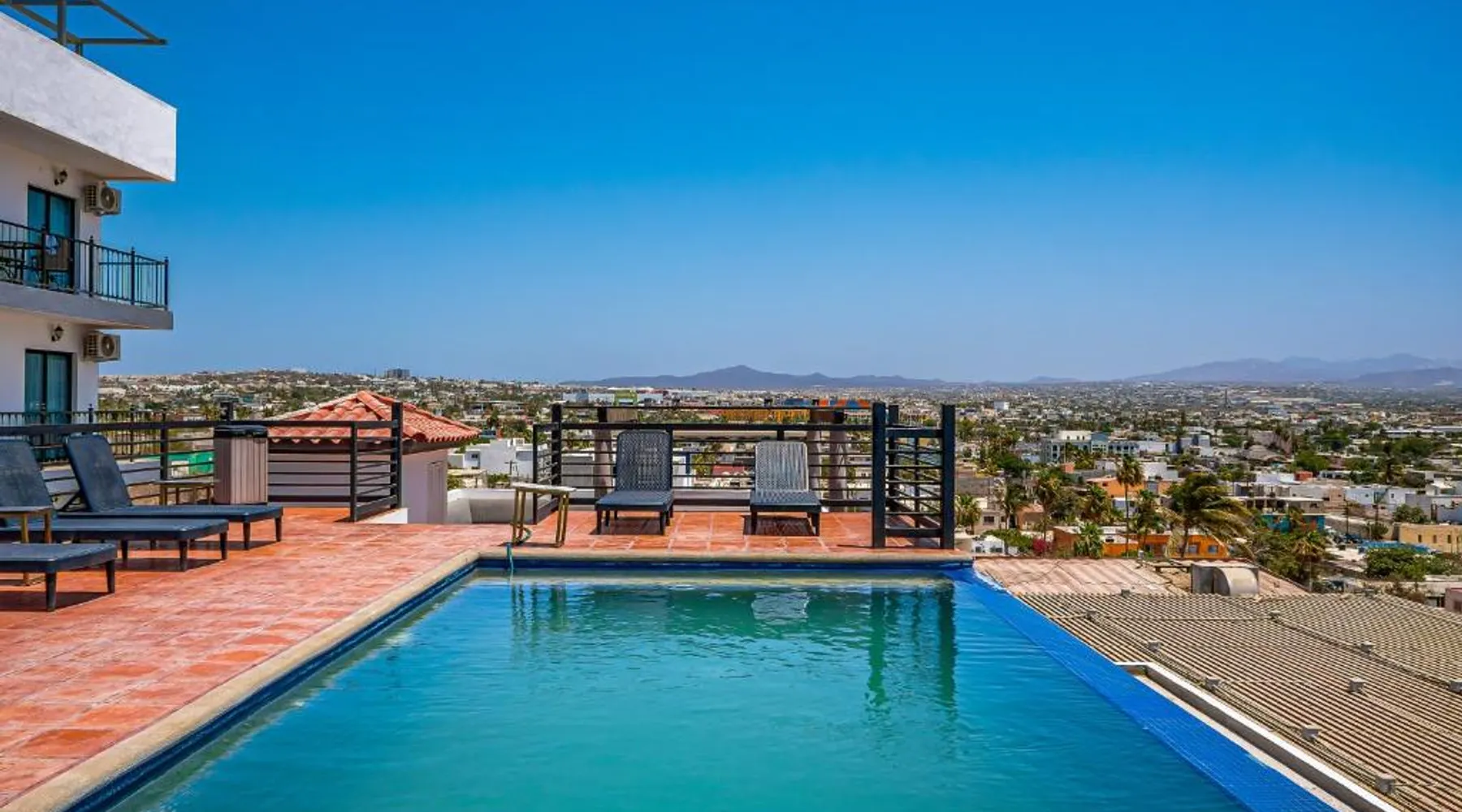 Comfortable Accommodations: Morgan Residences 607 in Cabo San Lucas offers three bedrooms and three bathrooms. Each unit features a kitchenette, balcony, and terrace with city views. Exceptional Facilities: Guests can enjoy a rooftop swimming pool, spa facilities, and a terrace. Additional amenities include a fitness room, outdoor seating area, and picnic area. Convenient Location: Located 27 mi from Los Cabos International Airport, the aparthotel is 1.1 mi from Marina Cabo San Lucas and 1.6 mi from Medano Beach. Nearby attractions include El Arco and Cabo San Lucas Country Club. This suite's standout feature is the infinity pool. Featuring 3 bedrooms, this suite offers 3 bathrooms with a walk-in shower, a seating area and terrace where you can relax. Guests will find a stovetop, a refrigerator, kitchenware and a microwave in the well-fitted kitchen. The suite also has a barbecue. Boasting a balcony with city views, this suite also offers a private entrance and a flat-screen TV. The unit has 4 beds.