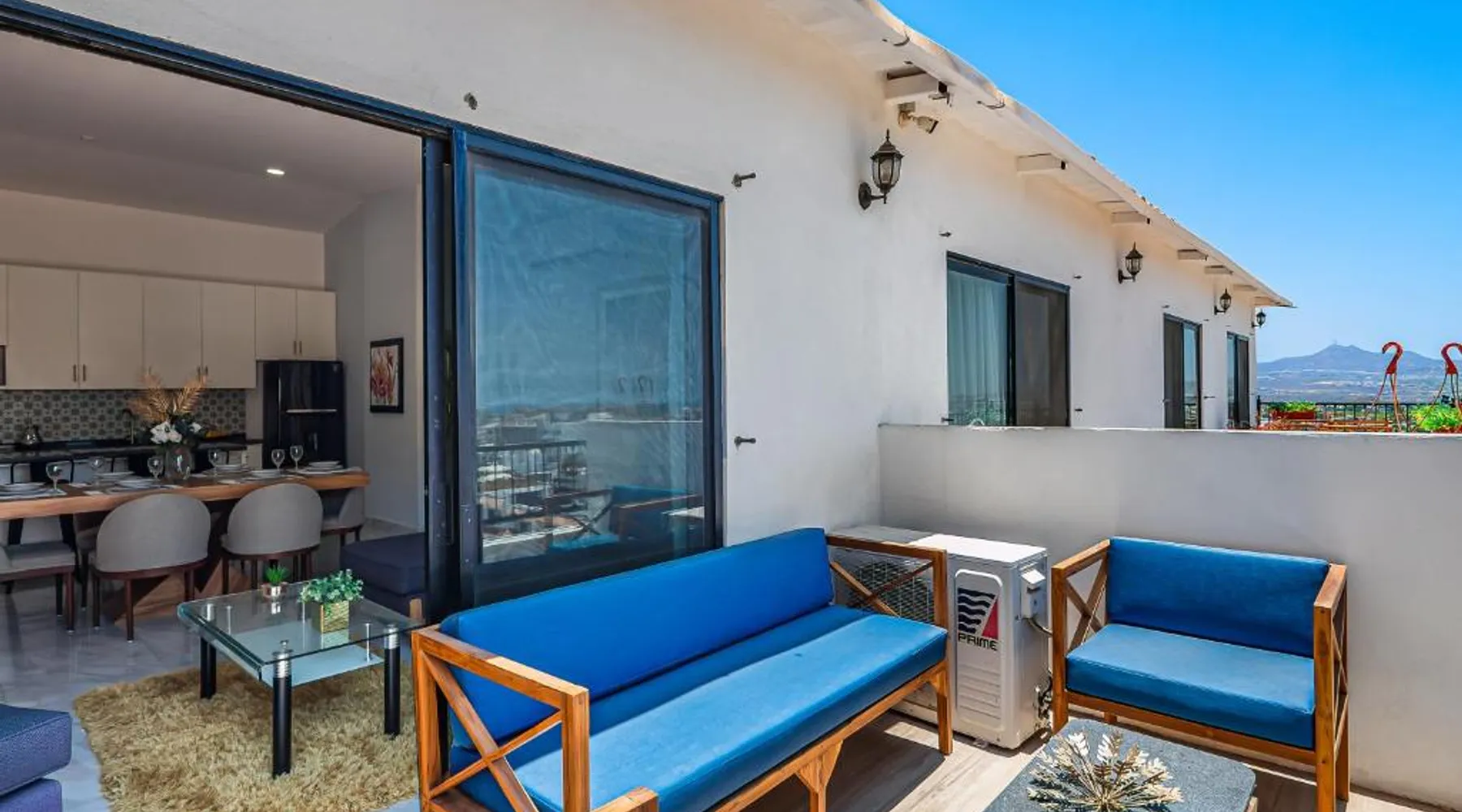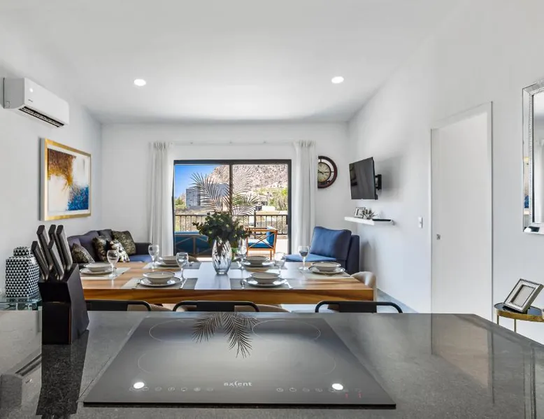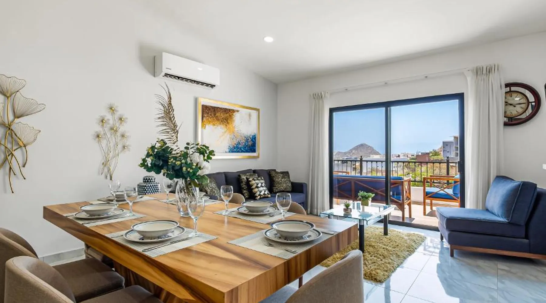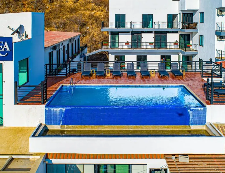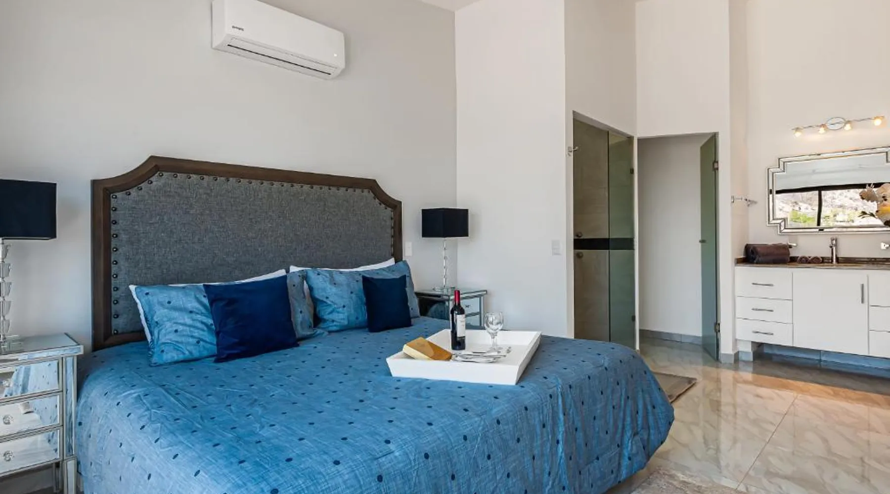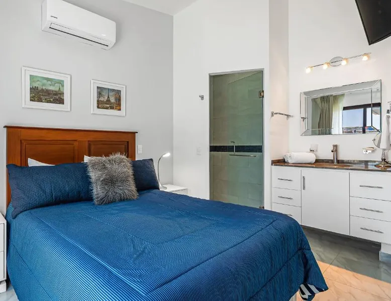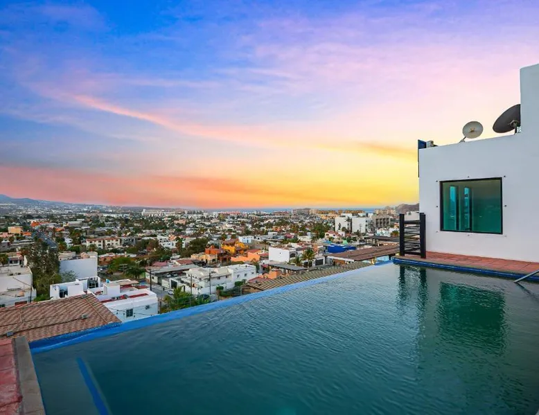 Comfortable Accommodations: Morgan Residences 607 in Cabo San Lucas offers three bedrooms and three bathrooms. Each unit features a kitchenette, balcony, and terrace with city views. Exceptional Facilities: Guests can enjoy a rooftop swimming pool, spa facilities, and a terrace. Additional amenities include a fitness room, outdoor seating area, and picnic area. Convenient Location: Located 27 mi from Los Cabos International Airport, the aparthotel is 1.1 mi from Marina Cabo San Lucas and 1.6 mi from Medano Beach. Nearby attractions include El Arco and Cabo San Lucas Country Club. This suite's standout feature is the infinity pool. Featuring 3 bedrooms, this suite offers 3 bathrooms with a walk-in shower, a seating area and terrace where you can relax. Guests will find a stovetop, a refrigerator, kitchenware and a microwave in the well-fitted kitchen. The suite also has a barbecue. Boasting a balcony with city views, this suite also offers a private entrance and a flat-screen TV. The unit has 4 beds.