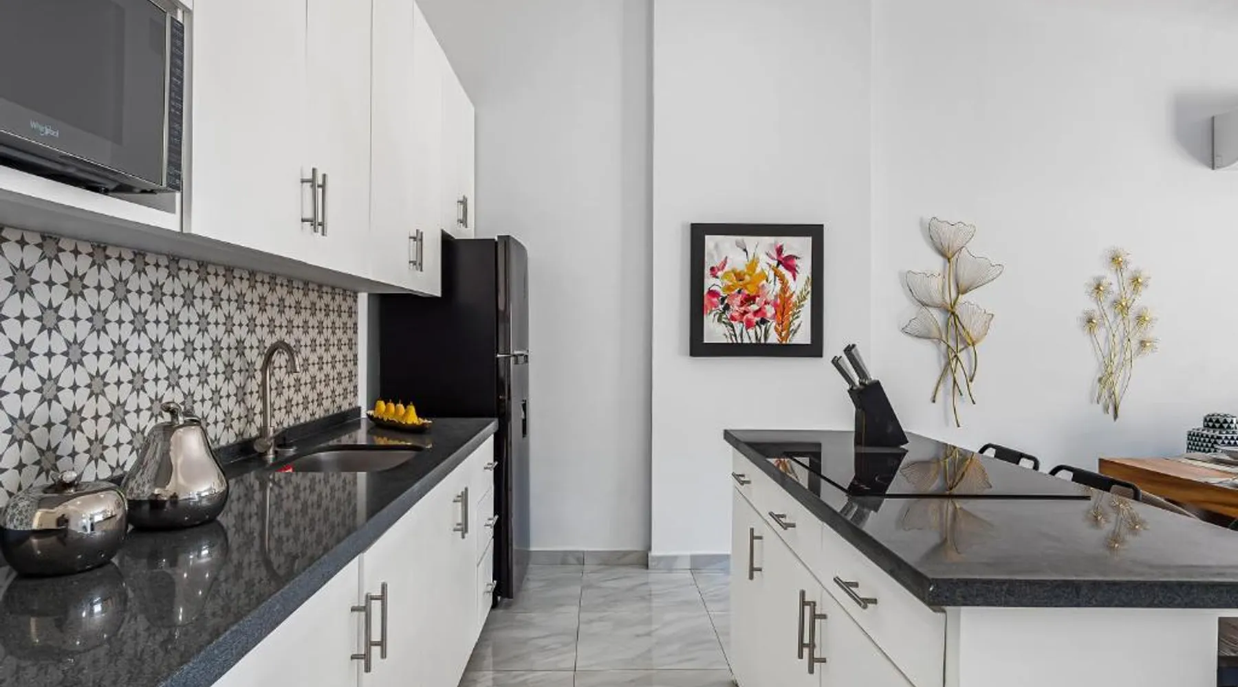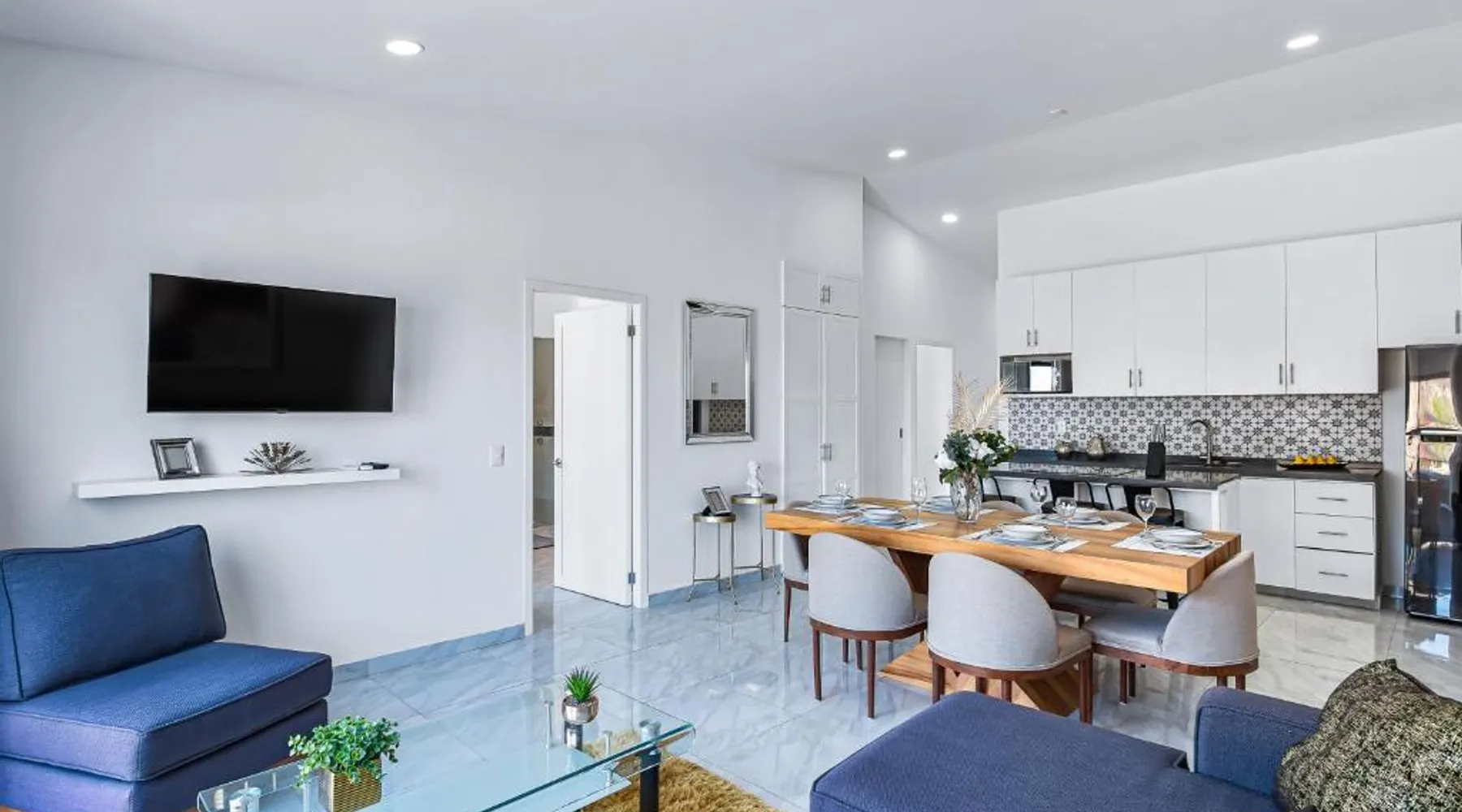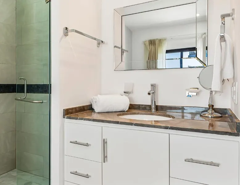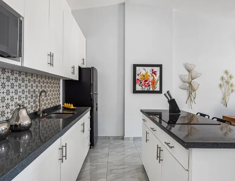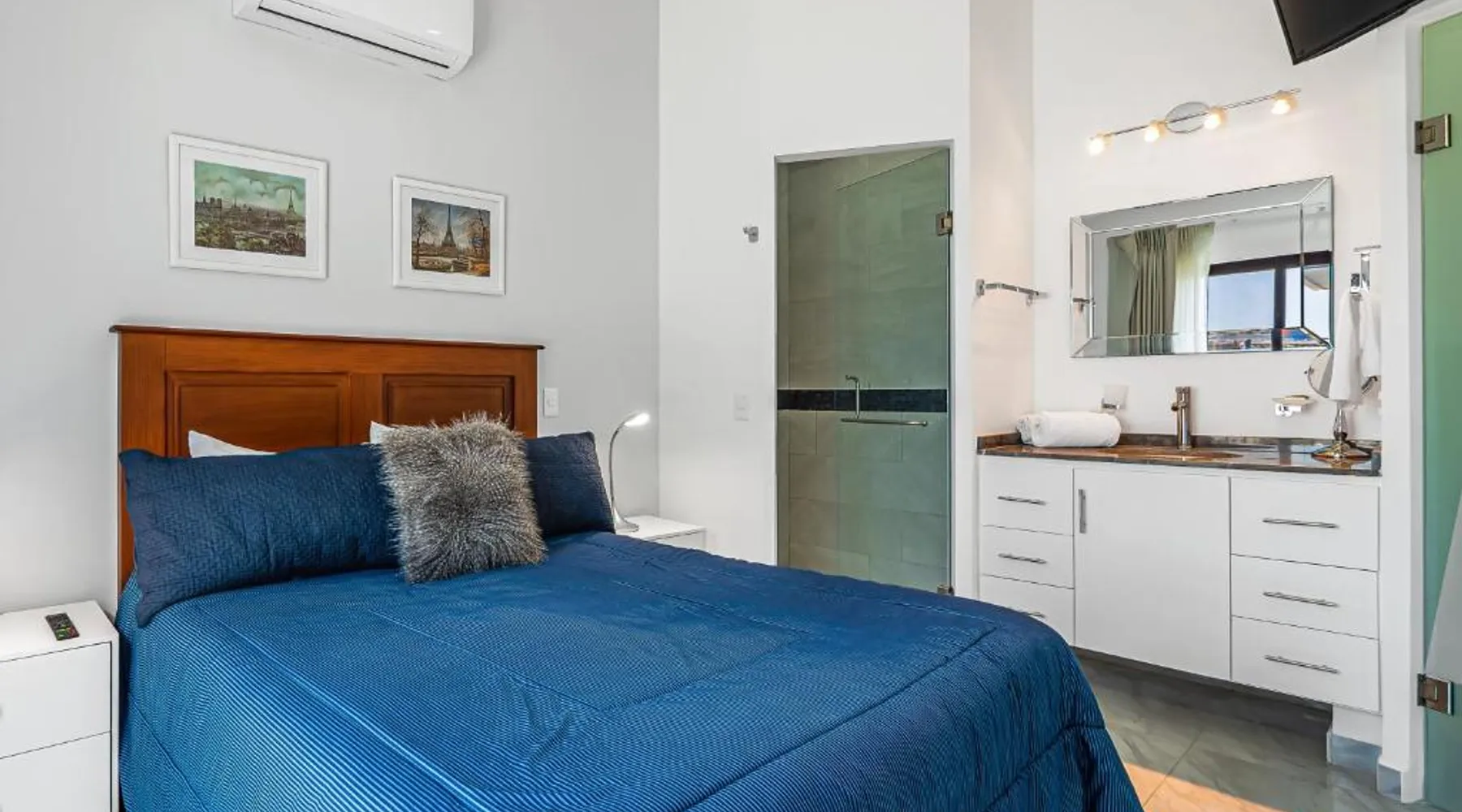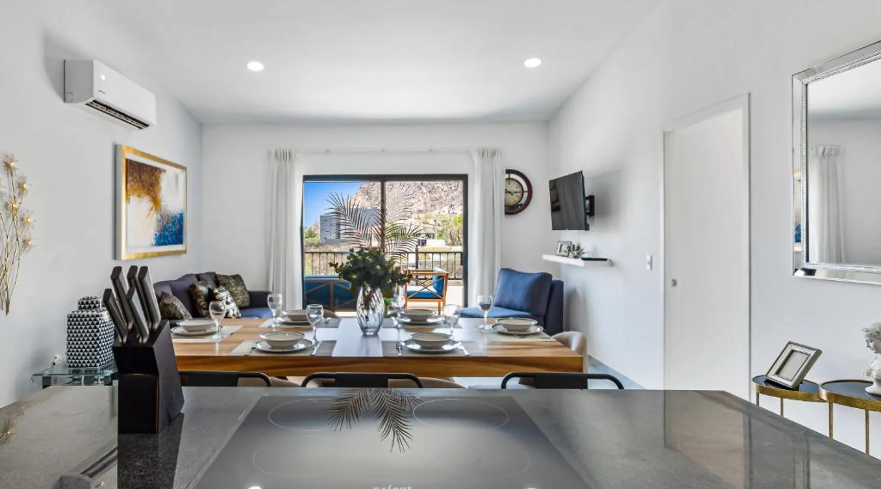 Comfortable Accommodations: Morgan Residences 607 in Cabo San Lucas offers three bedrooms and three bathrooms. Each unit features a kitchenette, balcony, and terrace with city views. Exceptional Facilities: Guests can enjoy a rooftop swimming pool, spa facilities, and a terrace. Additional amenities include a fitness room, outdoor seating area, and picnic area. Convenient Location: Located 27 mi from Los Cabos International Airport, the aparthotel is 1.1 mi from Marina Cabo San Lucas and 1.6 mi from Medano Beach. Nearby attractions include El Arco and Cabo San Lucas Country Club. This suite's standout feature is the infinity pool. Featuring 3 bedrooms, this suite offers 3 bathrooms with a walk-in shower, a seating area and terrace where you can relax. Guests will find a stovetop, a refrigerator, kitchenware and a microwave in the well-fitted kitchen. The suite also has a barbecue. Boasting a balcony with city views, this suite also offers a private entrance and a flat-screen TV. The unit has 4 beds.