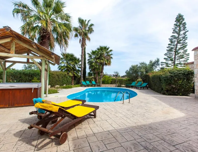 Elegant Accommodations: Villa Olive Grove 3 in Paphos offers a spacious villa with four bedrooms and three bathrooms. The property features a living room, family rooms, and a private pool. Guests enjoy a sauna, hot tub, and a year-round outdoor swimming pool. Modern Amenities: The villa provides free WiFi, air-conditioning, and a fully equipped kitchen. Additional amenities include a washing machine, dishwasher, and streaming services. Outdoor areas include a patio, dining area, and barbecue. Convenient Location: Located 27 mi from Paphos International Airport, the villa is near Polis Municipal Beach (1.5 mi) and Minthis Hill Golf Club (19 mi). Attractions such as Tombs of the Kings and Kings Avenue Mall are within 22 mi. This luxurious villa offers a private pool, a hot tub and a sauna. This air-conditioned villa is consisted of of 1 living room, 4 separate bedrooms and 3 bathrooms with a bath or a shower. Guests will find a refrigerator, a dishwasher, an oven and a microwave in the fully equipped kitchen. The villa also has a barbecue. This villa features a washing machine, a coffee machine, a flat-screen TV with streaming services and a patio. The unit offers 6 beds.
