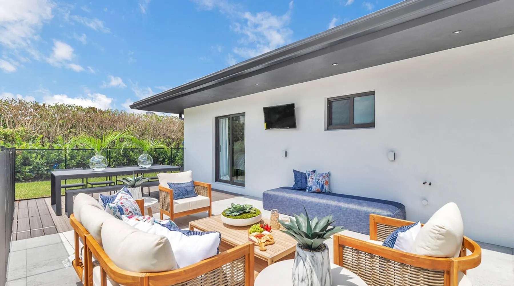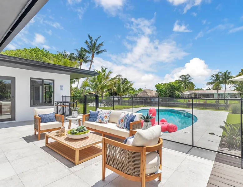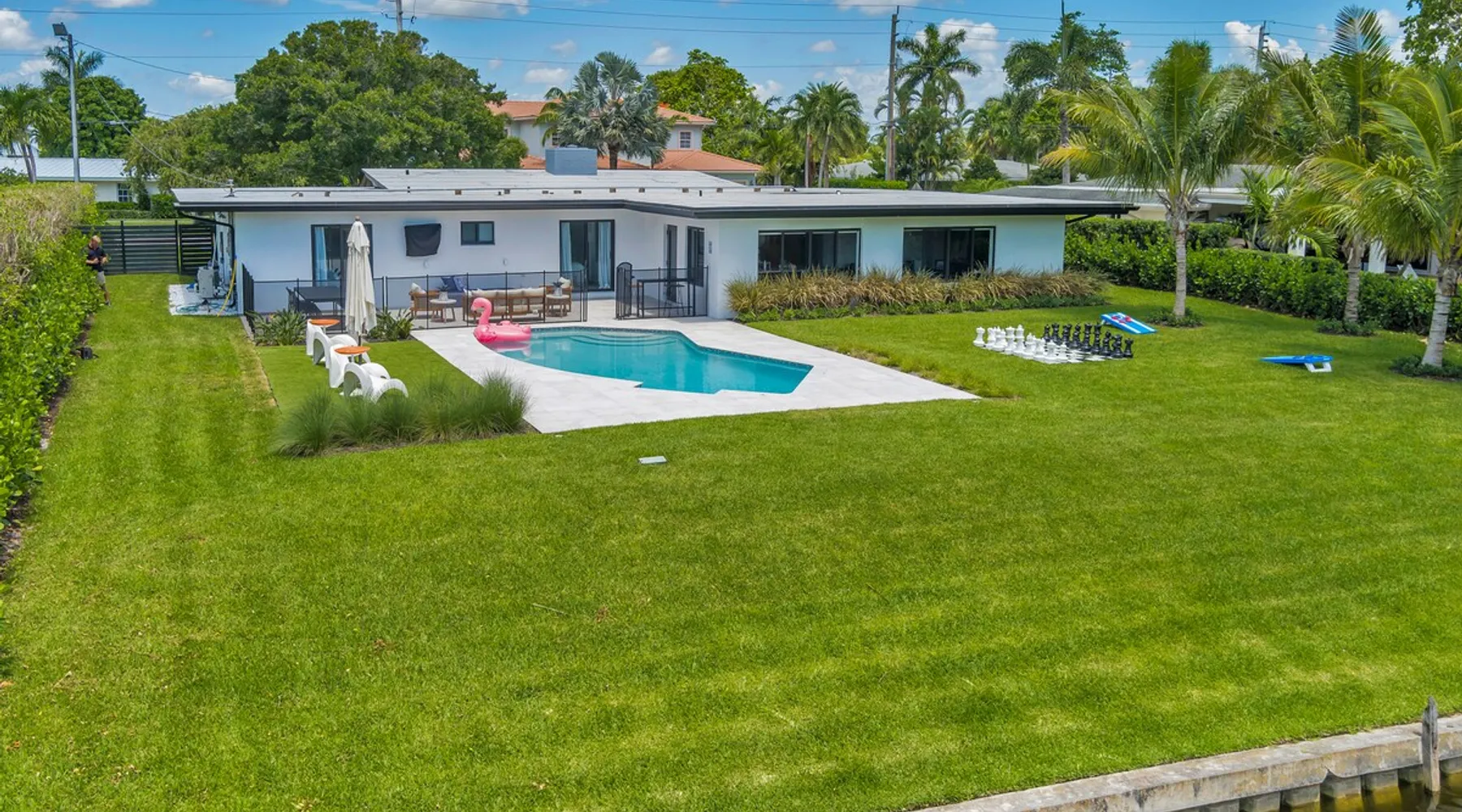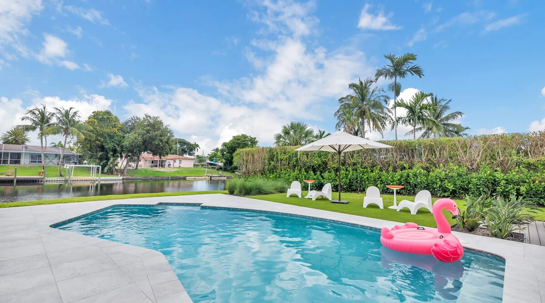 Escape to this Mid Century Modern delight in West Palm Beach Florida. This waterfront gem is certain to carry you away into relaxation. Everyone is certain to love it! The space Welcome to The Bird House, a phenomenal addition to the Hotel Homes Luxury collection in West Palm Beach Florida! Located within minutes of the most amazing places in Palm Beach: the world-famous Worth Avenue Shopping on Palm Beach Island, The Breakers Resort, The Square in downtown West Palm Beach, and so much more! Enjoy a luxurious private pool and outdoor retreat, relaxing outdoor lounging, indoor and outdoor dining rooms, games, patio off the master, fully stocked kitchen, breakfast bar, spectacular views from every window, two living rooms, private office space, indoor and outdoor games. Two of the bedrooms boast smart TV’s and there are full-size bathrooms next to each bedroom. Choose between 4 luxurious bedrooms. Drop your items off and go straight to the incredible backyard! Swim in the gorgeous pool. Grill for your group and have dinner outside under the covered patio. Layout on one of the chaise lounges to get your perfect tan. You won't even want to go back inside! (The pool can be heated during the cooler months at an additional charge to cover the natural gas cost per day). If you would like it heated, please see details below. BEDROOMS: Master Bedroom 1 - King Bed - En-suite Bathroom glass shower - Patio Access - Large Smart TV King Guest Bedroom - King Bed - Patio Access Hall Guest Bedroom - Two Full Beds - Desk & Chair 2nd Guest Bedroom - Two Full Beds & Smart TV Both living rooms boast couches that are comfortable for sleeping. TOTAL BEDS 2 Kings 4 Full-size Beds 2 Couches 1 Twin Air Mattress - upon request 1 Travel Crib DINING: Formal Dining Room Seats: 8 The Kitchen Bar Seats: 6 Outdoor Dining Seats: 6 Outdoor High-top Seats: 2 Outdoor Loungers for sun bathing: 2 Outdoor Living room: 5 Outdoor Lounge Chairs: 4 Guest Occupancy: Max 12 There is room in the garage for one car, and room for two in the driveway. A little bit about us... You are about to book with Hotel Home Stays, the best of luxury home vacation experiences. Our team prides themselves on ensuring our guests experience PEACE for the soul. Our hotel standards ensure the highest level of care throughout your stay. While our luxury designed homes ensure the comforts you just can’t live without. (wink, wink) PROTECTION – With mattress encasements, pillow protectors, hypoallergenic bedding options and COVID cleanliness standards, we go the extra mile in every home. EFFORTLESS – No guess work, we text and email the check-in details. No looking for keys, the door code allows 24-hour access. Electronic guest books provided prior to and during your stay. AMMENITIES – Arrive to Starbucks coffee, a phenomenally outfitted kitchen that includes coffee bar, mixology bar, kids plates, cups, etc. Along with the necessities, like Insta-Pot and blender. CLEAN – Our housekeepers are fantastic. But we never leave anything to chance, so our managers check the home before you arrive to ensure all the details were handled. EXCELLENCE – Throughout your stay, you will have on-going communication from our amazing team who can provide local insights, take care of special requests, and handle any issues that arise during your stay swiftly. Enjoy Complimentary Concierge Service Elevate your vacation rental experience with our exclusive complimentary concierge service. Our bookings include a complimentary concierge who can recommend transportation, book spa services, recommend a private chef, book the unpacking of groceries delivered by InstaCart, recommend babysitters and so much more. LOCATION! LOCATION! LOCATION! Enjoy many amazing restaurants, famous resorts, golf courses and more, close-by. West Palm Beach Golf Course - 5 Min Drive Mar-a-Lago – 10 Min Drive Palm Beach on the Island - 13 Min Drive Downtown West Palm (Restaurants & Bars) – 10 Min Drive The Convention Center – 10 Min Drive Worth Avenue Shopping – 15 Min Drive Buccan – 10 Min Drive Cafe Boulud – 10 Min Drive Ristorante Santucci – 10 min Drive Table 26 Palm Beach – 8 Min Drive The Breakers – 14 Min Drive Palm Beach International Airport – 9 Min Drive Palm Beach Zoo – 5 Min Drive Cox Science Center & Aquarium – 5 Min Drive CHECK-IN AND CHECK-OUT: - Early check-in or late check-out can be at an extra fee depending on availability. - You will receive simple and easy to follow check-out instructions upon your arrival. - A rental contract will emailed for electronic signature before check-in. Keep in mind, if you are choosing to book our home using a 3rd party website and not booking direct, not all third parties share your information with us. When you book, you are agreeing to submit a copy of your photo ID, your email address, and credit card to us after you book. This is standard procedure for professional property managers, just like hotels. Age minimum 21, and no pets are allowed. Pet Policy: NO PETS Pool Heating Details - Pool heating is optional and available for additional nightly rate of $100 per night. - The pool can be heated during winter months when the natural pool temperature drops due to lower outside air temperatures. As the pool is outside, we have it set to 87 but as the temps drop so do the pools, especially if it is raining. - We generally recommend that the pool be heated October 15th through May 31st in order to be a comfortable swimming temperature. - To ensure the pool is heated for your arrival we require a minimum 3-day advance notice. If you decide to take advantage of the optional pool/spa heat it is required for the entire duration of your stay, it cannot be turned on and off daily. Please Note: If the police need to be called to the property for complaints of any kind, we will ask you and your guests to leave without refund. Rest easy with WAIVO INSURANCE. Your reservation is covered for up to $5,000 in accidental damages. Let's f
