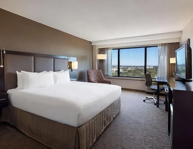 Step into your cozy hotel room, equipped with comfortable white linens, cable TV, and all the amenities you could hope for to help you unwind after a day of work or exploring. Guests can enjoy a refreshing swim in the heated outdoor pool, relax on the spacious sundeck, and bask in the brilliant San Jose sun, or work out in the well-equipped fitness center. The space This listing is for a room within a hotel. ✦ Your room is 312 sq. ft, equipped with complimentary toiletries, TV, available with Standard cable. ✦ Daily cleaning services included in the nightly price. There are a few additional details to know before you book: ✦ The minimum age required for check-in is 21 years old. ✦ Please ensure you have a valid ID for check-in, as it is mandatory for entry. Guest access During your stay, you will have access to the property and amenities according to the following schedule: ✦ Check-in is available from 4:00PM. ✦ Fitness center is available. ✦ Outdoor shared pool available all year, opened from 8:00AM to 10:00PM. Additional features: • Heated pool ✦ Paid parking lot – 1 space(s), available for $19 per day. ✦ Shuttle service is available upon request for free. Other things to note There are several additional things to note: ✦ A valid credit or debit card is required for the refundable security deposit and any offline fees displayed upon completing your Airbnb reservation. ✦ Pets are welcome. $75/pet/per stay, max 2 pets/room ✦ We use multi-unit listings, so rooms are similar but may have small differences. ✦ Available ATM/cash machine onsite. ✦ Early check-in is subject to availability upon arrival.