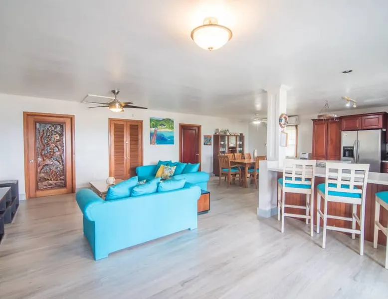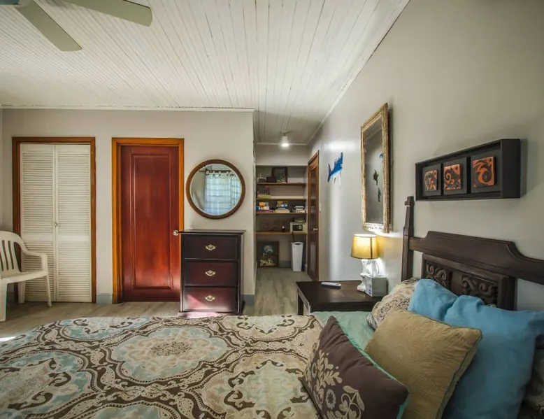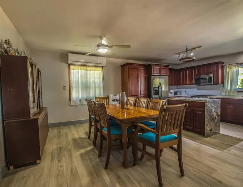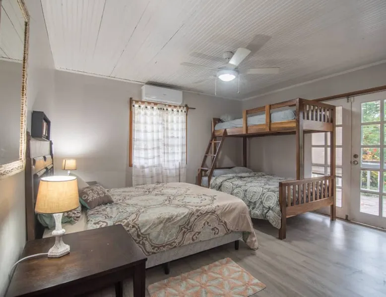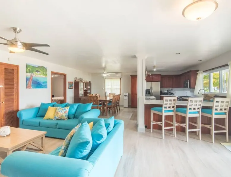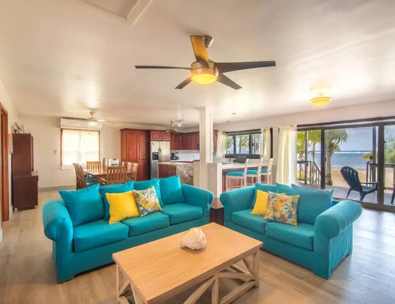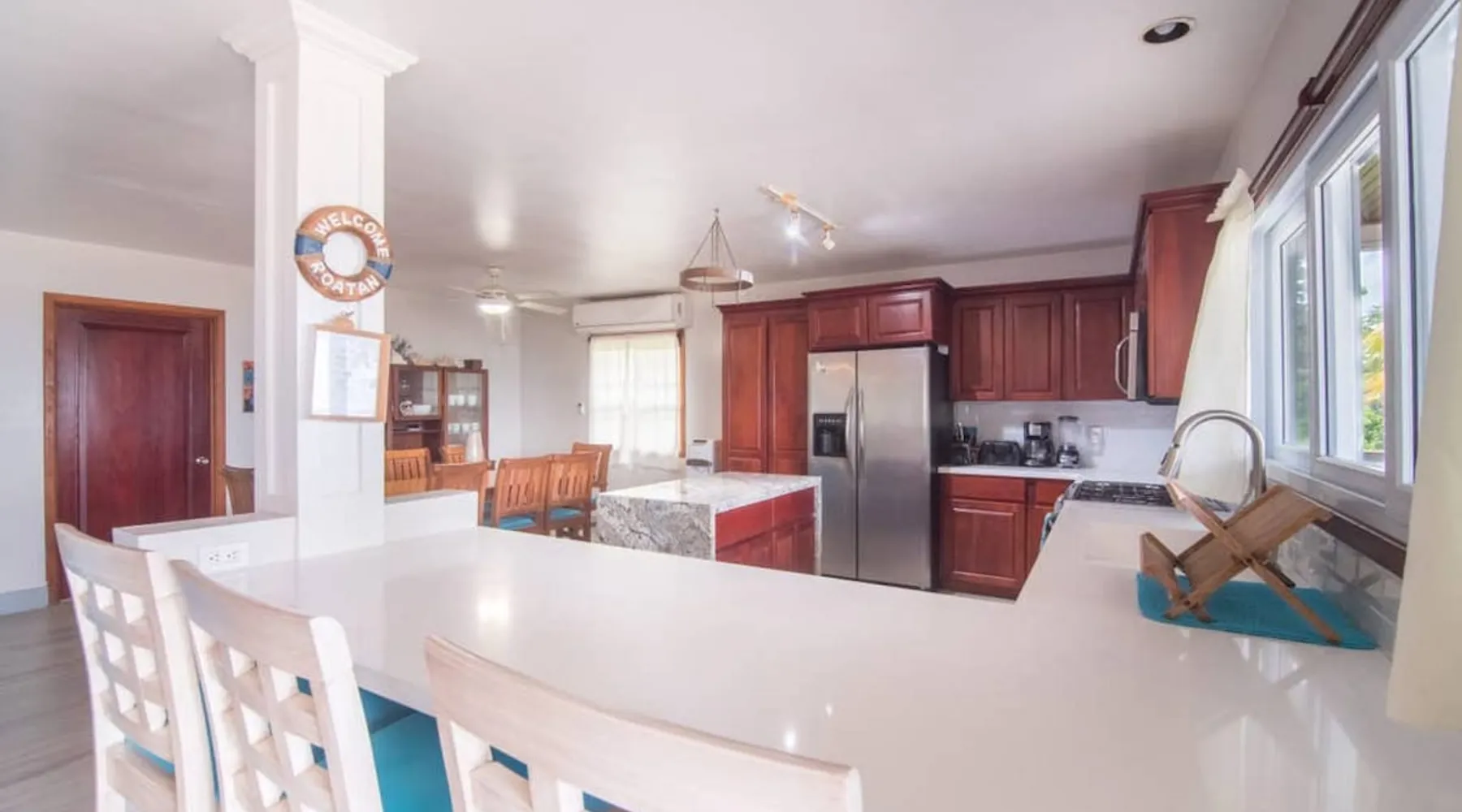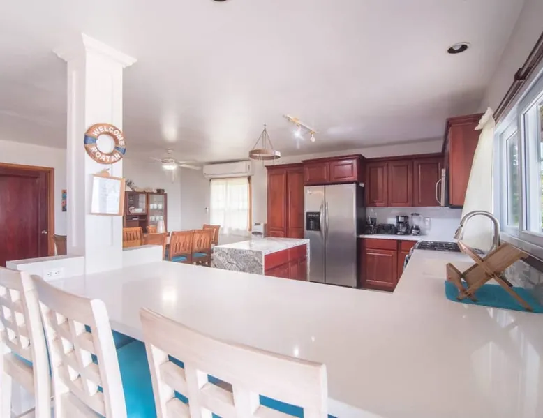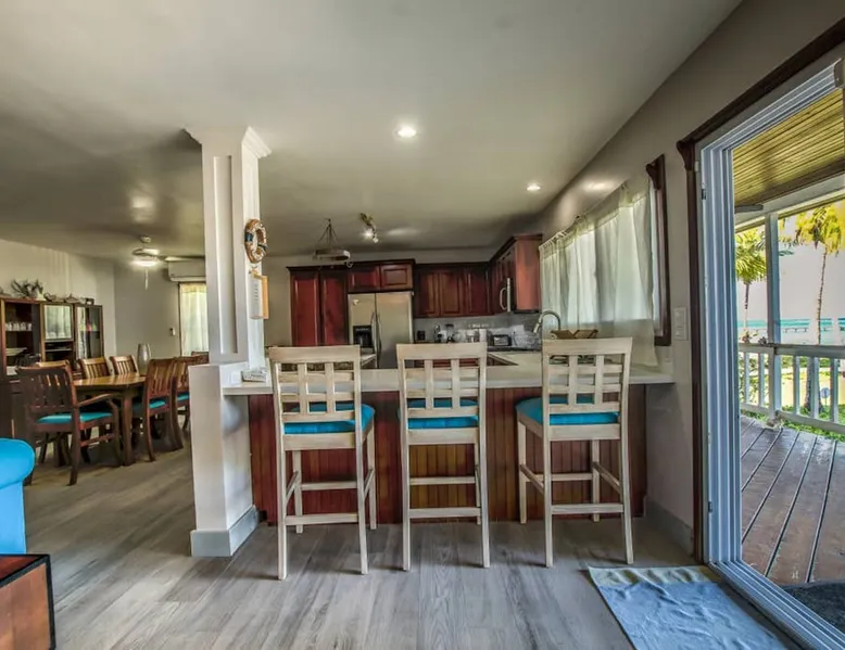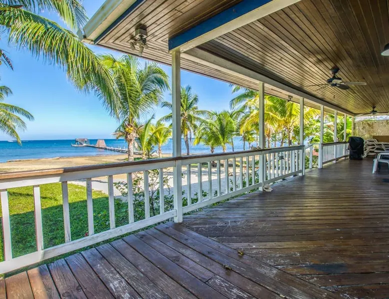 Beachfront home with beautiful reef for snorkeling and diving circa 50 yards off the end of the dock. Besides our 3 bedroom 3 bathroom home. There is also a Beach Bungalow on the lot next door, it rents separately, and it includes one bed one bath as well was a sofa sleeper, the bungalow the house together sleeps up to 12. Ask for a link. Please read ad. Never been to Roatan? Don't mind heavy tourist areas you may prefer West End or West Bay. Nice beach home, not a Luxury Home. The space Besides our 3 bedroom 3 bathroom home. We also own a Beach Bungalow that is on the lot next door, it rents separately, and it includes one bed one bath as well was a sofa sleeper. It's completely remodeled and including the bungalow the house and sleep up to 12. You can see more information in the bungalow here, ask us for a link The Beach Bungalow can be rented separately upon request, please make sure to specifically inquire and request the Beach Bungalow. It was completely upgraded with a 42" flat screen TV in the bedroom, dual AC units in the bedroom and family room, granite counters and more! The main home is more comfortable for 8-9 people, when the guest house is added it can accommodate 12-13. In addition, we have partnered with a neighbor that has a 3 bedroom, guest house, and pool just one lot in from us, this is perfect for larger groups! The living room, dining room and fully equipped kitchen is an open floor plan. The Master Bedroom features king bed and bath with double sinks, glass block and tile shower. The 2nd bedroom has a queen bed and on suite bath with tub shower, and the 3rd bedroom has a queen bed with a bunk bed that is full on the bottom and single on the top. Each bedroom opens onto the deck through French Doors. Ceramic tile floors. The Kitchen features a gas stove, dishwasher, microwave, ice maker, and all small appliances. Air- Conditioning in the bedrooms, and ceiling fans throughout the house. Cable TV, DVD, and CD player, and wireless Internet. The Beach House is protected by a full security system monitored by Bull Dog Security. The private dock provides a short swim to the reef, in the Marine Reserve, for a great snorkel or dive experience. Rinse off in the freshwater shower on the dock. Soak up the sun or enjoy sunsets on the upper deck. Guest access The entire home is yours! The Beach Bungalow that we own next door can also be rented separately upon request, please inquire prior to renting. Mayan Princess UPDATE: Our guests have access to the Mayan Princess resort during the weekdays Mondays to Thursdays with no prior reservation made. However, if you would like access during the weekends (Fridays to Sunday), you would need to make a reservation with our Concierge at least 24 hours prior. The resort has a maximum capacity of admittance, hence, your reservation can either be accepted or rejected. Other things to note FAQ 1. It is pretty quiet there at the house? Yes, we chose this home because of its close proximity to the airport (circa 7 minutes), grocery store (circa 5 minutes, West End (circa 5 minutes, and West Bay (circa 15 minutes), yet it's large lot and fantastic reef, without all of the tourist/cruise ship crowds of West End and West Bay. 2. Not too busy with people accessing the beach area? Not at all. Though if you are looking for swimming off the beach it's not ideal. We don't kill the sea grass like they do in West End/ West Bay. This area is ideal if you are looking for great snorkeling and swimming this home is right in front of one of the best snorkel and dive spots on the island. Spooky channel, circa 50 yards off the end of the dock. 3. What's the best way to get around town? We have the names and numbers of a handful of drivers. Typically we just walk to the road, circa 3 minute walk and catch a taxi. I rarely rent a car when I'm on the island, however, we have plenty of parking if you rent one. 4. We will be mainly there swimming at the house, but we may want to take a day to explore the island a bit. Is it worth getting a car? I would get a driver and possibly a guide, a number of our guests have worked with Rudolph and the cost is reasonable. 5. Do they have motorcycle rentals? Yes, but I wouldn't recommend them. Island driving/driving in an unfamiliar area can be dangerous, particularly on a motorcycle. 6) . What is the weather like in August? Month High / Low(°F) January 82° / 71° February 84° / 72° March 85° / 74° April 87° / 76° May 88° / 77° June 89° / 78° July 88° / 77° August 89° / 77° September 89° / 78° October 87° / 75° November 84° / 73° December 83° / 72° 7. I'm assuming it's great snorkeling right off the dock? Yes, about 50 yards off the end of the dock is some of the best snorkeling and diving on the island. I typically tether a blow up paddleboard to my ankle and paddle out, one can snorkel for hours, hop up on the board to rest. The paddleboard also makes you more visible. There are areas with spits of stand, starfish etc. like a huge swimming pool. 8. Do we bring our own gear or can we rent some? While there is gear at the home you can use it comes and goes, I always bring my own. 9. Any suggested airlines to fly into Roatan? I typically fly Avianca out of Los Angeles through El Salvador, red eye, get in around 9 in the morning and have the cooks come and cook for us the first day, enjoy the reef, and unwind. But there are a number of major airlines that fly directly into Roatan. 10. We are on a well system for water, we provide filtered water for drinking. For hand washing and showering the well water comes from the taps. It's filtered, however, because it's well water it can have a sulfer smell to it. In addition, it stains the faucts, tubs, showers, etc.. This is not grounds for cancellation. While these areas can be stained, they are thoroughly cleaned. The stains cannot be removed without harsh chemicals that ruin these items. If this is an issue for your please reserve a different home. 11. If this 