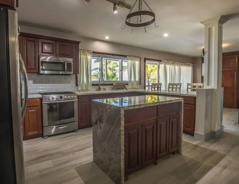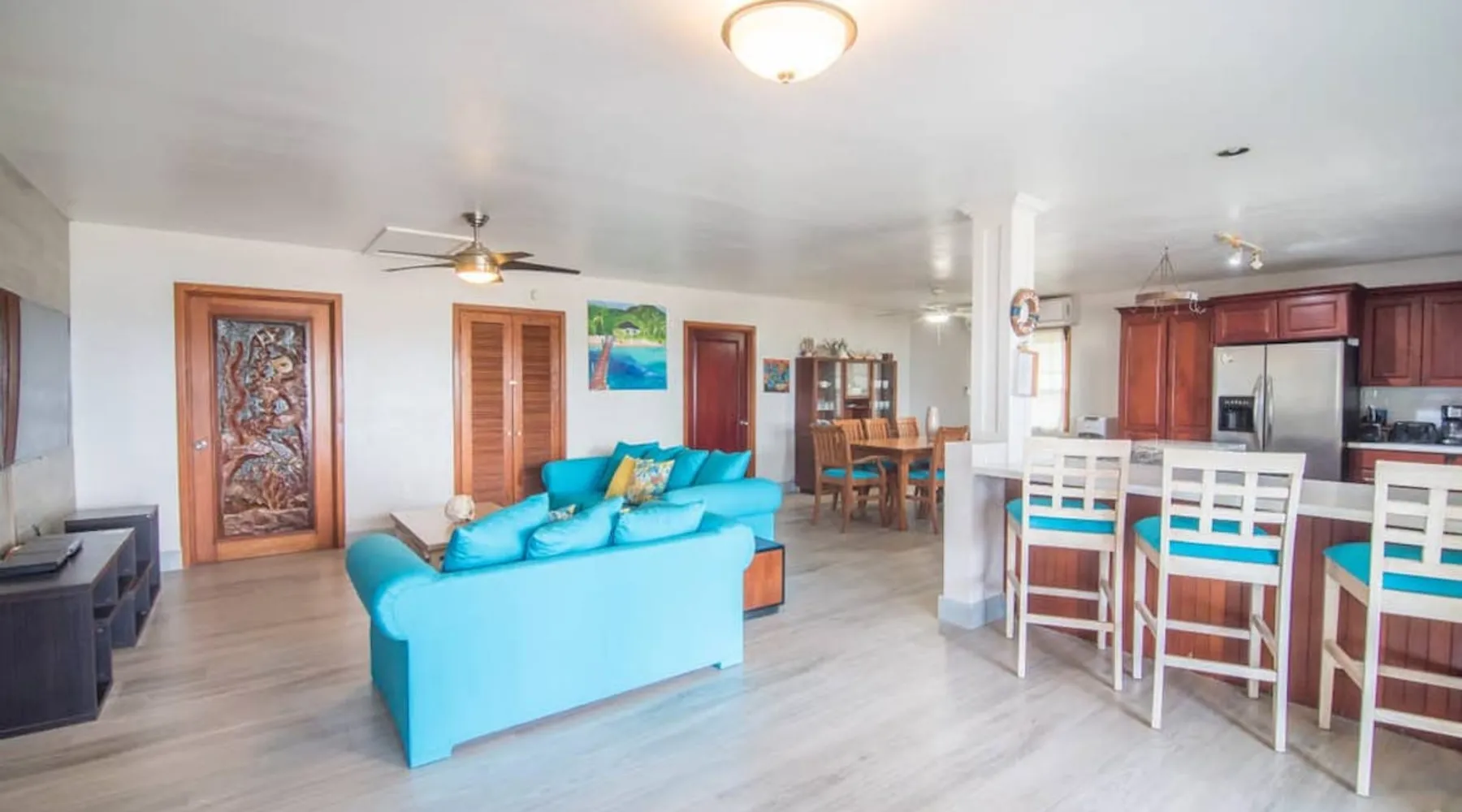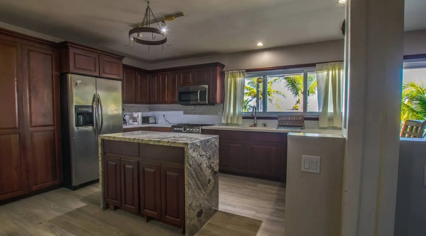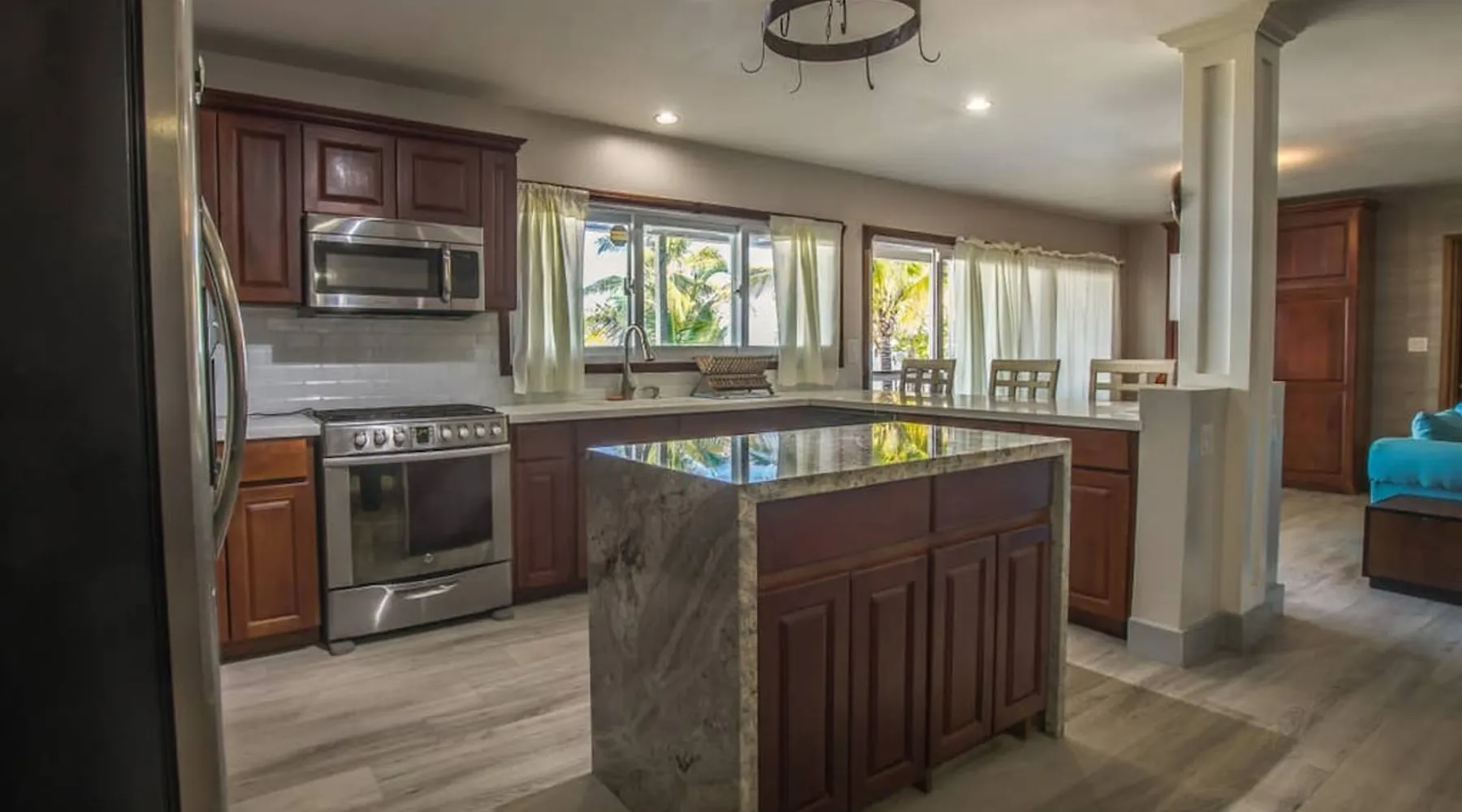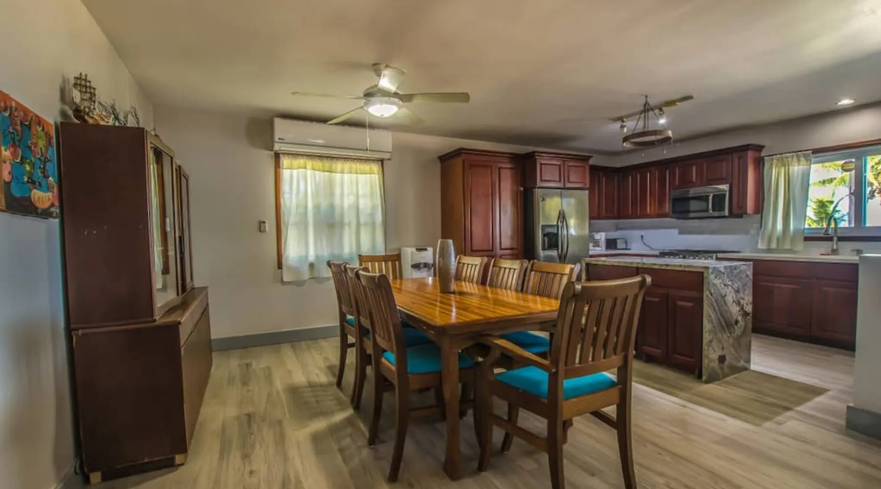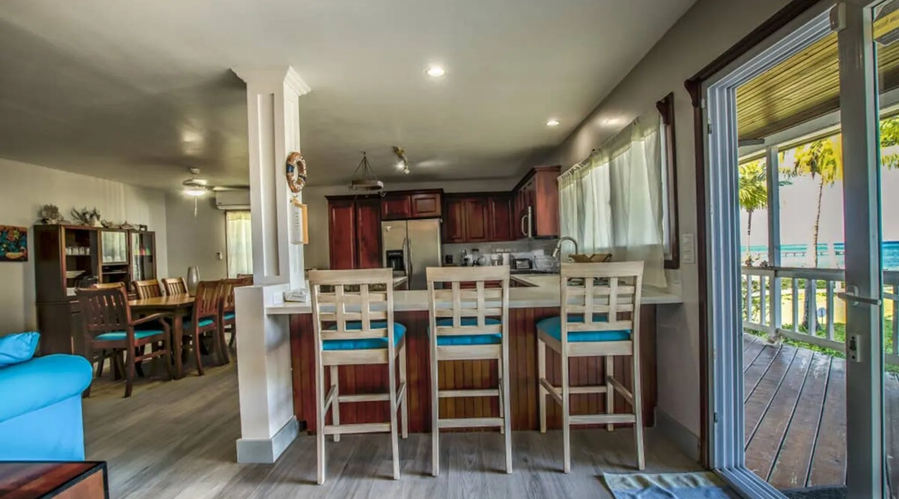 Beachfront home with beautiful reef for snorkeling and diving circa 50 yards off the end of the dock. Besides our 3 bedroom 3 bathroom home. There is also a Beach Bungalow on the lot next door, it rents separately, and it includes one bed one bath as well was a sofa sleeper, the bungalow the house together sleeps up to 12. Ask for a link. Please read ad. Never been to Roatan? Don't mind heavy tourist areas you may prefer West End or West Bay. Nice beach home, not a Luxury Home. The space Besides our 3 bedroom 3 bathroom home. We also own a Beach Bungalow that is on the lot next door, it rents separately, and it includes one bed one bath as well was a sofa sleeper. It's completely remodeled and including the bungalow the house and sleep up to 12. You can see more information in the bungalow here, ask us for a link The Beach Bungalow can be rented separately upon request, please make sure to specifically inquire and request the Beach Bungalow. It was completely upgraded with a 42" flat screen TV in the bedroom, dual AC units in the bedroom and family room, granite counters and more! The main home is more comfortable for 8-9 people, when the guest house is added it can accommodate 12-13. In addition, we have partnered with a neighbor that has a 3 bedroom, guest house, and pool just one lot in from us, this is perfect for larger groups! The living room, dining room and fully equipped kitchen is an open floor plan. The Master Bedroom features king bed and bath with double sinks, glass block and tile shower. The 2nd bedroom has a queen bed and on suite bath with tub shower, and the 3rd bedroom has a queen bed with a bunk bed that is full on the bottom and single on the top. Each bedroom opens onto the deck through French Doors. Ceramic tile floors. The Kitchen features a gas stove, dishwasher, microwave, ice maker, and all small appliances. Air- Conditioning in the bedrooms, and ceiling fans throughout the house. Cable TV, DVD, and CD player, and wireless Internet. The Beach House is protected by a full security system monitored by Bull Dog Security. The private dock provides a short swim to the reef, in the Marine Reserve, for a great snorkel or dive experience. Rinse off in the freshwater shower on the dock. Soak up the sun or enjoy sunsets on the upper deck. Guest access The entire home is yours! The Beach Bungalow that we own next door can also be rented separately upon request, please inquire prior to renting. Mayan Princess UPDATE: Our guests have access to the Mayan Princess resort during the weekdays Mondays to Thursdays with no prior reservation made. However, if you would like access during the weekends (Fridays to Sunday), you would need to make a reservation with our Concierge at least 24 hours prior. The resort has a maximum capacity of admittance, hence, your reservation can either be accepted or rejected. Other things to note FAQ 1. It is pretty quiet there at the house? Yes, we chose this home because of its close proximity to the airport (circa 7 minutes), grocery store (circa 5 minutes, West End (circa 5 minutes, and West Bay (circa 15 minutes), yet it's large lot and fantastic reef, without all of the tourist/cruise ship crowds of West End and West Bay. 2. Not too busy with people accessing the beach area? Not at all. Though if you are looking for swimming off the beach it's not ideal. We don't kill the sea grass like they do in West End/ West Bay. This area is ideal if you are looking for great snorkeling and swimming this home is right in front of one of the best snorkel and dive spots on the island. Spooky channel, circa 50 yards off the end of the dock. 3. What's the best way to get around town? We have the names and numbers of a handful of drivers. Typically we just walk to the road, circa 3 minute walk and catch a taxi. I rarely rent a car when I'm on the island, however, we have plenty of parking if you rent one. 4. We will be mainly there swimming at the house, but we may want to take a day to explore the island a bit. Is it worth getting a car? I would get a driver and possibly a guide, a number of our guests have worked with Rudolph and the cost is reasonable. 5. Do they have motorcycle rentals? Yes, but I wouldn't recommend them. Island driving/driving in an unfamiliar area can be dangerous, particularly on a motorcycle. 6) . What is the weather like in August? Month High / Low(°F) January 82° / 71° February 84° / 72° March 85° / 74° April 87° / 76° May 88° / 77° June 89° / 78° July 88° / 77° August 89° / 77° September 89° / 78° October 87° / 75° November 84° / 73° December 83° / 72° 7. I'm assuming it's great snorkeling right off the dock? Yes, about 50 yards off the end of the dock is some of the best snorkeling and diving on the island. I typically tether a blow up paddleboard to my ankle and paddle out, one can snorkel for hours, hop up on the board to rest. The paddleboard also makes you more visible. There are areas with spits of stand, starfish etc. like a huge swimming pool. 8. Do we bring our own gear or can we rent some? While there is gear at the home you can use it comes and goes, I always bring my own. 9. Any suggested airlines to fly into Roatan? I typically fly Avianca out of Los Angeles through El Salvador, red eye, get in around 9 in the morning and have the cooks come and cook for us the first day, enjoy the reef, and unwind. But there are a number of major airlines that fly directly into Roatan. 10. We are on a well system for water, we provide filtered water for drinking. For hand washing and showering the well water comes from the taps. It's filtered, however, because it's well water it can have a sulfer smell to it. In addition, it stains the faucts, tubs, showers, etc.. This is not grounds for cancellation. While these areas can be stained, they are thoroughly cleaned. The stains cannot be removed without harsh chemicals that ruin these items. If this is an issue for your please reserve a different home. 11. If this 