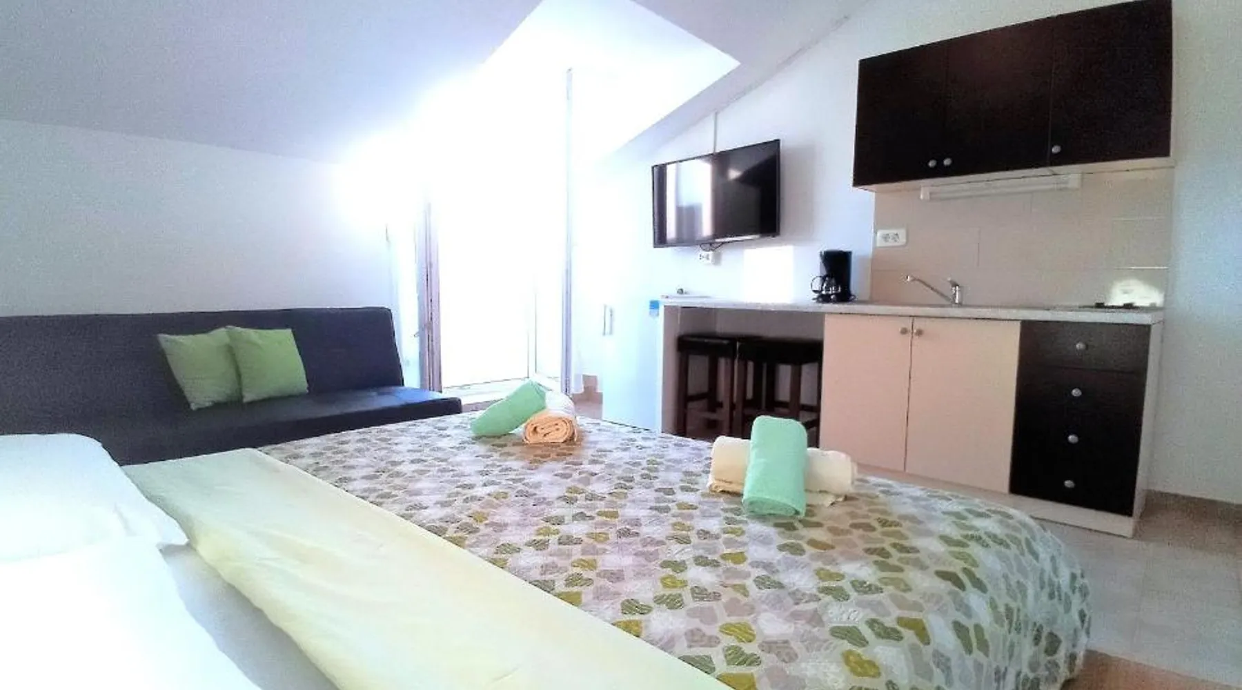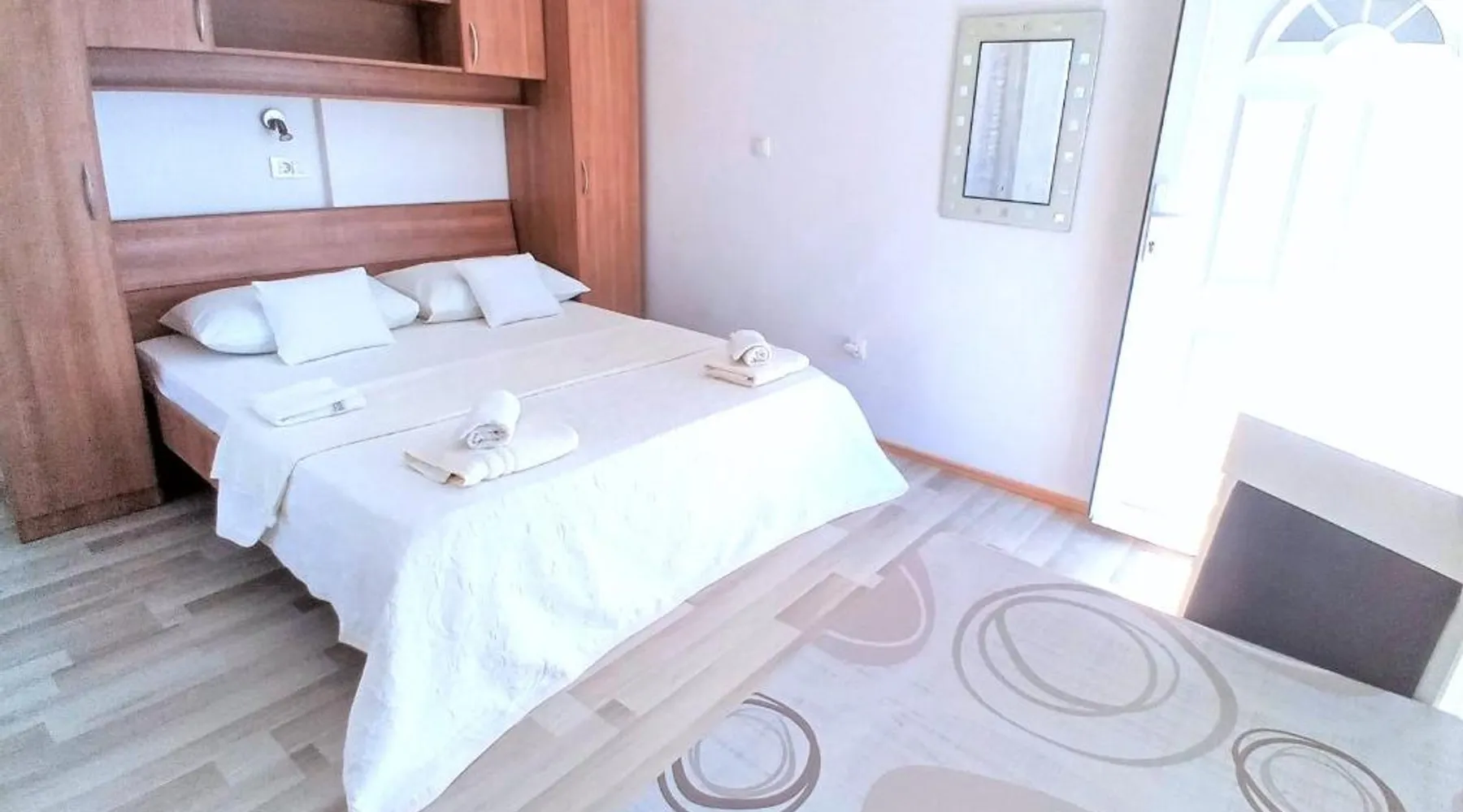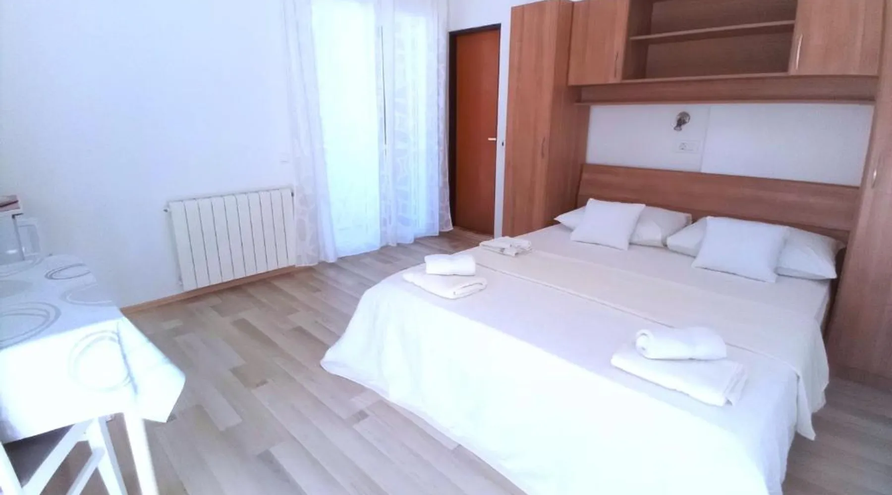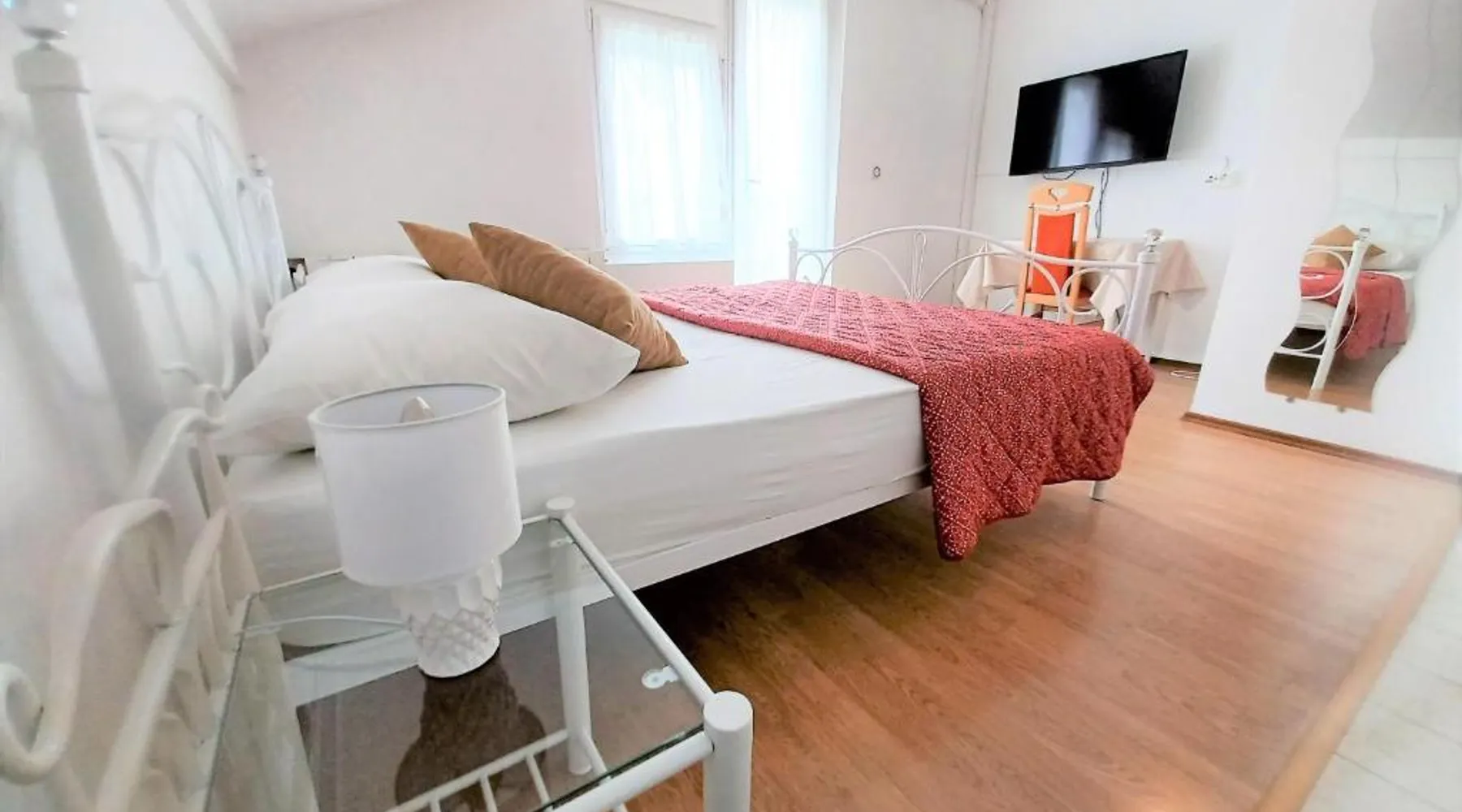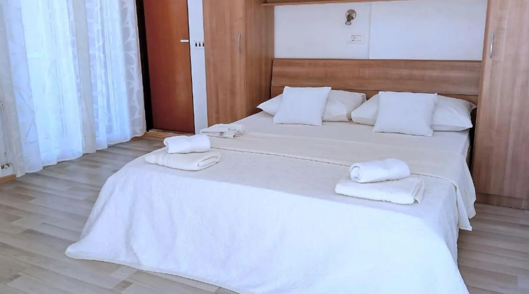 Comfortable Accommodations: Guest house Cecilia 2 in Malinska offers family rooms with air-conditioning, private bathrooms, and parquet floors. Each room includes a refrigerator, TV, and wardrobe, ensuring a pleasant stay. Essential Facilities: Guests can enjoy a terrace with sea views, free WiFi, and an outdoor seating area. The property features a lounge, shared kitchen, and balcony, providing ample space for relaxation and socializing. Convenient Location: Located 8.7 mi from Rijeka Airport, the guest house is a short walk from Maestral Beach and Malinska Bus Station. Nearby attractions include Kosljun Franciscan Monastery (11 mi) and Valica Cove (2.6 mi). This air-conditioned apartment comes with 1 living room, 1 separate bedroom and 1 bathroom with a shower. The apartment features a washing machine, a wardrobe, an electric kettle, parquet floors and a flat-screen TV with cable channels. The unit has 1 bed.
