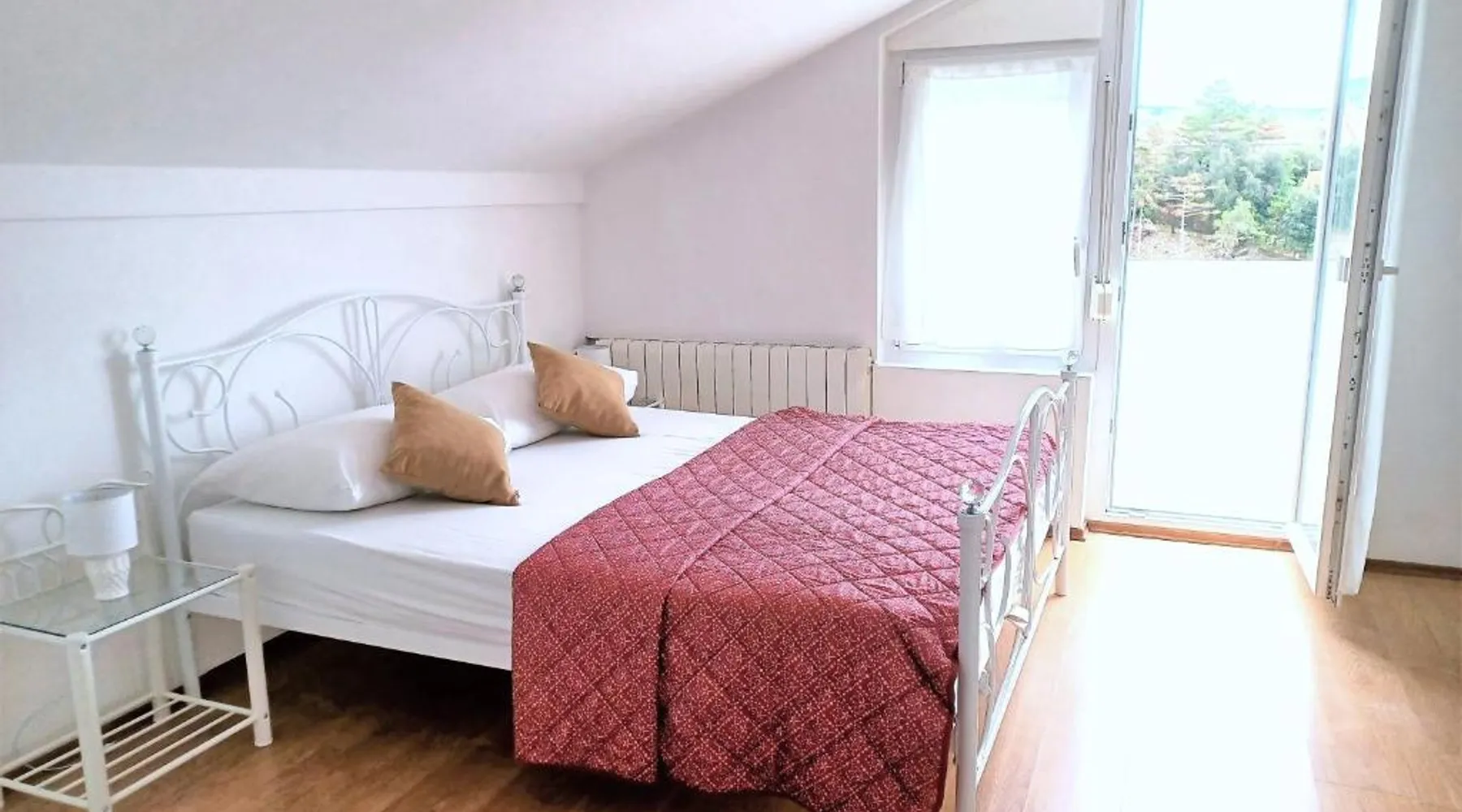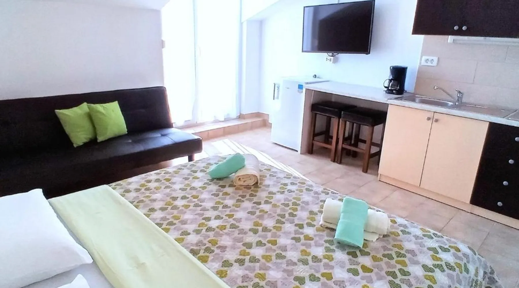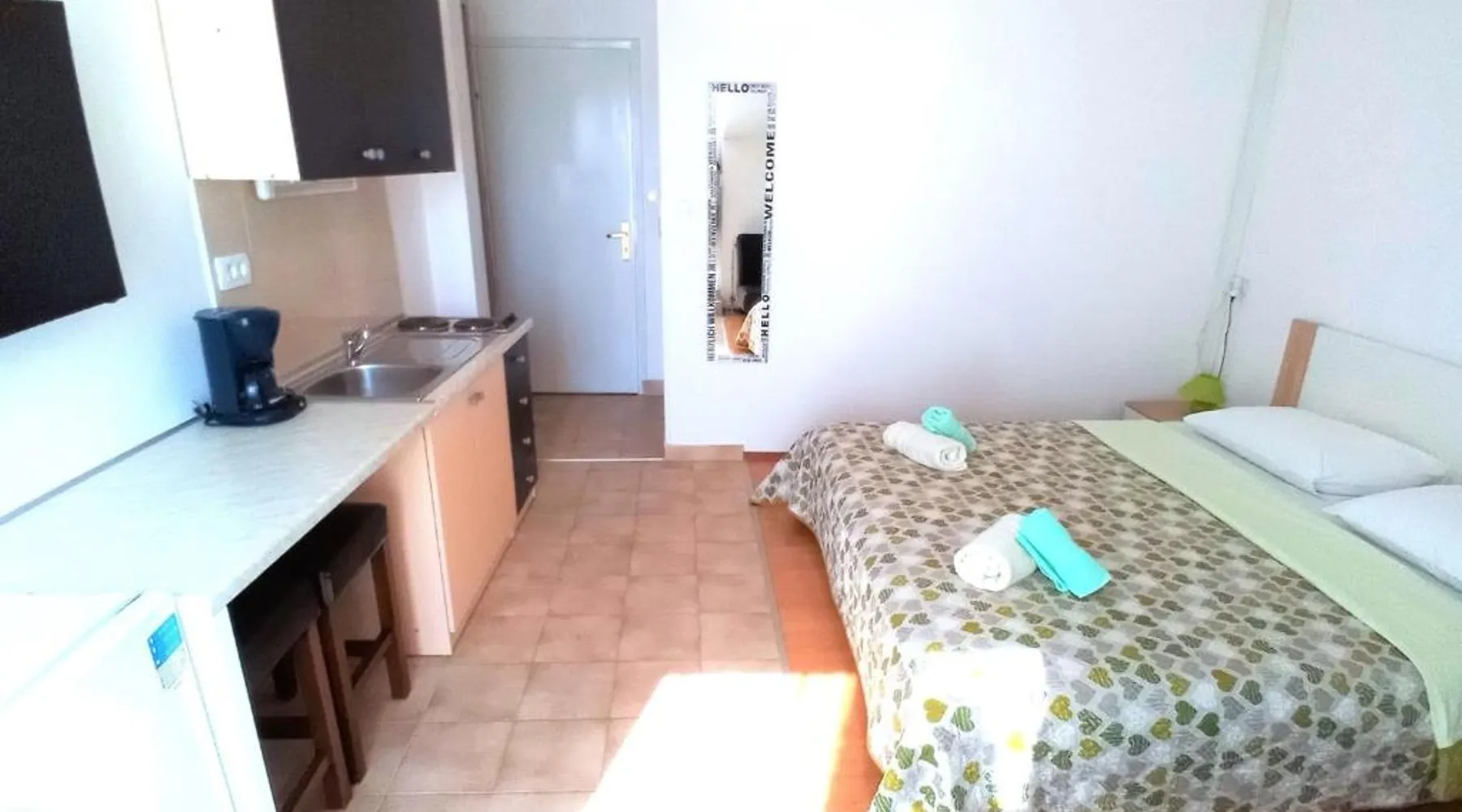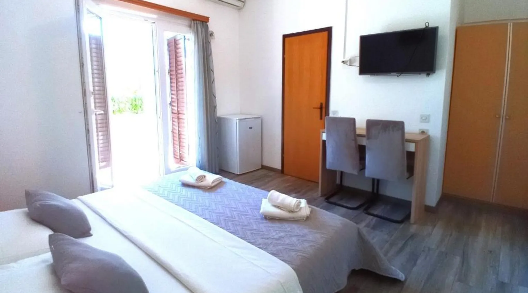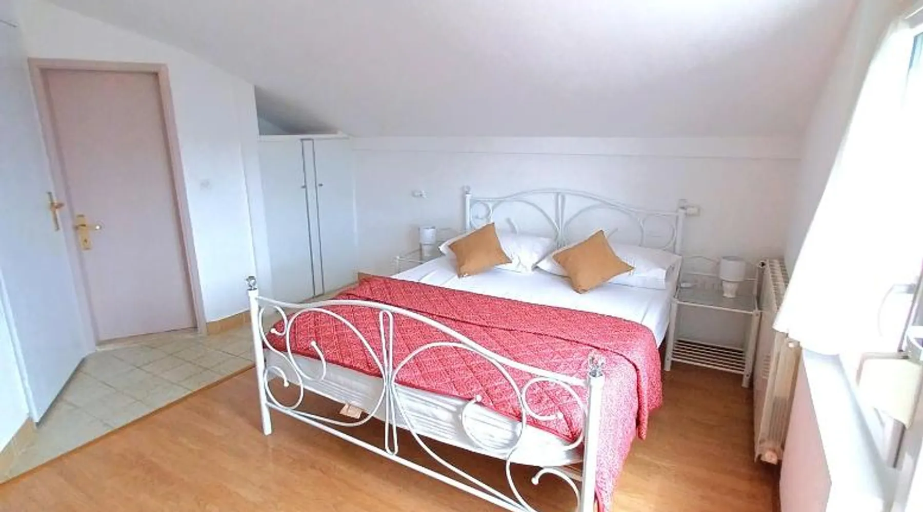Comfortable Accommodations: Guest house Cecilia 2 in Malinska offers family rooms with air-conditioning, private bathrooms, and parquet floors. Each room includes a refrigerator, TV, and wardrobe, ensuring a pleasant stay. Essential Facilities: Guests can enjoy a terrace with sea views, free WiFi, and an outdoor seating area. The property features a lounge, shared kitchen, and balcony, providing ample space for relaxation and socializing. Convenient Location: Located 8.7 mi from Rijeka Airport, the guest house is a short walk from Maestral Beach and Malinska Bus Station. Nearby attractions include Kosljun Franciscan Monastery (11 mi) and Valica Cove (2.6 mi). This air-conditioned apartment comes with 1 living room, 1 separate bedroom and 1 bathroom with a shower. The apartment features a washing machine, a wardrobe, an electric kettle, parquet floors and a flat-screen TV with cable channels. The unit has 1 bed.