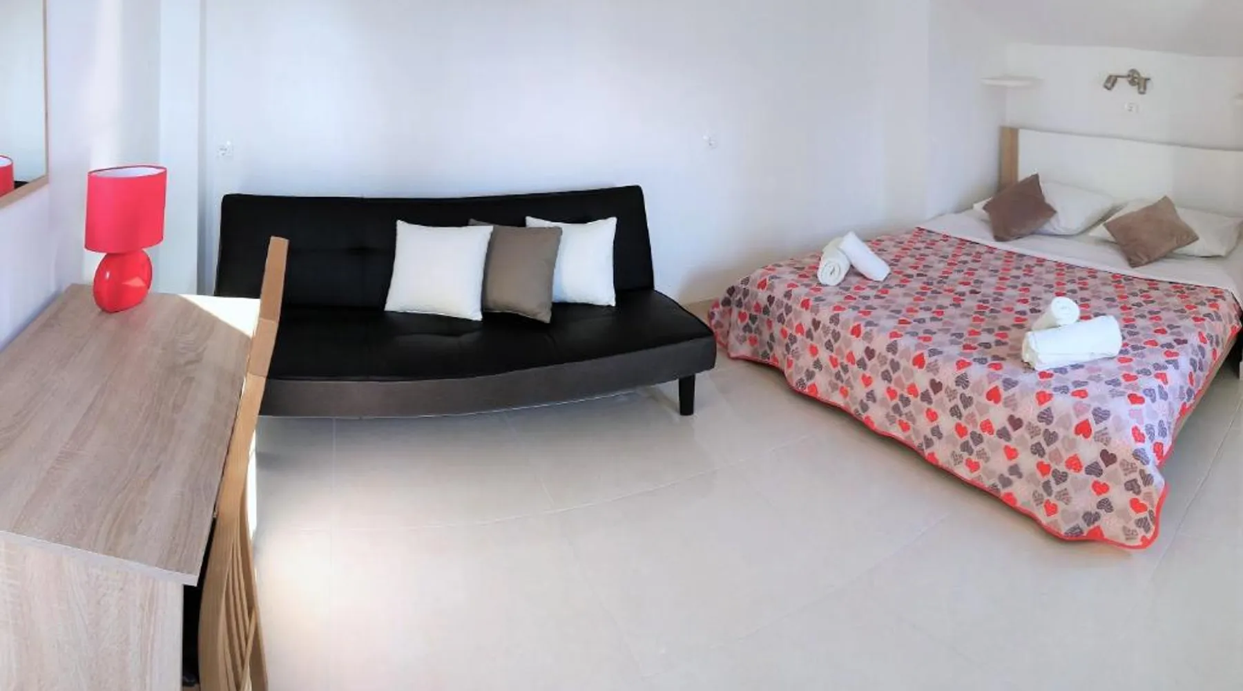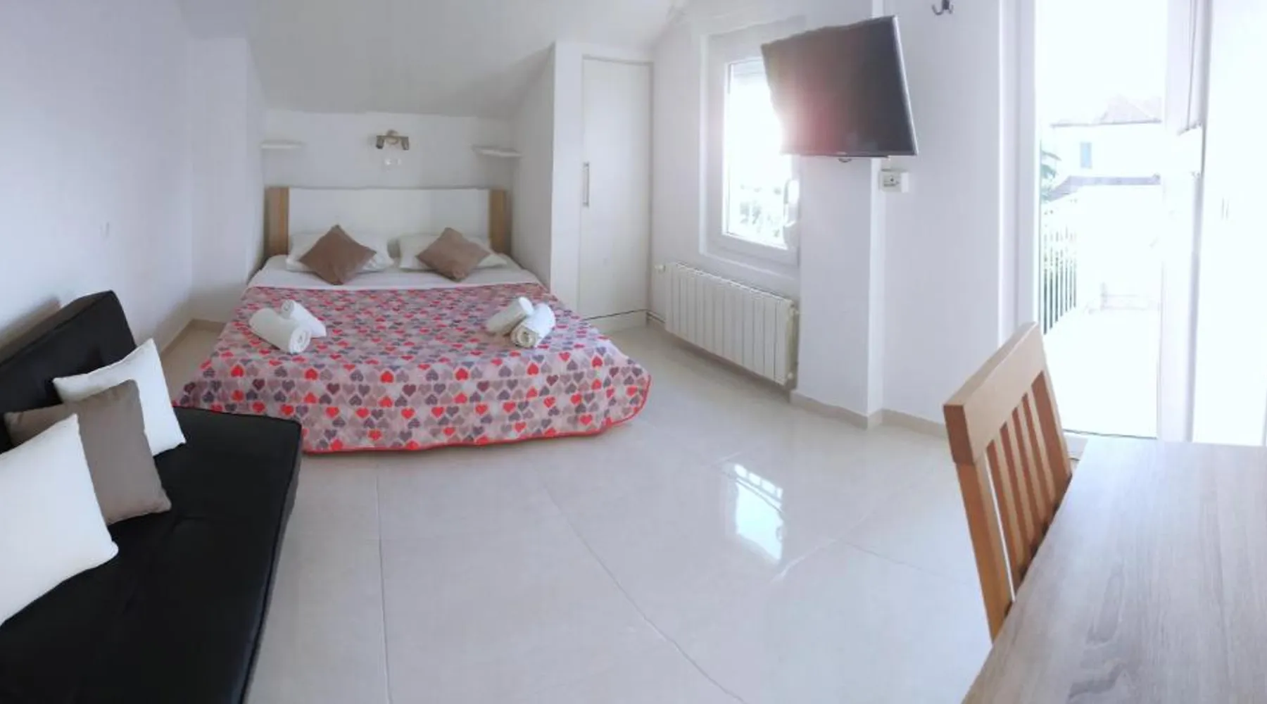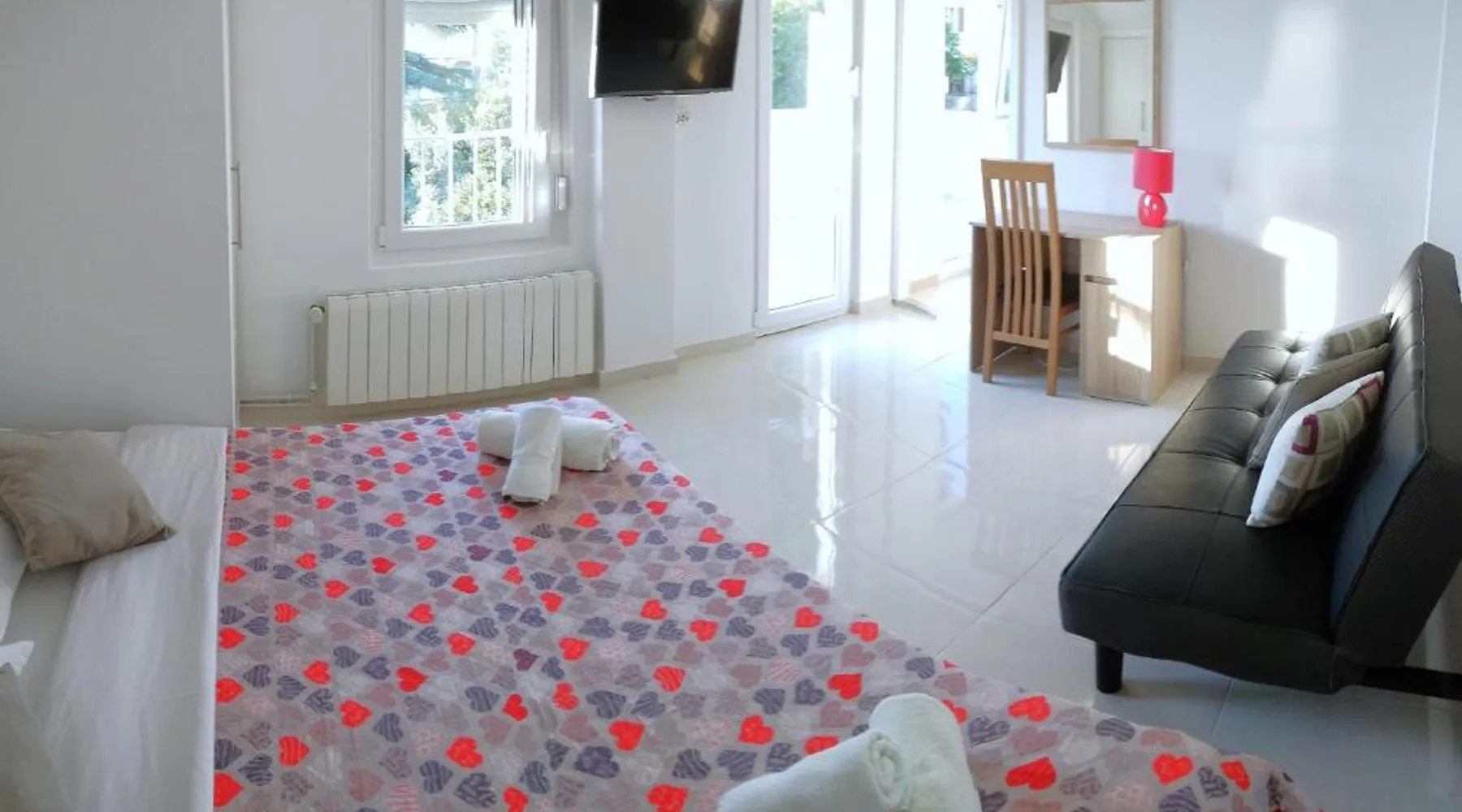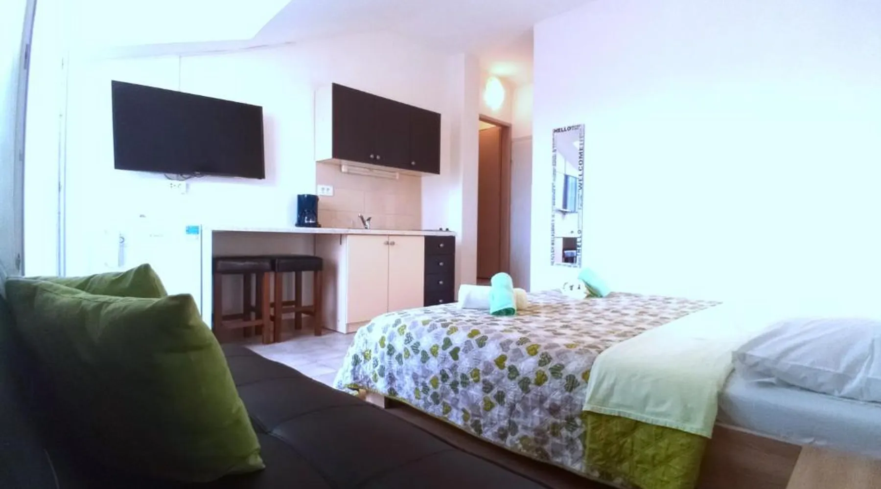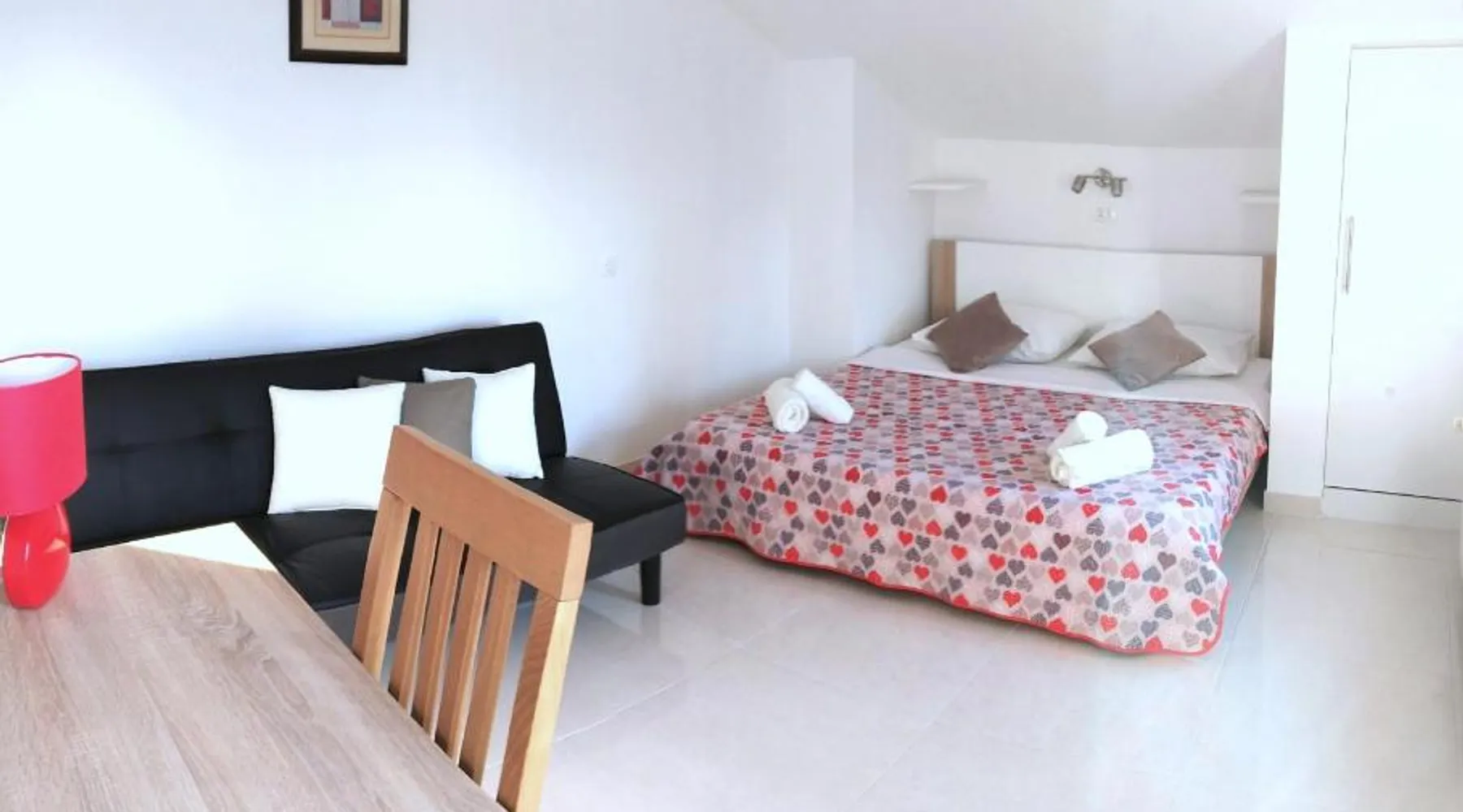 Comfortable Accommodations: Guest house Cecilia 2 in Malinska offers family rooms with air-conditioning, private bathrooms, and parquet floors. Each room includes a refrigerator, TV, and wardrobe, ensuring a pleasant stay. Essential Facilities: Guests can enjoy a terrace with sea views, free WiFi, and an outdoor seating area. The property features a lounge, shared kitchen, and balcony, providing ample space for relaxation and socializing. Convenient Location: Located 8.7 mi from Rijeka Airport, the guest house is a short walk from Maestral Beach and Malinska Bus Station. Nearby attractions include Kosljun Franciscan Monastery (11 mi) and Valica Cove (2.6 mi). This air-conditioned apartment comes with 1 living room, 1 separate bedroom and 1 bathroom with a shower. The apartment features a washing machine, a wardrobe, an electric kettle, parquet floors and a flat-screen TV with cable channels. The unit has 1 bed.