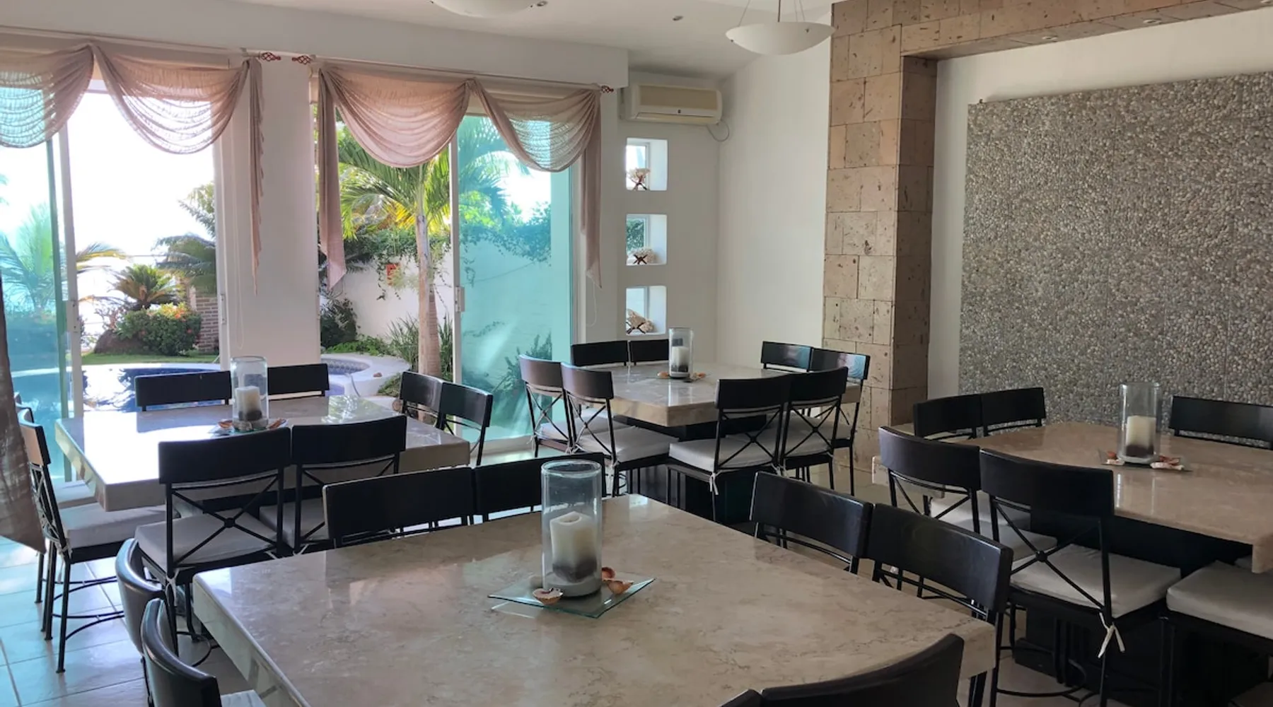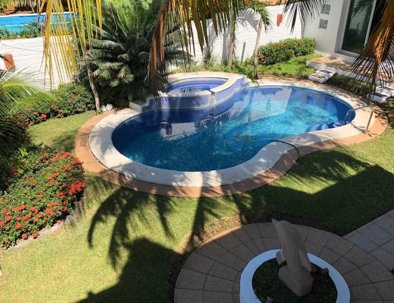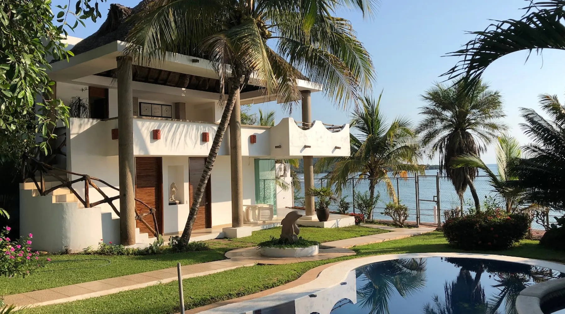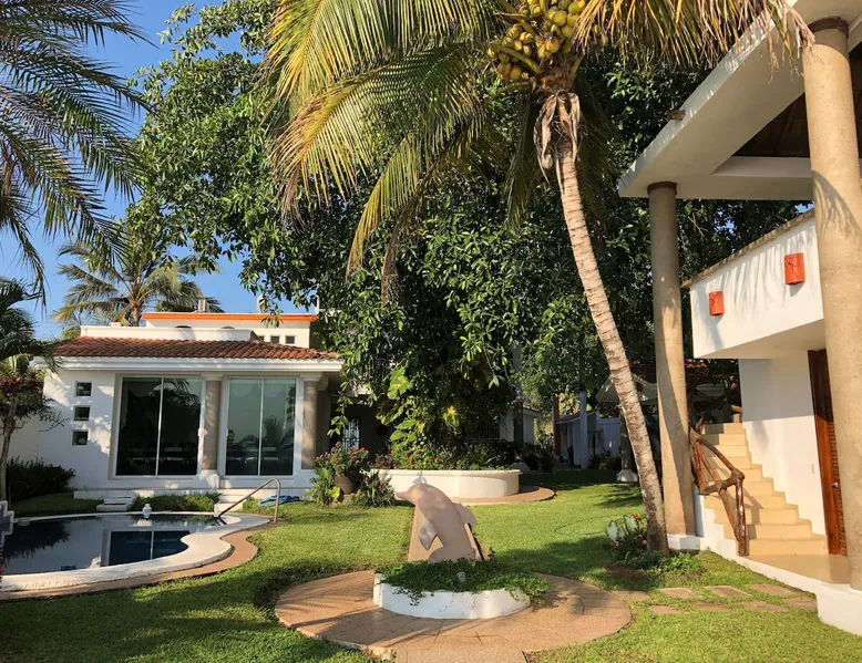 Discover Quinta Charito, a spacious family villa located on a high point facing the sea, with spectacular ocean views. Perfect for groups and families, it offers comfortable spaces, privacy, a constant sea breeze and an incomparable rest experience. Ideal for relaxing, socializing and enjoying the sound of the waves from your own Pacific-front retreat. The space Spacious property with large garden, Palapa-bar area overlooking the entire bay, swimming pool, barbecue, large air-conditioned dining room perfect for gathering the whole family and terrace where you can enjoy the best sunsets. Casa "Quinta Charito" located in front of the sea, where you can appreciate a spectacular view of the entire Bay and Perfect Sunsets. The house has a Mexican design with a contemporary style. It has a fairly large air-conditioned dining room ideal for gathering the whole family; Pool, 5 large bedrooms with AC, Palapa-Bar area with ocean view, Barbecue, Different Rooms, Spacious Green Areas, 2 Kayaks, WiFi, Oceanfront Terrace. Access to the sea by walking along a 120-meter trail and going down some stairs. 25 minutes from the Port of San Blas. Where guests have exclusive right to use all the house's facilities. Guest access The guests have access to the entire house. Other things to note The accommodation is right on the seafront at a high point, with a unique view. Access to the sea via a path of approximately 120 meters and stairs to reach a private and quiet beach.