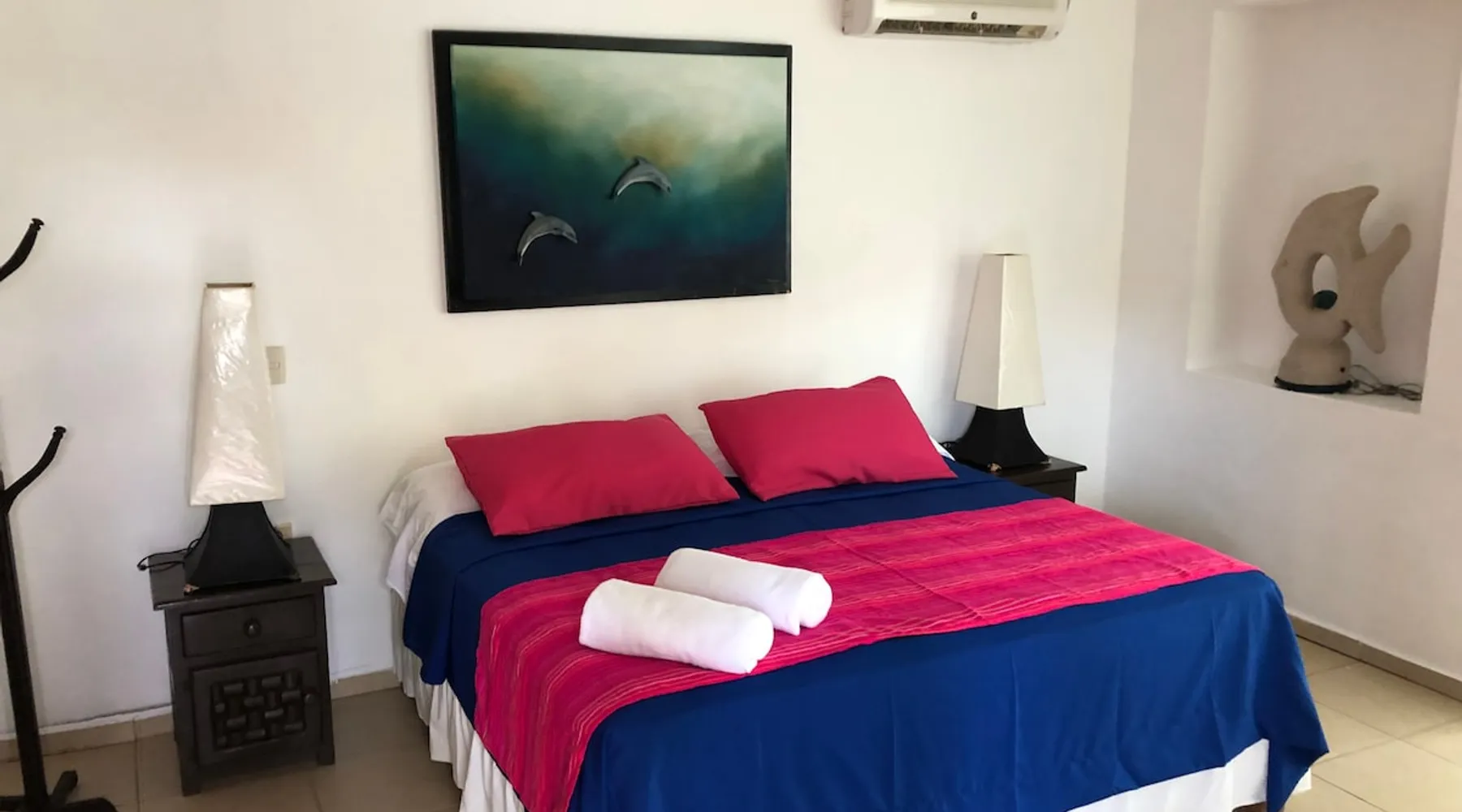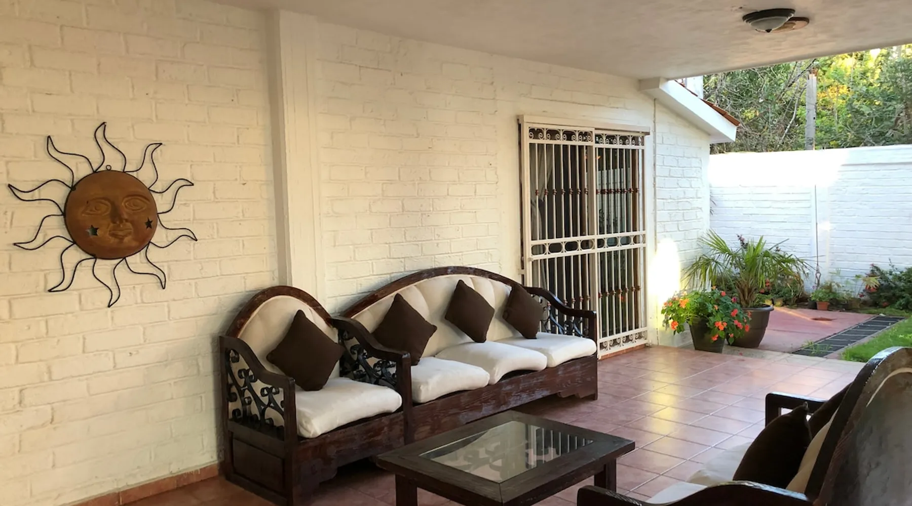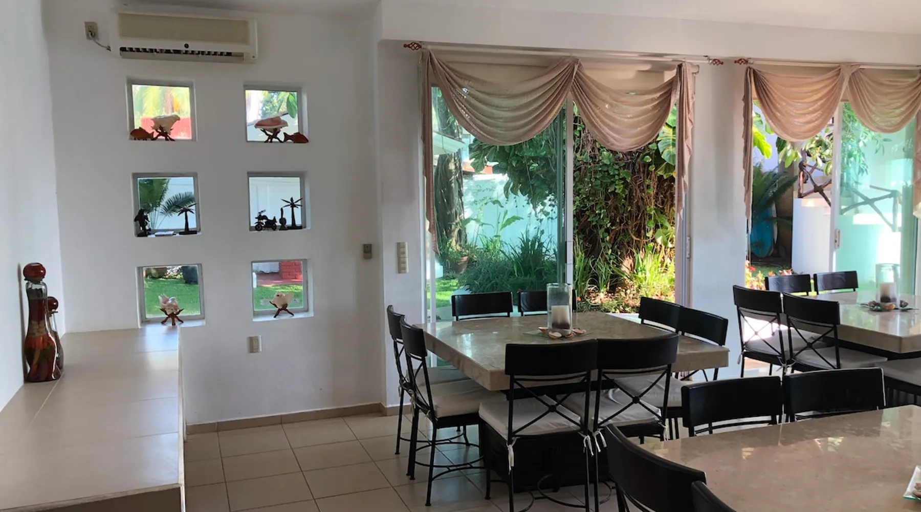 Discover Quinta Charito, a spacious family villa located on a high point facing the sea, with spectacular ocean views. Perfect for groups and families, it offers comfortable spaces, privacy, a constant sea breeze and an incomparable rest experience. Ideal for relaxing, socializing and enjoying the sound of the waves from your own Pacific-front retreat. The space Spacious property with large garden, Palapa-bar area overlooking the entire bay, swimming pool, barbecue, large air-conditioned dining room perfect for gathering the whole family and terrace where you can enjoy the best sunsets. Casa "Quinta Charito" located in front of the sea, where you can appreciate a spectacular view of the entire Bay and Perfect Sunsets. The house has a Mexican design with a contemporary style. It has a fairly large air-conditioned dining room ideal for gathering the whole family; Pool, 5 large bedrooms with AC, Palapa-Bar area with ocean view, Barbecue, Different Rooms, Spacious Green Areas, 2 Kayaks, WiFi, Oceanfront Terrace. Access to the sea by walking along a 120-meter trail and going down some stairs. 25 minutes from the Port of San Blas. Where guests have exclusive right to use all the house's facilities. Guest access The guests have access to the entire house. Other things to note The accommodation is right on the seafront at a high point, with a unique view. Access to the sea via a path of approximately 120 meters and stairs to reach a private and quiet beach.