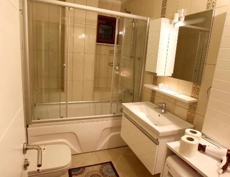 With a beautiful setting amid the forest, Ugur Termal Residence is set in Termal. Property offers on-site cafe, separate men's and women's spa center including separate thermal pool, Turkish bath, steam room and hammam for families. Yalova City Center is 8.7 mi away. Free WiFi and on-site parking are available at the property. Featuring a balcony, all units are air conditioned and have a dining area and a seating area with a flat-screen TV. All units include a kitchen equipped with a dishwasher and oven. Private bathrooms come with a thermal bath and slippers. Towels and bed linen are provided. Guests can start the day with a breakfast at the property. Grocery delivery is available upon request. 24-hour front desk is available at the property. Guests can benefit from separate prayer rooms while younger guests can enjoy children's playground. There is a meeting room for 100 people as well. Bursa is 46 mi from Ugur Termal Residence, while Adalar is 18 mi from the property. The nearest airport is Sabiha Gokcen Airport, 40 mi from Ugur Termal Residence. This apartment features a balcony, seating area and tumble dryer. Free WiFi is available in this room type.