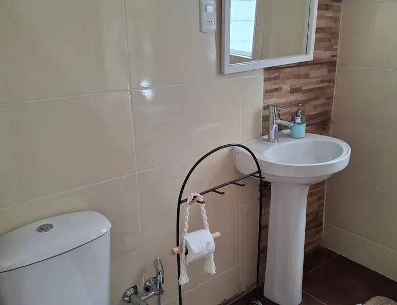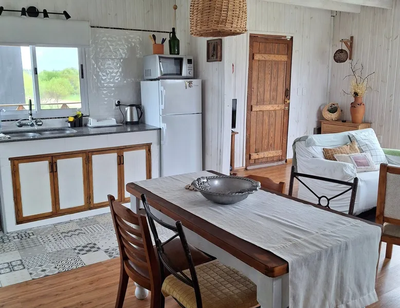 Forget the worries in this great place: it is an oasis of tranquility! well located place 2 blocks from the Negro river. 3 blocks from the picturesque pier of Villa Santo Domingo. and 2 blocks from its square! The space The cabin is very comfortable and cozy! Where you can spend a quiet vacation, surrounded by nature. Guest access It has a living room, wood-burning stove with integrated kitchen. two bedrooms one of them double bed. 2 full bathrooms. terraces where it has beautiful views of the countryside.