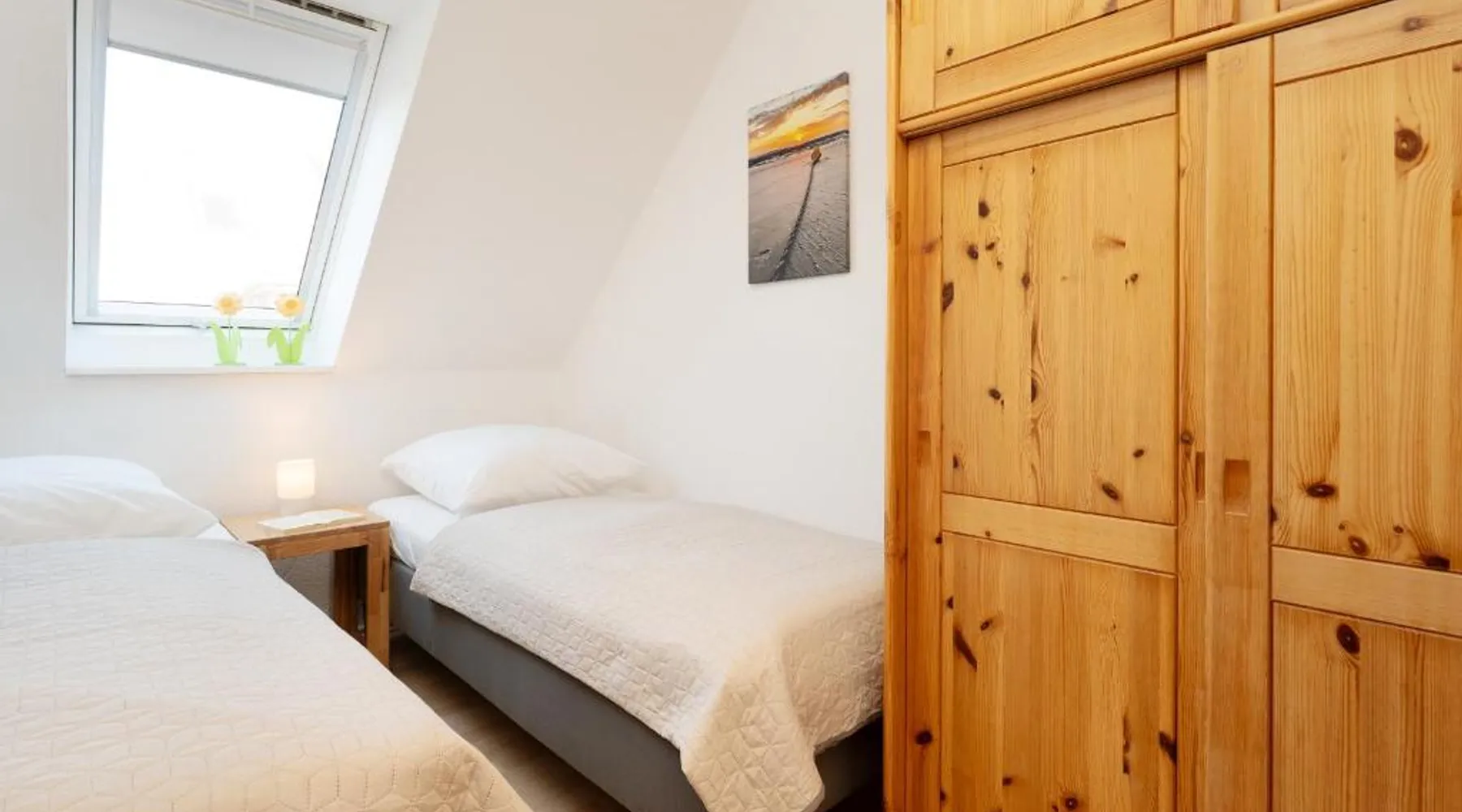 Beachfront Location: Bargmöhl 7 Heber in Wulfen auf Fehmarn offers direct beachfront access and stunning sea views. Guests can relax on the sandy shores or enjoy the outdoor seating area. Comfortable Accommodations: The spacious apartment features two bedrooms and a bathroom. Amenities include a kitchenette, balcony, washing machine, and free WiFi in public areas. Convenient Facilities: Free on-site private parking is available. The property provides a fully equipped kitchen with modern appliances, ensuring a comfortable stay. Nearby Attractions: Fehmarnsund Beach is a 16-minute walk away. Lübeck Airport is 58 mi from the property. Scuba diving opportunities enhance the surrounding area. Highly Rated by Guests: Guests appreciate the spaciousness and excellent facilities, making Bargmöhl 7 Heber a highly rated choice. This spacious apartment consists of 2 bedrooms, a kitchen and 1 bathroom with a shower and a hairdryer. The fully equipped kitchen features a stovetop, a refrigerator, a dishwasher and an oven. This apartment has a washing machine, a tea and coffee maker, a TV and a balcony. The unit offers 3 beds.