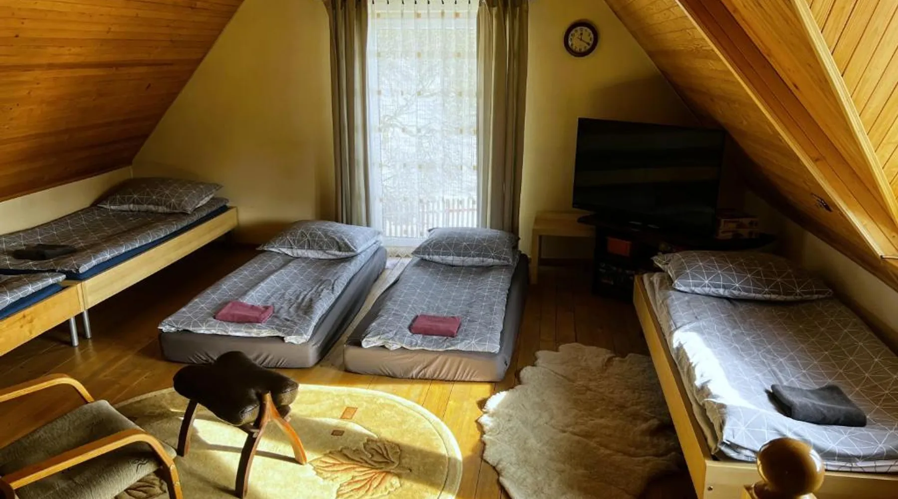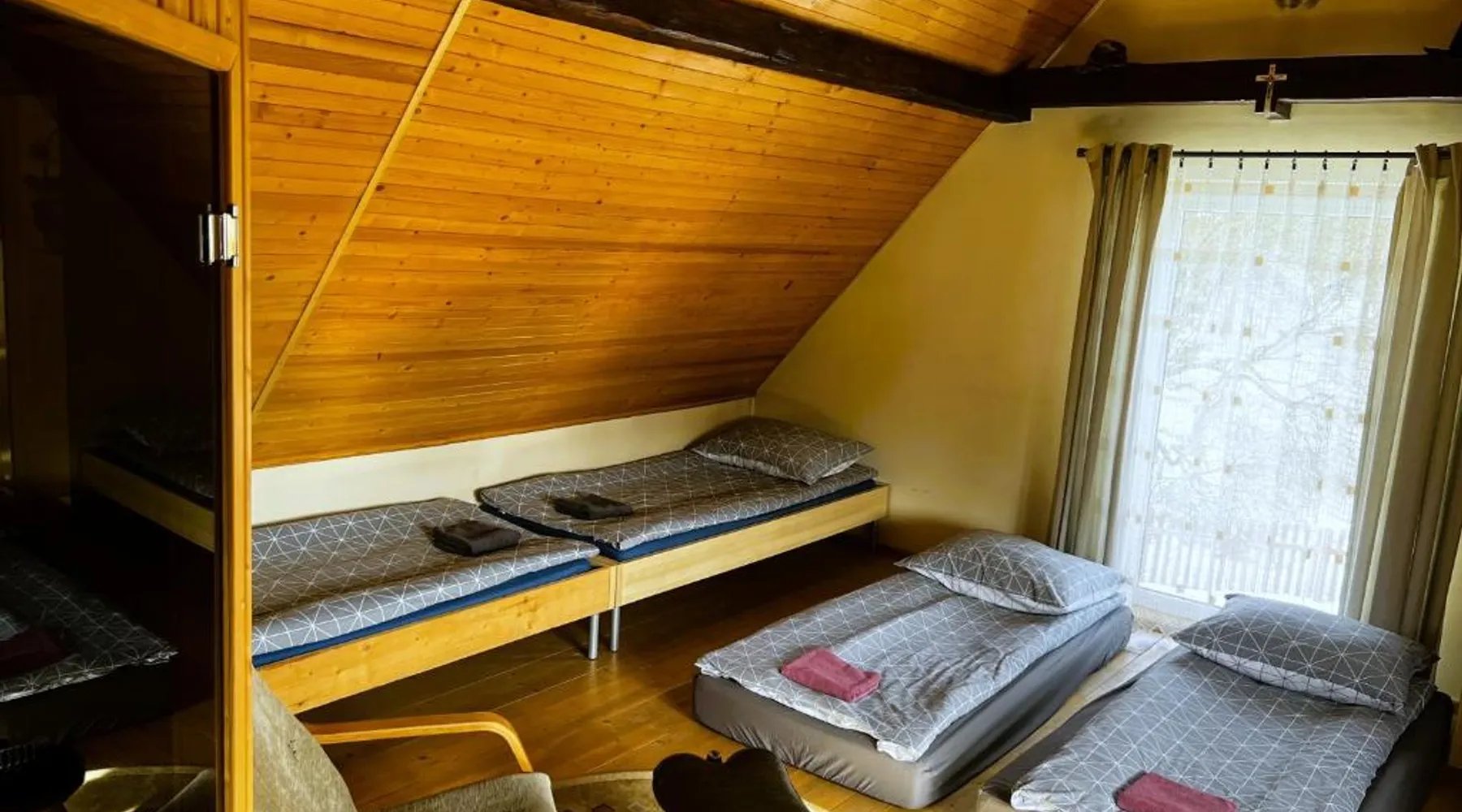 Comfortable Accommodations: Samsolandia Willa Falsztyn in Falsztyn offers a two-bedroom villa with two bathrooms and a spacious living room. The property features a fully equipped kitchenette, washing machine, and free WiFi. Relaxing Facilities: Guests can enjoy a sauna, hot tub, and outdoor fireplace. Additional amenities include a garden, outdoor seating area, and barbecue facilities. Free on-site private parking is available. Local Attractions: Niedzica Castle is 3.1 mi away, Bania Thermal Baths 11 mi, and Treetop Walk 16 mi. Tatra National Park and Kasprowy Wierch Mountain are 26 mi from the villa. Boating is available in the surroundings. Guest Satisfaction: Highly rated by guests, the villa provides a welcoming environment for all visitors. This luxurious villa has a hot tub, a sauna and a fireplace. Boasting a private entrance, this villa features 1 living room, 2 separate bedrooms and 2 bathrooms with a bath and a shower. Guests will find a stovetop, a refrigerator, a dishwasher and kitchenware in the kitchenette. The villa also comes with a barbecue. The villa features a washing machine, a tea and coffee maker, a dining area, a flat-screen TV with satellite channels, as well as garden views. The unit has 7 beds.