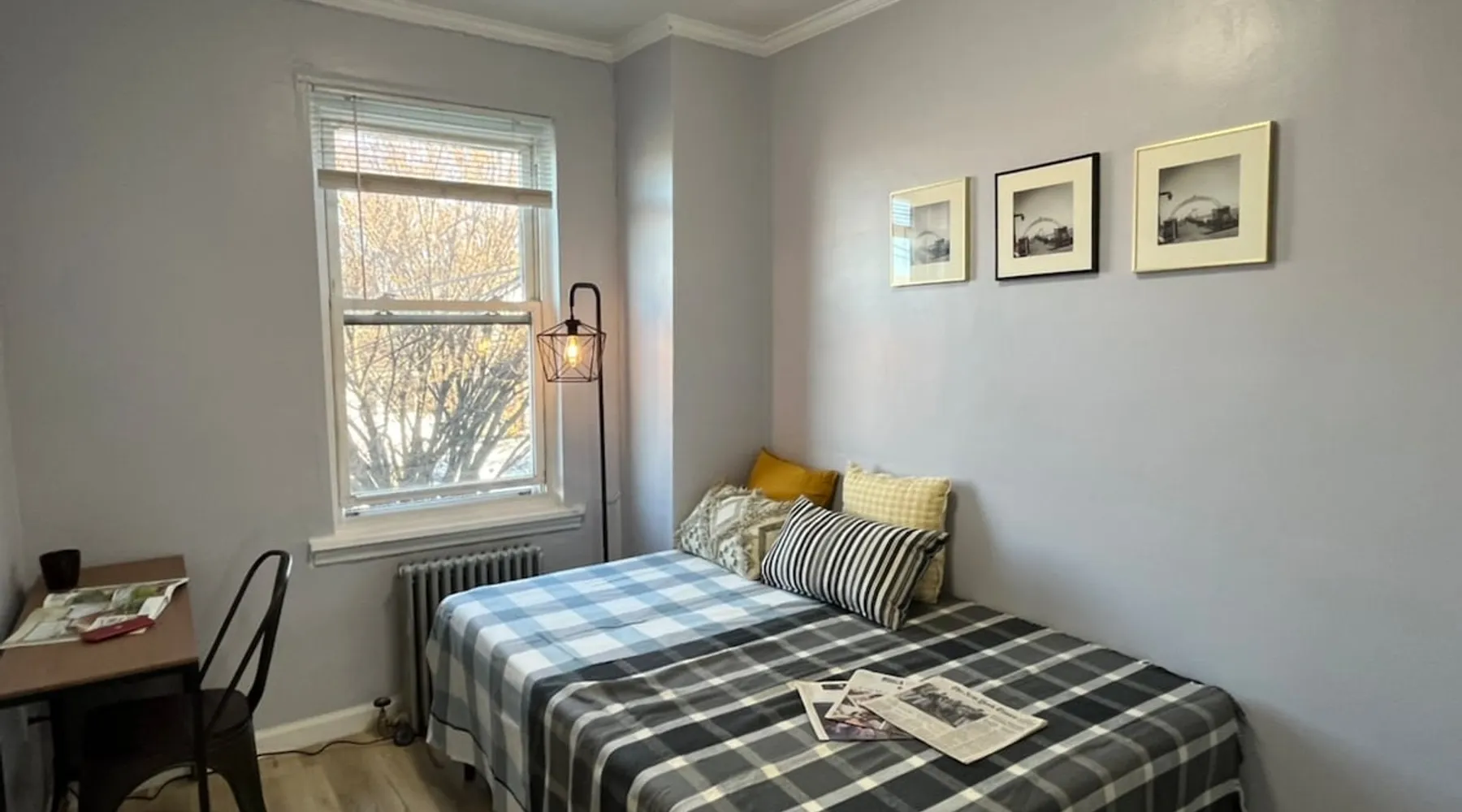 This comfortable room is prepared in March 2023. Your room is on 3rd floor. This is 5 bedroom 2 bathroom apartment. You basically share 1 bathroom with 3 other rooms. (One bathroom is for master bedroom) You can use kitchen. There are dishes, silver, microwave, cooking items etc. You can enjoy cooking and save money in your trip! The space This house is located in Rego Park, Queens. It is recommended for people who are staying in New York for even the first time! This cozy bedroom is a great place to relax after long day of exploring New York City and its hidden gems. The room is furnished with full-size bed, desk, chair and closet. And this room has two window, so it's really bright at daytime. *There is no key lock on your bedroom’s door. Other things to note ***** Before booking*********************** Under Fire Department of NY advisement, there is NO LOCK on the bedroom door, Only privacy bathroom lock is attached to the bedroom door. This is NOT like HOTEL, HOSTEL, GUEST HOUSE... This house is a normal shared house in New York. You have housemates. I ask guests to prepare your amenity by yourself. There is no hotel service like daily clean, 24 hour security guard etc. *There are basic kitchen equipments like dishes, silver, microwaves, frying pan and etc. Off course, you can use them. Please understand that and make a reservation. I hope that you find a great place to stay in NY not only at my place. ************************************************ AND There are house rules. I think there are normal thing to live in a share house. But please check them before your booking. -Rules for Commons Space- 1. Please keep common space clean. You and your guests need to take shoes off. 2. Do not leave kitchen area while you are using kitchen stove. It might cause fire. 3. Please keep the main door locked. 4. At night time, do not talk loudly and Please watch TV or movie with headphone. 5. No party, No Smoking, No Drugs 6. Please separate garbage into 3 categories, Regular garbage, Metal or Plastic, and Paper. 7. Please flush toilet after you use. 8. When toilet is cragged, please close the water bulb first which is located under the toilet, then use plunger to fix the crag. 9. Do not Leave your garbage in front of your room. You need to put it downstairs 10. Everybody has to contribute cleanness please follow cleaning schedules 11. Please take your hair and throw it away after you take shower. 12. Do not put your shampoo bottle around bathtub. 13. No Pet, cat and dog, is arrowed. (small pets are negotiable) 14. Please do not leave your belongings in common space. Even if someone accidentally uses or throw it away. Host is not responsible for the loss. -Common Troubles- 1. Bedbugs : In New York City, bedbugs are everywhere. 99% chance, you bring them into your room. If you bring it, you have to deal with the problem with your own cost before it spreads out. *Please ask host how to exterminate it. 2. Host is not responsible for any troubles between roommates and stolen or damages to personal belongings 3. When the refrigerator is broken, the lease holder is not responsible for any damages to your food and replacement of your food. 4. If you lose your keys, it costs you $150 + material cost to replace it. Please prepare $150 when you receive a new key. 5. If you put yourself in-lock. It cost you $40 for I open the door for you. It may take couple of hours or it could be next day. If it is urgent please call locksmith. If lease holder is out of state. 6. Do not change any keys without notice to the lease holder. 7. If you find any problem, let host know. He will talk to landlord to fix it but cannot guarantee that landlord will fix it or not. 8. Internet and boiler sometimes stop. But there is no refund for rent and utility unless lease holder receives refund from the landlord or internet company. 9. You may have a leak from ceiling or water backs up from drain. Host will not be responsible for damages to your belonging and will not pay you. Optional - 1. If you need an AC (Air Conditioner), you can rent it for $3 per day. 2. Central heating is usually set for 68F. If you feel cold you can rent a electric heater during winter time, you can rent it from us $3 perl day. -The date you move out- 1. When you move out, please leave your keys on the desk of your room. You need to leave by 11:00am of your singed move-out day. 2. Please clean your space in kitchen, bathroom, and refrigerator 3. The lease holder has the right to show your room to next potential tenants 40 days prior from your move-out date. Host needs to let you know at least 12 hours before from the showing time. *There is no key lock on your bedroom’s door.
