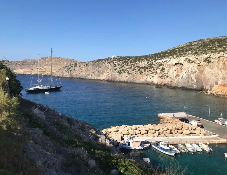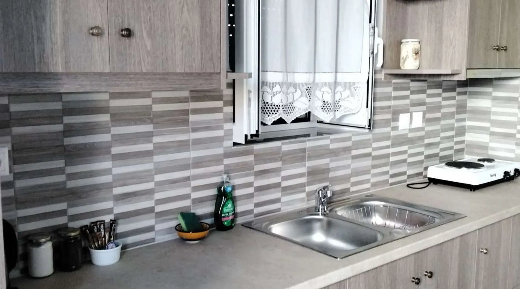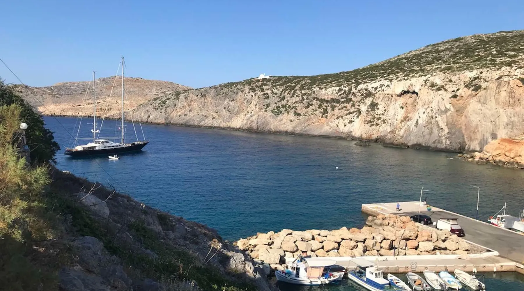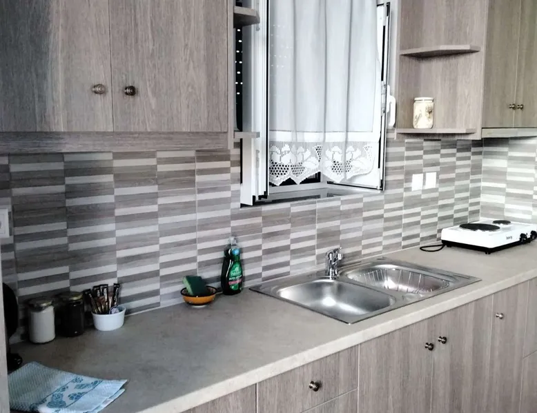 Newly built studio with view to the sea. The space The studio has an equipped kitchen, air conditioning, refrigerator, TV, wifi, 1 double & 1 single bed. It is located 70 meters from the port of the island and the beach, close to the taverns and the mini market. Registration details 1908254