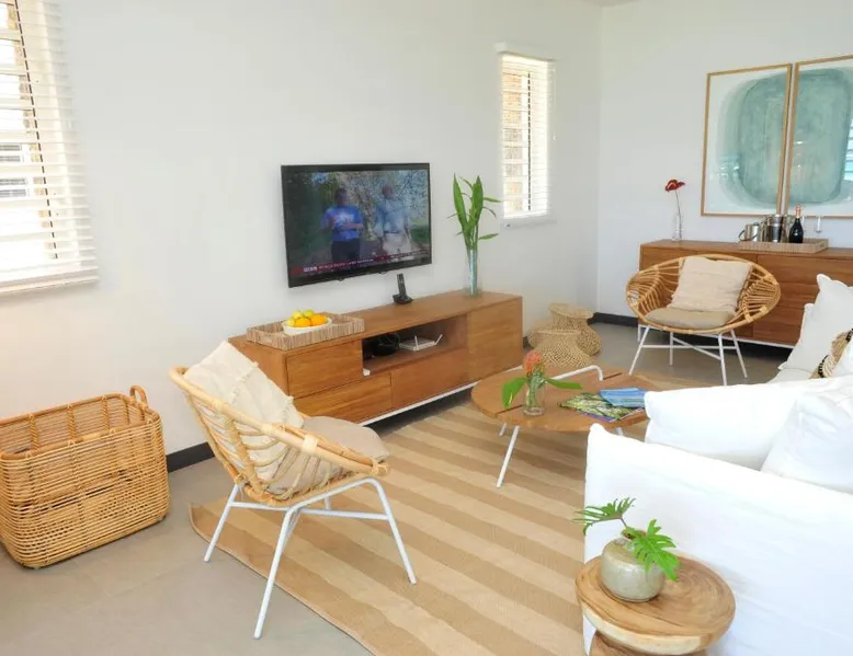 Beachfront Location: OBiches Beachfront Apartment Trou-aux-Biches in Trou aux Biches offers direct beachfront access and stunning sea views. Guests can relax by the swimming pool with a view or enjoy the lush garden and terrace. Comfortable Accommodations: The apartment features air-conditioning, a fully equipped kitchen, and a private bathroom. Additional amenities include a washing machine, dishwasher, and free WiFi, ensuring a comfortable stay. Convenient Facilities: The property provides free on-site private parking, an outdoor seating area, and family rooms. Full-day security and a work desk cater to all guest needs. Nearby Attractions: Trou Aux Biches Beach is just a few steps away, while Sir Seewoosagur Ramgoolam Airport is 37 mi distant. Nearby attractions include Sir Seewoosagur Ramgoolam Botanical Garden and Port Louis. The pool with a view is the standout feature of this apartment. Boasting a private entrance, this spacious apartment also includes 3 bedrooms, a seating area and 3 bathrooms with a walk-in shower and a hairdryer. Guests will find a stovetop, a refrigerator, a dishwasher and kitchenware in the kitchen. The apartment also features a barbecue. The air-conditioned apartment offers a flat-screen TV with satellite channels, a washing machine, soundproof walls, a tea and coffee maker as well as sea views. The unit has 3 beds.