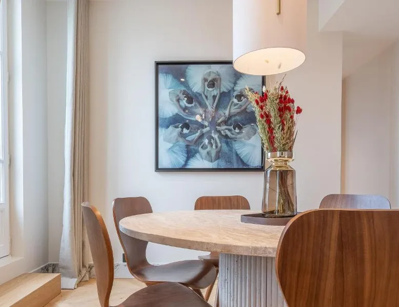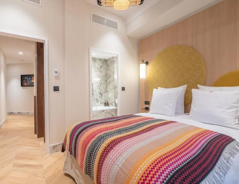 Prime Paris Location: Yuna Saint-Germain-des-Prés offers a central position in Paris, located 8.7 mi from Orly Airport. Nearby attractions include Luxembourg Gardens (12-minute walk), d'Orsay Museum (0.9 mi), and the Louver Museum (1.1 mi). Comfortable Accommodations: Each apartment features air-conditioning, a kitchenette, and a private bathroom with a walk-in shower. Additional amenities include streaming services, a washing machine, and a work desk. Convenient Facilities: Guests benefit from free WiFi, private check-in and check-out, a paid shuttle service, and a concierge. The property also offers room service, luggage storage, and full-day security. Nearby Activities: Boating is available in the surrounding area, providing relaxing activities for visitors. Featuring a private entrance, this air-conditioned apartment consists of 1 living room, 1 separate bedroom and 1 bathroom with a walk-in shower and a hairdryer. Meals can be prepared in the well-fitted kitchen, which comes with a stovetop, a refrigerator, a dishwasher and kitchenware. The apartment provides a washing machine, soundproof walls, a mini-bar, a flat-screen TV with streaming services, as well as an inner courtyard view. The unit offers 2 beds.