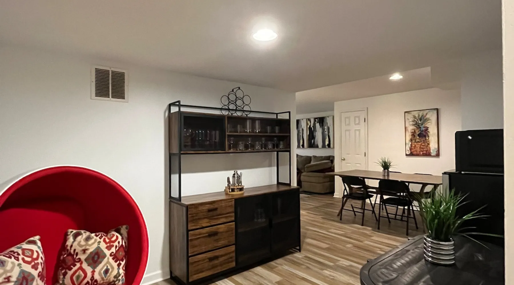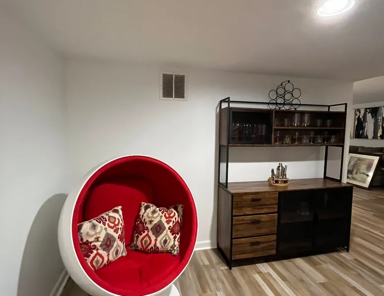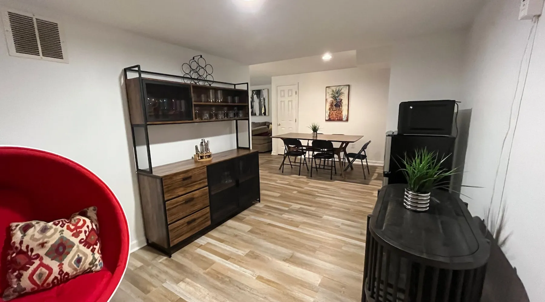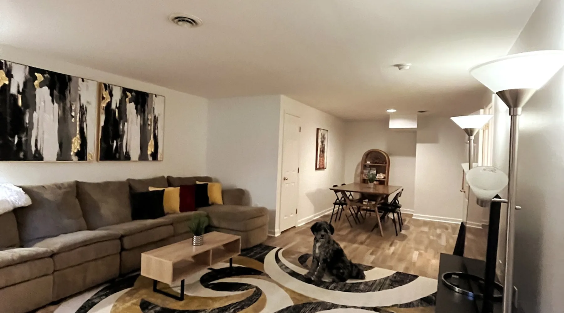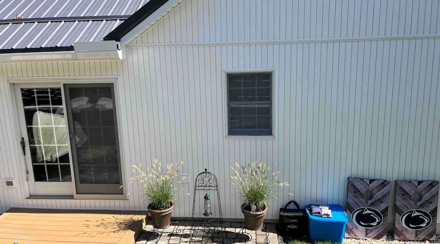 Enjoy the modern luxury of this recently remodeled centrally located home that is walking distance to Beaver Stadium and downtown. This relaxing retreat is less than a mile from Penn State University in the sought after Highlands neighborhood of State College. Tussey Mountain and Rothrock State Forest are close by for skiing, hiking and fishing. Indoor and outdoor Pickleball courts are nearby too. It is the perfect place to gather the family for graduation or any special occasion. The space Walk through the front door and there are three bedrooms and two full baths to the left, the kitchen and laundry room directly in front and the living room to your right. The dining room can be accessed through the living room or kitchen. Exit the kitchen sliding glass doors to the outside patio with a Weber grill, dining table and a fun cabana seating area. Go downstairs to find a full recently renovated basement with kitchenette, full bathroom and game area. The office is located off the living room area in the basement. The couch converts to a bed for two people and there is a queen sized mattress that can be added to the office or basement living room area to easily sleep 10 people. The driveway has space for 4 cars and the garage can fit two more if needed.