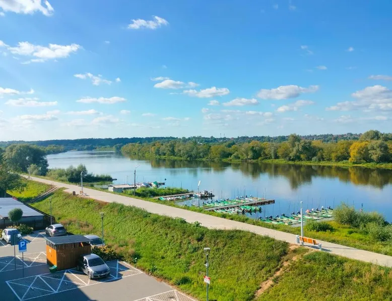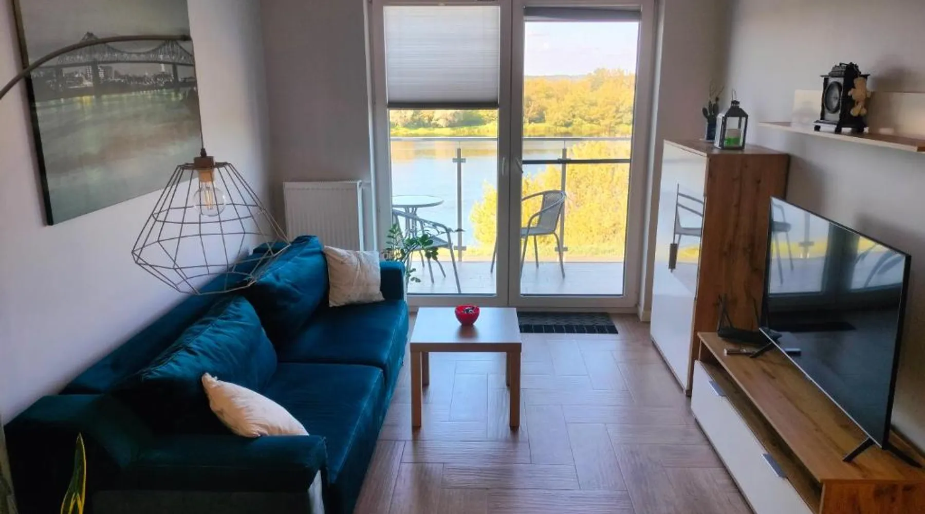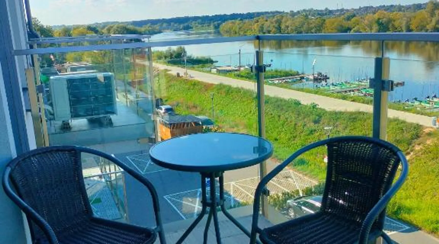 Comfortable Living Space: Apartament z pięknym widokiem in Nowy Dwór Mazowiecki offers a one-bedroom apartment with a living room. The property features a balcony with river views, a fully equipped kitchen, and a washing machine. Modern Amenities: Guests enjoy air-conditioning, a kitchenette, and a dining area. The apartment includes a sofa bed, refrigerator, microwave, dishwasher, oven, and stovetop. Additional amenities include a TV, wardrobe, and outdoor dining area. Prime Location: Located 3.1 mi from Warsaw-Modlin Airport, the apartment is near attractions such as the Old Town Market Place and Warsaw Uprising Monument, each 21 mi away. Free parking is available on site. Highly rated for its scenic views. In the well-equipped kitchen, guests will find a stovetop, a refrigerator, a dishwasher and kitchenware. The air-conditioned apartment features a flat-screen TV, a washing machine, a dining area, a wardrobe as well as river views. The unit has 2 beds.