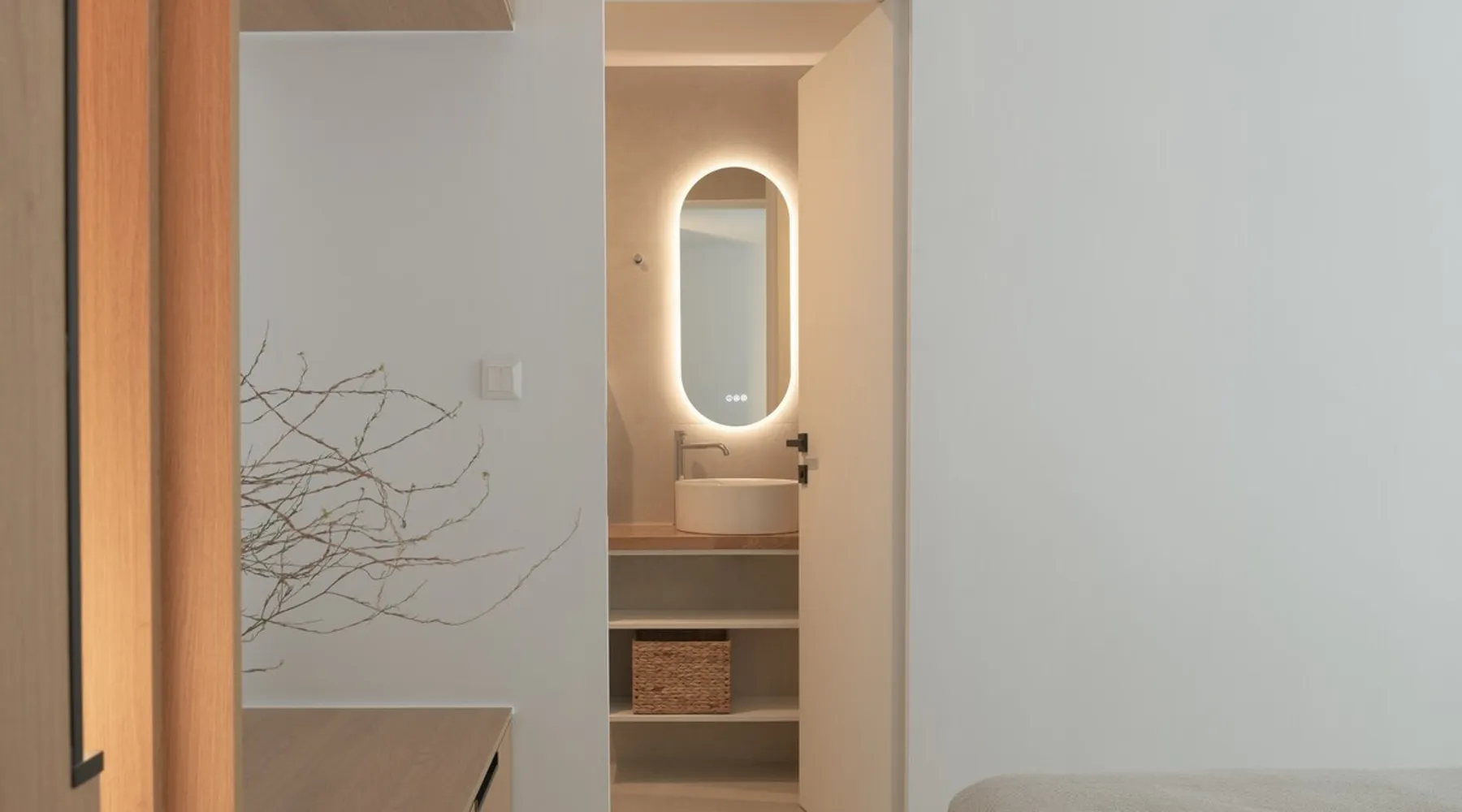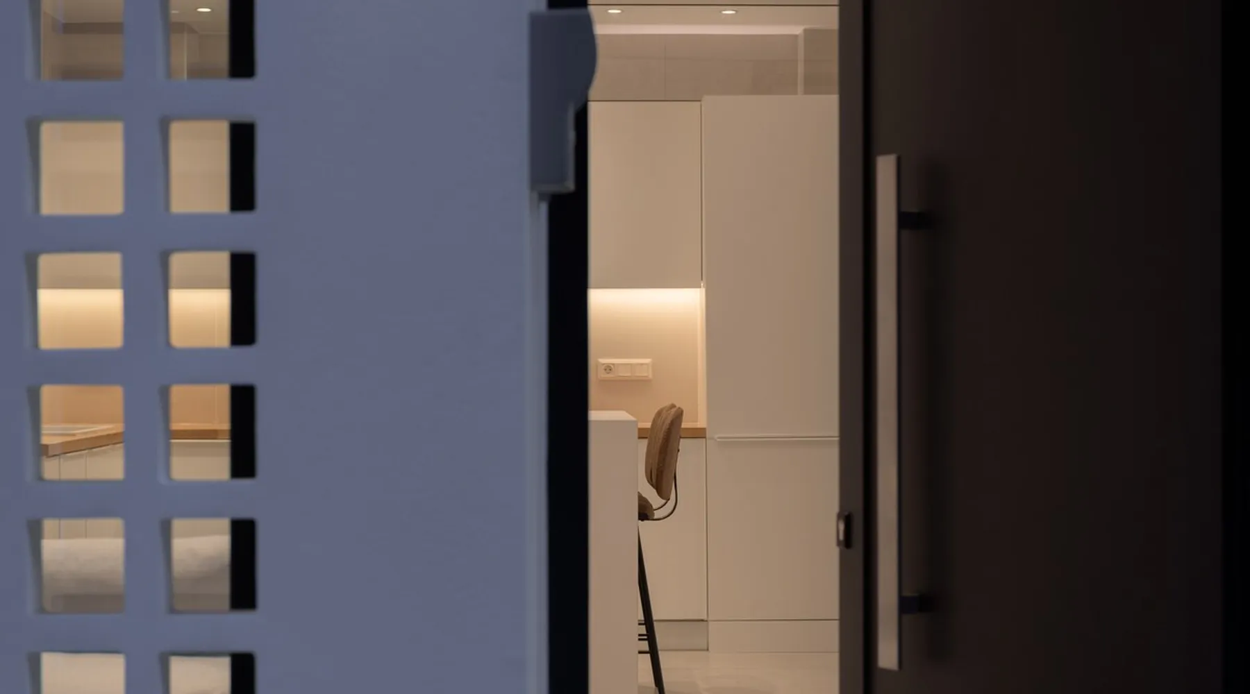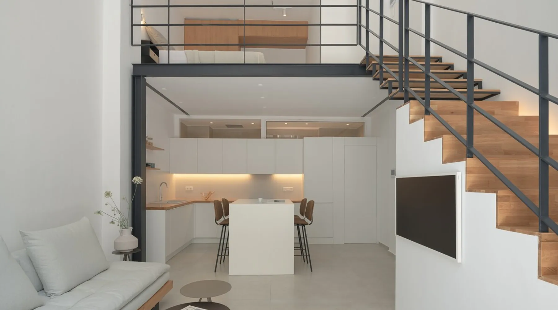 Bright and stylish, one-bedroom apartment in the heart of Ierapetra. Combines elegance, high-tech amenities & excellent location. Large windows provide natural air & light, also featuring blackout blinds. The loft bedroom with ensuite bathroom & king size bed overlooks the living room with 2 sofa-beds on the ground floor, a fully equipped kitchen (oven, stovetop, dishwasher, washing machine-dryer), rain shower bathroom, smart TV, A/C, wifi & smart home features. Suitable for up to 4 guests. Registration Details 00002162782