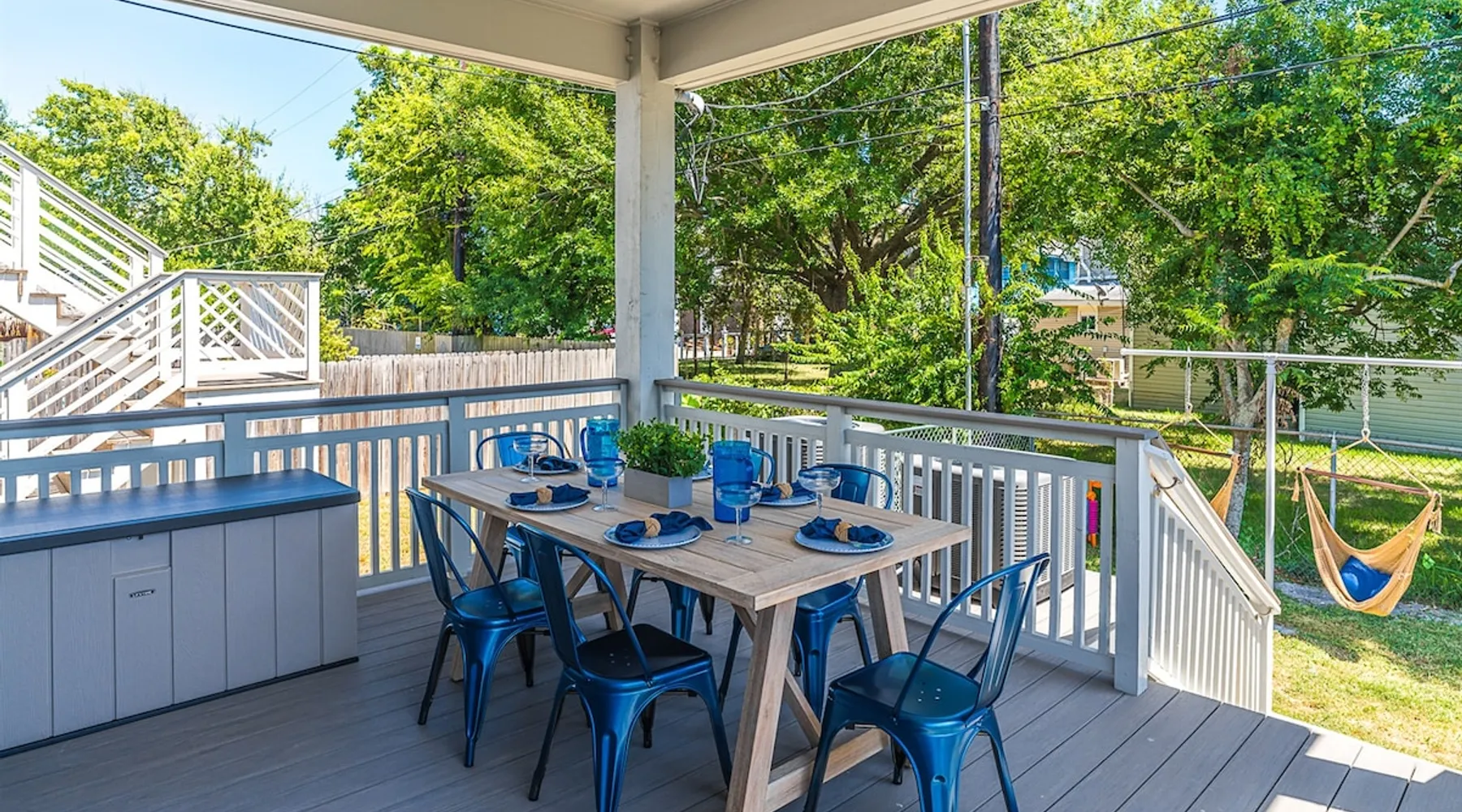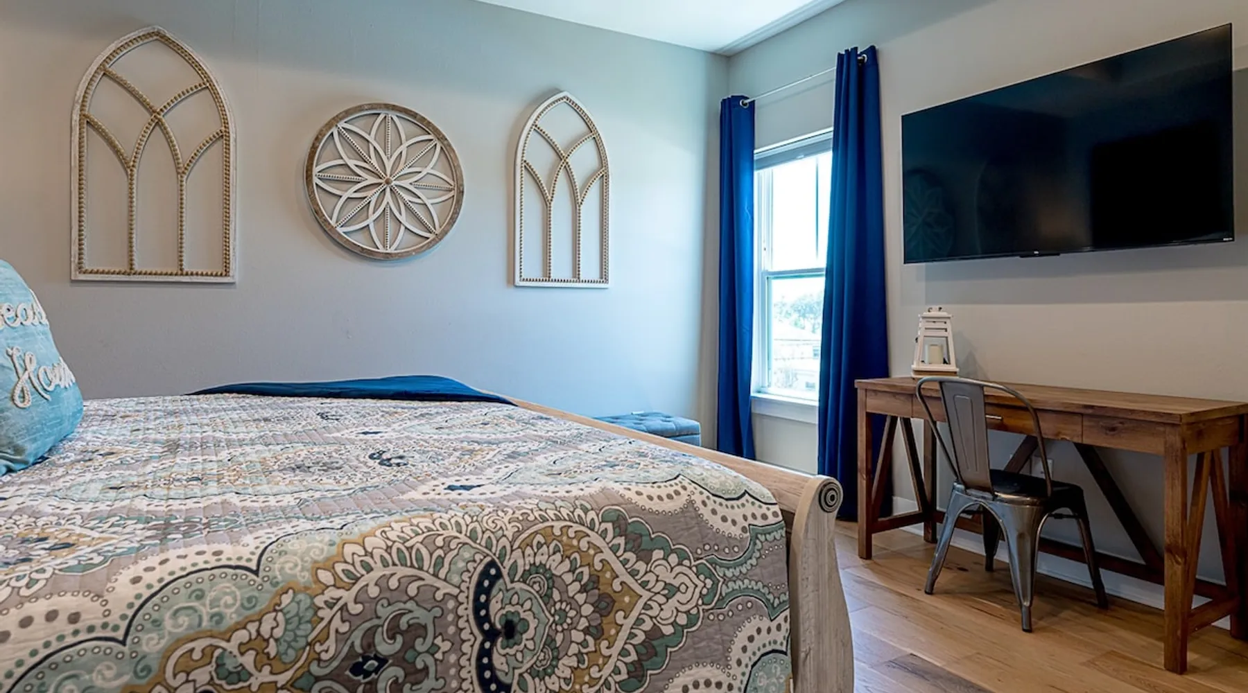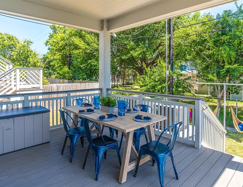 3 Bedrooms, 2.5 Bathrooms, Sleeps 8 - 2 kings, 1 queen, and 1 queen sofa bed Sapphire Shells is a beautiful coastal home located in midtown Galveston. As you enter the home, you will feel the calmness of the Island from the modern coastal décor. On some evenings, you can hear the ocean from the rocking chairs on the patio. Dogs are considered on a case-by-case basis with a non-refundable pet fee per dog. A level 2 EV Charger plug is available for use - please bring your charging cable. The space 3 Bedrooms, 2.5 Bathrooms, Sleeps 8 - 2 kings, 1 queen, and 1 queen sofa bed (with a memory foam mattress) Sapphire Shells is a coastal gem nestled near the seawall in mid-town Galveston Island. As you enter the home, you will feel the calmness of the Island from the modern coastal décor. On certain evenings, the gentle symphony of ocean waves can be heard while you unwind on the patio's rocking chairs. You will love the open floor plan! Spend relaxing evenings in the living room with a 65-inch smart TV. Be sure to check out the chef's dream kitchen, which is fully stocked, including cookware, crockpot, griddle, etc. The Coffee Bar offers convenience with two coffee maker options: Keurig for one or a full pot for the whole family. Sapphire Shells features 3 elegant bedrooms with black-out curtains in every bedroom for a perfect night's sleep after a busy day at the beach. All bedrooms have 55" smart ROKU TVs where guests can log into their favorite streaming service using their own login credentials. The primary and secondary bedrooms are located on the second floor and both have KING beds. The primary suite has a spa-like ensuite with a walk-in shower and a large closet with plenty of storage. The secondary bedroom also boasts a KING bed, and there's another full bathroom upstairs with a shower/tub combo. The QUEEN bedroom and a convenient half bath are located downstairs. For our youngest guests, this home also has a pack-n-play, a highchair, and beach toys. The house also comes equipped with fun family games. Sapphire Shells is conveniently located CLOSE TO SO MANY ATTRACTIONS: - Beach: 2.5 blocks away and only 0.4 miles/2-minute drive/8-minute walk - Pleasure Pier: 1.2 miles/4-minute drive/21-minute walk - Schlitterbahn Water Park: 3.5 miles/10-minute drive - The Strand Historic District: 2.8 miles/10-minute drive - Bishop's Palace: 2.6 miles/8 minute drive - Moody Gardens: 3.4 miles/10-minute drive - Moody Mansion: 1.8 miles/5-minute drive - Galveston Railroad Museum: 2.3 miles/7-minute drive - Galveston Children's Museum: 1.7 miles/5-minute drive We will email you our list of favorite "local" restaurants in the check-in instructions which you will receive 24 hours before your check-in date! Prepare to embark on an unforgettable experience at Sapphire Shells in Galveston, TX!! COMMUNITY POOLS: To help you make the most of your vacation, we’re pleased to inform you about two nearby community pools available for your use: Jamaica Beach Community Pool: Located 7 miles from Beachfront Bliss at 16721 Jolly Roger, Jamaica Beach, TX 77554, this pool is ideal for guests staying at Beachfront Bliss. Lasker Community Pool: Situated at 2016 43rd St, Galveston, TX 77550, Lasker Community Pool is just half a mile from Sapphire Shells and 3 miles from Turquoise Shells. You will receive an email with links to both pools in your check-in instructions. Please review the information for pool hours, fees, and other important details as they may vary throughout the year. RULES TO BOOK THIS HOUSE: 1. The rental agreement needs to be filled out within 48 hours of booking this home and a copy of a valid government-issued ID will need to be uploaded as a file when filling out the rental agreement (per insurance requirements). The rental agreement will be emailed to you immediately after booking if you book on an online booking site. 2. This home has a strict NO SMOKING and NO EVENTS/PARTY POLICY 3. Maximum number of guests is 8 and limited to those listed on the rental agreement. 4. Minimum age of primary renter is 25 PET RULES: Pets: This is a private Rental Property and only two pets (dogs only) are allowed that weigh 50 pounds each or less. Please keep your pet off the furniture and monitor them closely as the Owners are not responsible for their safety. THE GUESTS AGREE: - There will be an additional $200 fee if pet hair is found on furniture or bedding. - All excess dog hair will be swept, vacuumed, or otherwise picked up and removed from the inside of the home before departure. - Pets must be house-broken, up to date on all vaccinations, especially rabies, and at least one year old. - All pets must be treated with topical flea repellant 3 days before arrival. - Pets must be crated if left alone in the home and leashed in all public areas. - Guests are responsible for their pet's supplies including food, beds, blankets, bowls, etc. - To rinse off dirt and sand that the pet may have accumulated while outside, and dry thoroughly before entering the Rental Property. - To clean up after their dog and dispose of their waste promptly. - To keep the dog from being noisy and/or aggressive and causing annoyance or discomfort to others. - Dog beds, blankets, etc. will not be washed in the washer and dryer in the Rental Property. - Any dog with a recorded history of biting is strictly prohibited. - If any sign of pet damage or an unauthorized pet is discovered, then the Guest authorizes the Owner to charge the Guest an additional minimum $500 fee. - The Pet fee is per dog and nonrefundable. 2 dogs max under 50 lbs. $59/pet nonrefundable fee. Pets are not allowed on furniture and must be crated if left alone. - To communicate with the Owner about bringing a dog and getting approval from the Owner via the booking platform messenger, text, or phone call before bringing a dog or risk being charged $500 for nondisclosure for each animal. ****Please note the owner and her 2 kids are highly allergic to cats so cats WILL NOT