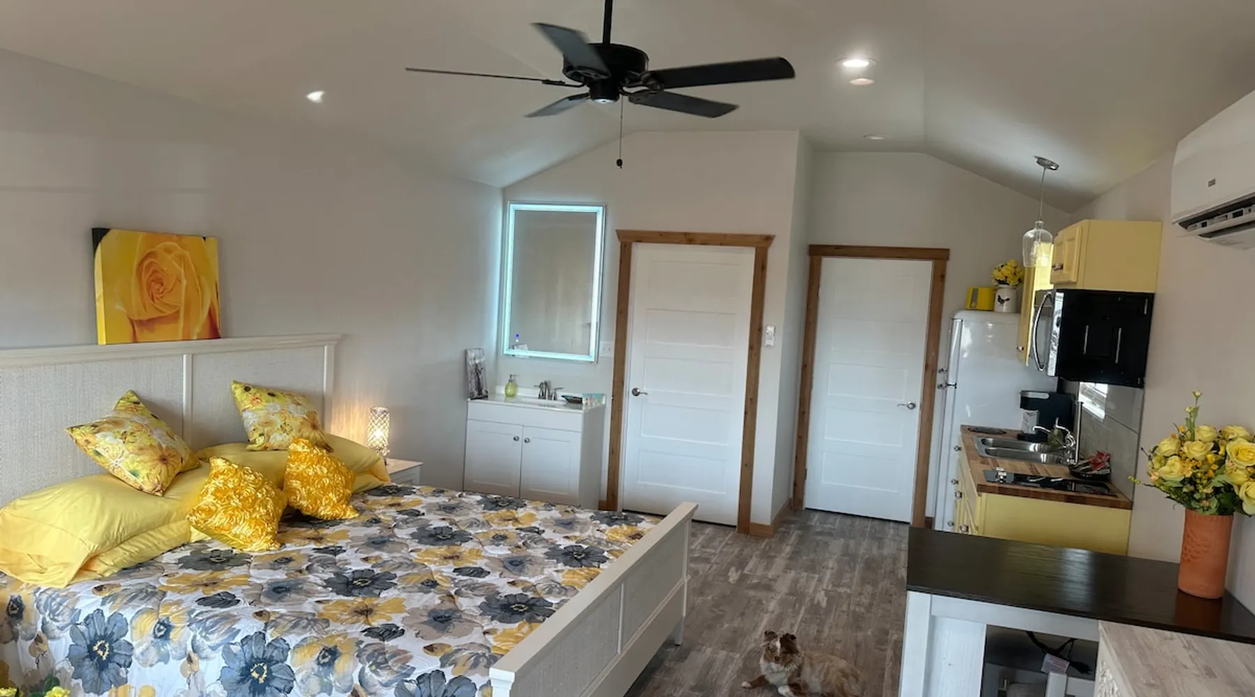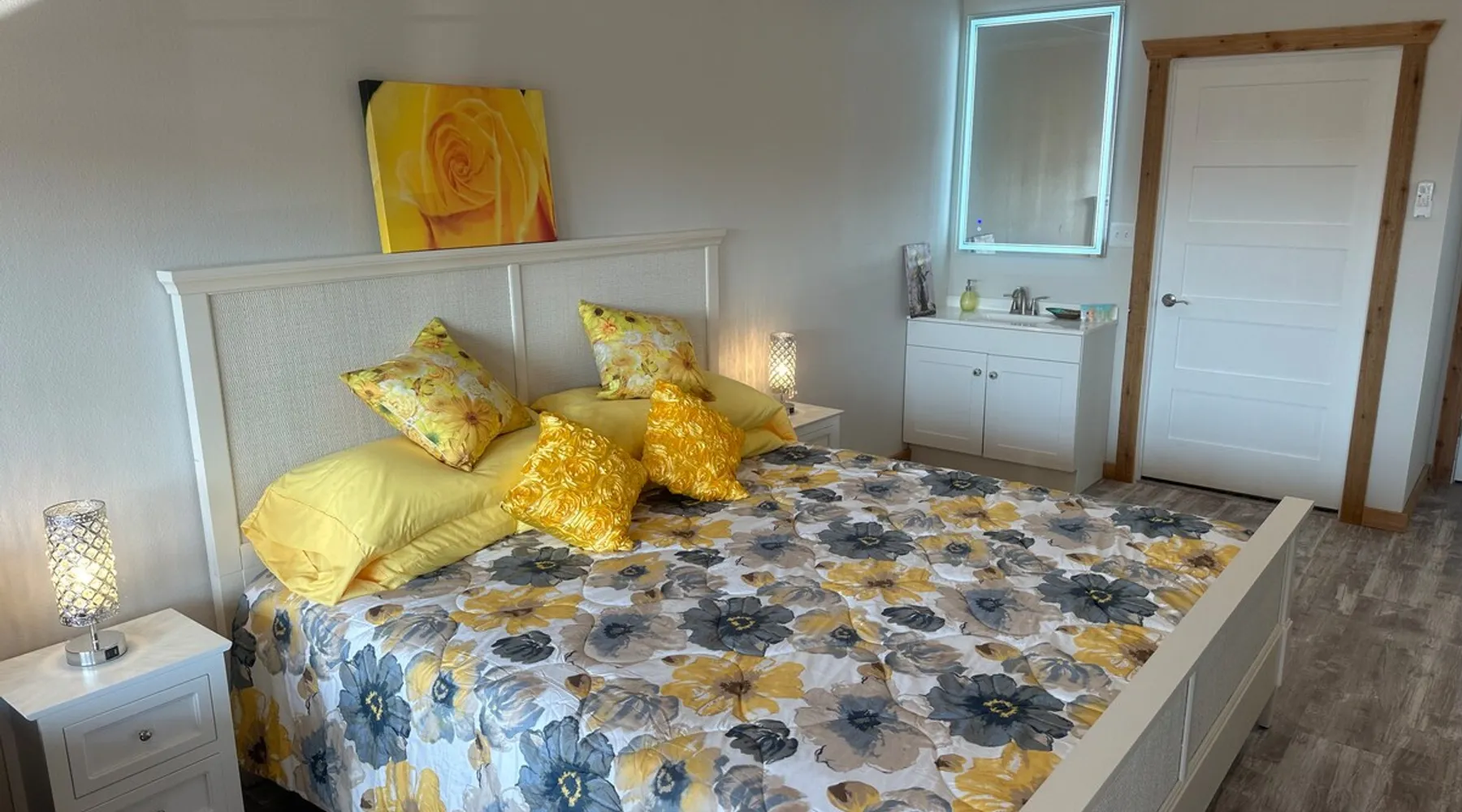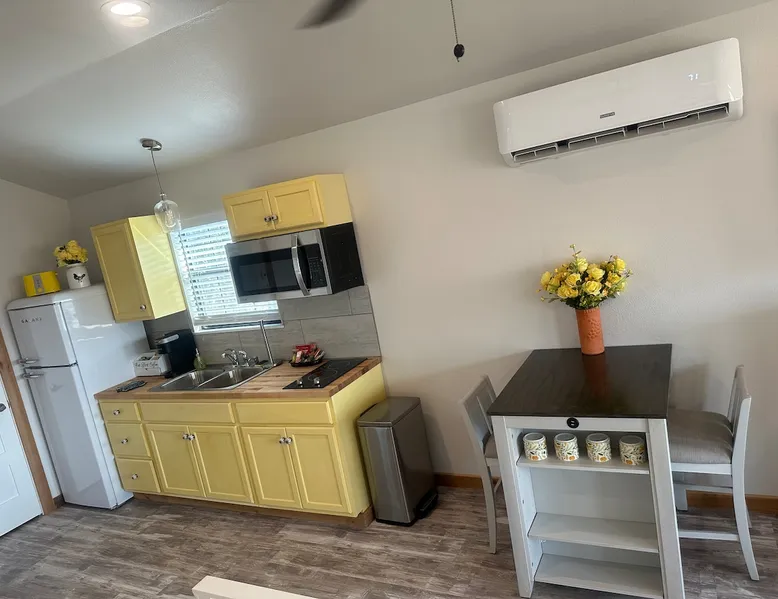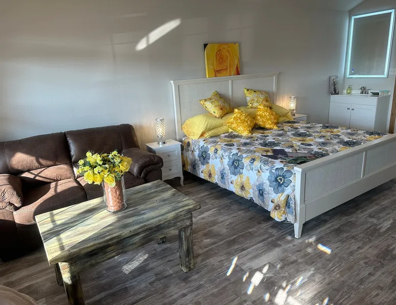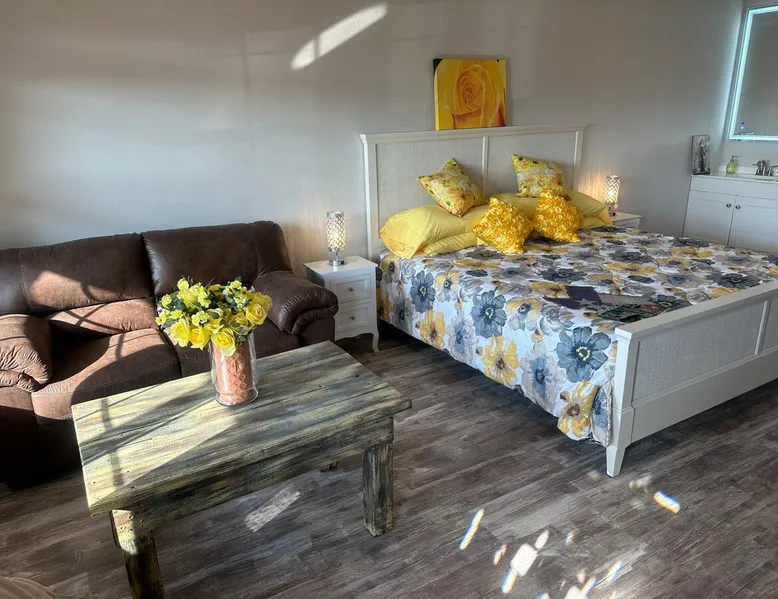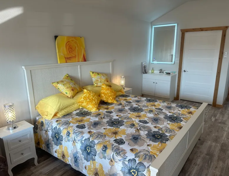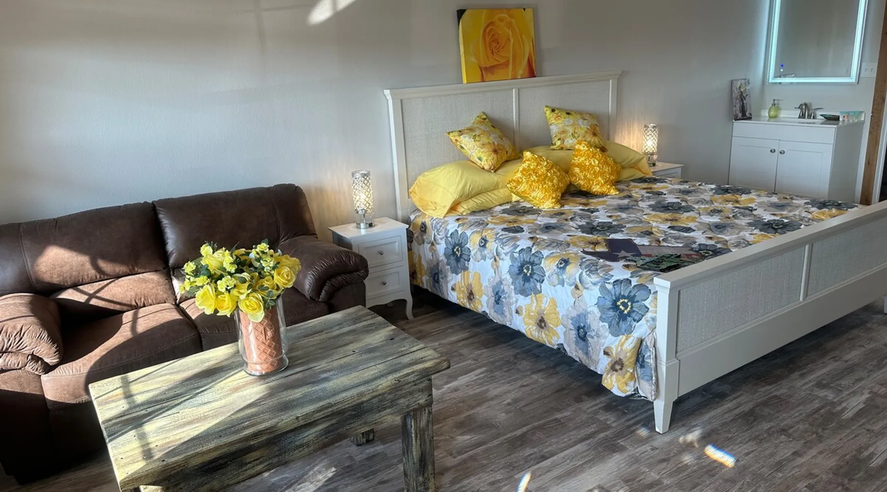 The Cabin of Love Yellow Rose at Silver Dollar Winery Hill Country. Enjoy wine and our Italian Bistro with artisan pizzas and Italian food with over 20 wines sweet to dry. Located on Highway 290. Cabin new release as of August 31 2023. Gorgeous views sunset and sunrise located next to 80+ wineries and distilleries near Fredericksburg and Hye Tx. Custom cabin with king size Serta mattress with deluxe pillows soft and firm. Microwave and kitchenette. currently no breakfast is provided. Guest access Private cabin with parking next to cabin for one car