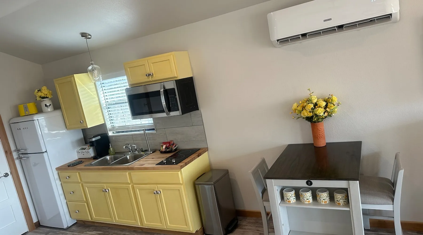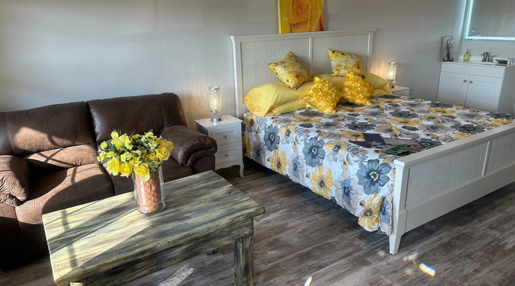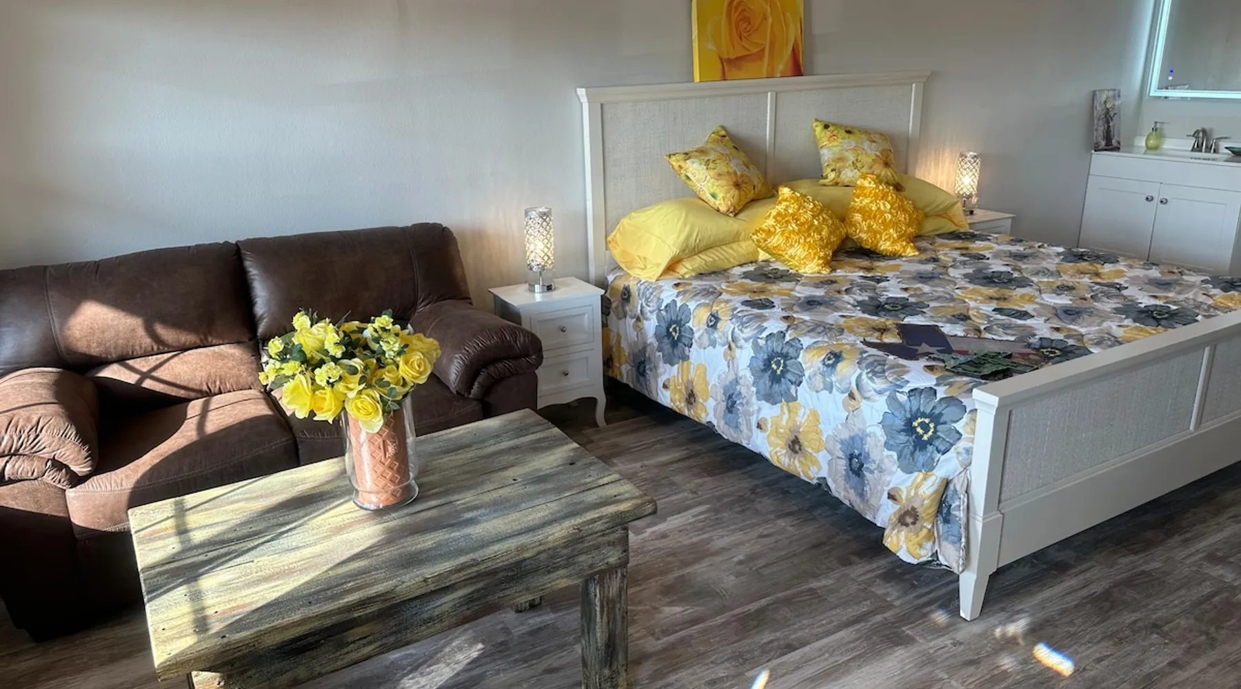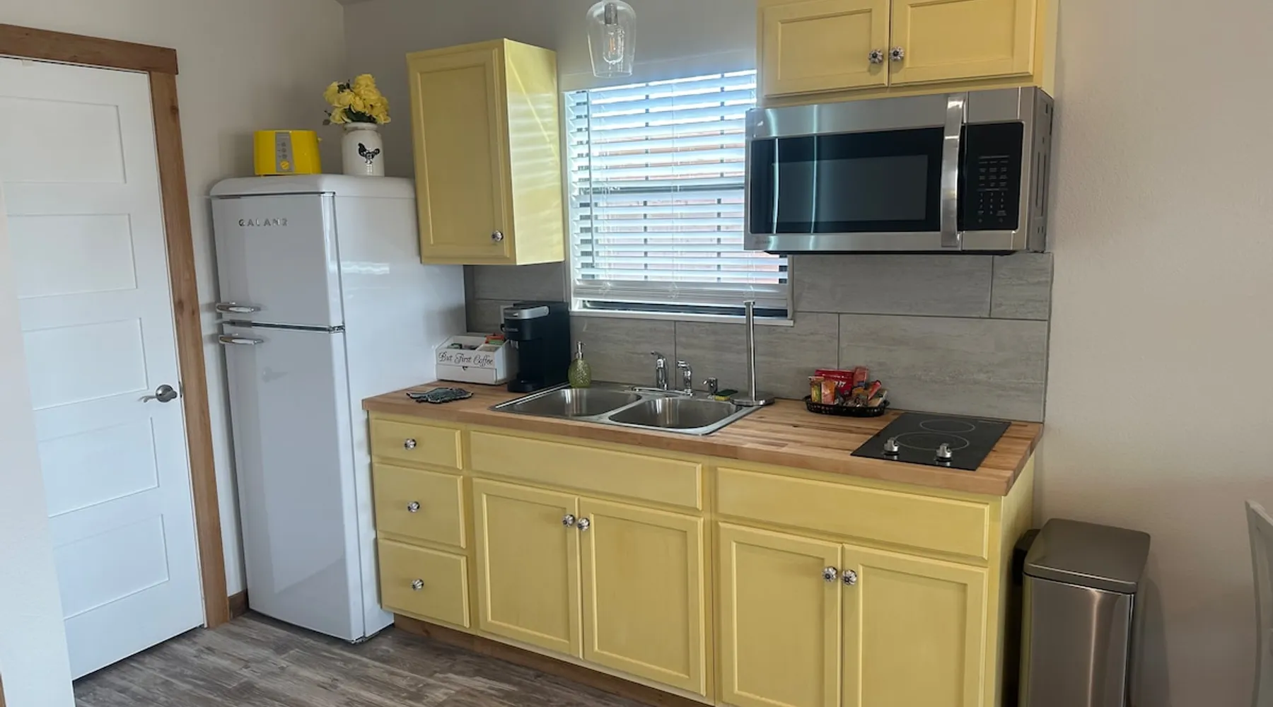 The Cabin of Love Yellow Rose at Silver Dollar Winery Hill Country. Enjoy wine and our Italian Bistro with artisan pizzas and Italian food with over 20 wines sweet to dry. Located on Highway 290. Cabin new release as of August 31 2023. Gorgeous views sunset and sunrise located next to 80+ wineries and distilleries near Fredericksburg and Hye Tx. Custom cabin with king size Serta mattress with deluxe pillows soft and firm. Microwave and kitchenette. currently no breakfast is provided. Guest access Private cabin with parking next to cabin for one car