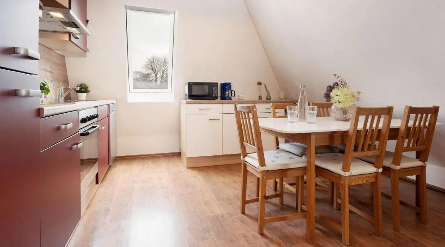Comfortable Living Space: Achter de Höf 7 Sonnenschein II in Staberdorf offers a two-bedroom apartment with a balcony and terrace. The ground-floor unit includes a kitchenette, dishwasher, and washing machine. Outdoor Amenities: Guests can enjoy a garden and terrace with outdoor seating. Free WiFi is available in public areas, ensuring connectivity during the stay. Convenient Facilities: The apartment features a sofa bed, TV, and free on-site private parking. Additional amenities include a hairdryer, coffee machine, and outdoor furniture. Nearby Attractions: Meeschendorfer Beach is a 14-minute walk away, while High Rope Garden Fehmarn lies 1.1 mi from the property. Lübeck Airport is 62 mi distant. This apartment comes with 2 bedrooms, kitchen, a terrace and 1 bathroom with a hairdryer. Guests will find a stovetop, a refrigerator, a dishwasher and an oven in the well-fitted kitchen. The apartment also includes a barbecue. This apartment has a tea and coffee maker, a wardrobe, a TV and a balcony. The unit has 4 beds.