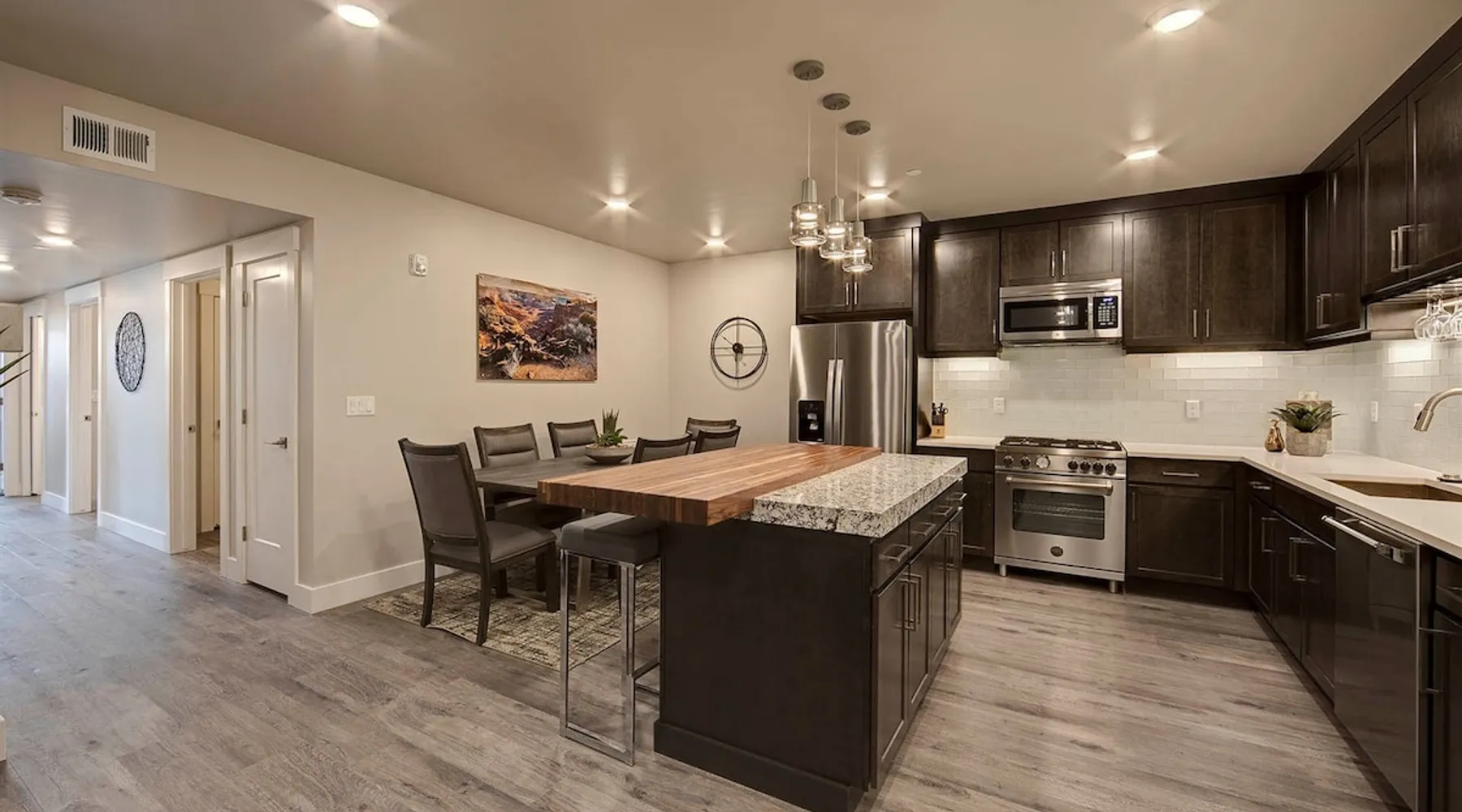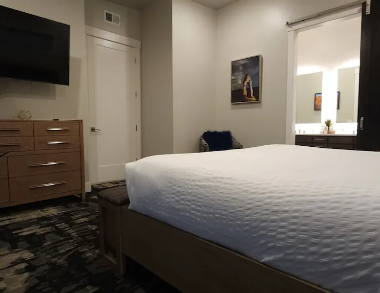 This top floor large Sage Creek unit gives you plenty of space to relax and provides luxury in the desert. It's outfitted to fit the needs of most guests. The unit is clean, comfortable, spacious, practical and includes a washer and dryer. Bring your friends or family to fill the three bedrooms, 2.5 bathrooms or just stay in the romantic master suite with your significant other. Guests love the large pool and hot tub complex with multiple other amenities. 3rd Floor Unit with Elevator. The space This unit is located on the Top Floor (Third Floor) and can be accessed by elevator. * Elevator and stair access 3rd floor * Two balconies off the master and living room Sleeping Arrangements * Bedroom 1 - King Bed - Sleeps 2 * Bedroom 2 - King Bed, Two Twin Beds (Set up as a Bunk Bed) (Sleeps 4) * Bedroom 3 - King Bed (Sleeps 2) * Other: Sofa Sleeper in Living Room (Sleeps 2) * Pack N Play available upon request prior to arrival Sage Creek Resort Amenities: * Two Heated Seasonal Pools - Open Year Round * Two Hot Tubs Open Year Round * Bocce Ball Court * Water Fall Over Hot Tub * Small Water Fall Connecting Pools * Fire Pit Area (Gas) * Pavilion with Grills Tables and Seating * Grills in Common Area * Lounge Area Overlooking the Pools * Lounge seating around Pools * Men and Women Bathrooms * Outdoor Showers for rinsing off Nearby Attractions: * Arches National Park: 15-minute drive * Canyonlands National Park: about 40-minute drive * Slickrock Bike Trail: about 15-minute drive * Hell's Revenge Safari Route: less than 15-minute drive * Sand Flats Recreation Area: less than 15-minute drive * Dead Horse Point State Park: about 45-minute drive Other Information: *Check-out is at 10:30AM. All late checkouts must be authorized. $90 fee for unauthorized late checkouts. ** Like a hotel, sage creek has various unit types with multiple identical units. Therefore photos in this listing are of the unit type you will be booking along with all the amenities you can expect. In your check-in instructions email you will be assigned your specific unit. If you have questions about this please message us.