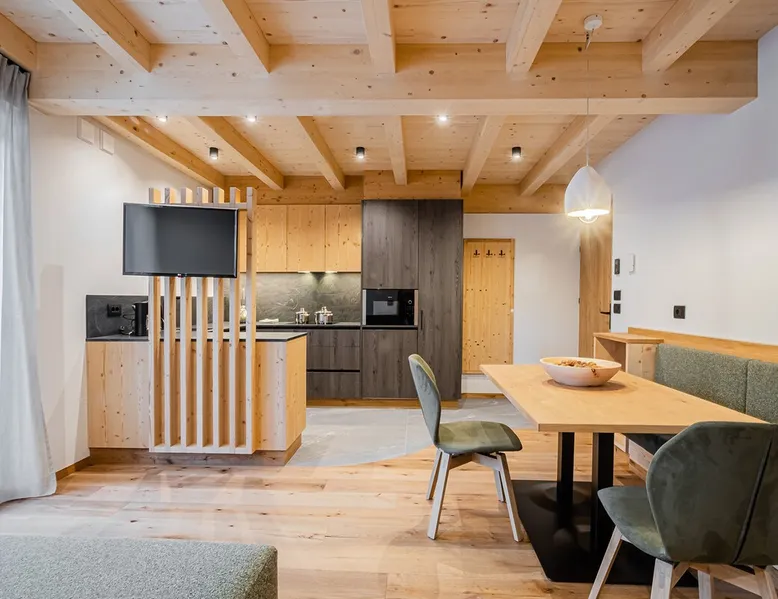 The holiday apartment "Biohof Ruances Pastüra" is located in San Cassiano and boasts an exciting Alpine view. This stylish and cozy 40 m² property consists of a living room with a sofa bed for one person, a well-equipped kitchen, 1 bedroom ,and 1 bathroom, and can accommodate 3 people. Among the on-site amenities are high-speed Wi-Fi (suitable for video calls), a dishwasher, and a TV. A baby cot can be provided for a fee. Other things to note A washing machine, a dryer, and an iron are found in the laundry room and can be accessed upon request. There is also an on-site playroom for children stocked with toys and books. This apartment features a private balcony. Public transport links are located within walking distance. A parking space is available on the property and a parking space is available in a garage. The property has motorbike, bicycle, and ski storage. Families with children are welcome. Pets, smoking, and celebrating events are not allowed. The property has a step-free interior. An electric vehicle charging station is available. A wholesome regional breakfast buffet with homemade products is available in the dining room (for a fee). The property offers homemade/homegrown produce. This property has guidelines to help guests with the correct separation of waste. More information is provided on site. This property has light and water-saving features. The electricity at this property is partly generated by photovoltaic panels. - Baby bed payment 10EUR per person per night - Breakfast payment 15EUR per person per night Registration Details IT021006B5SZOD58BN