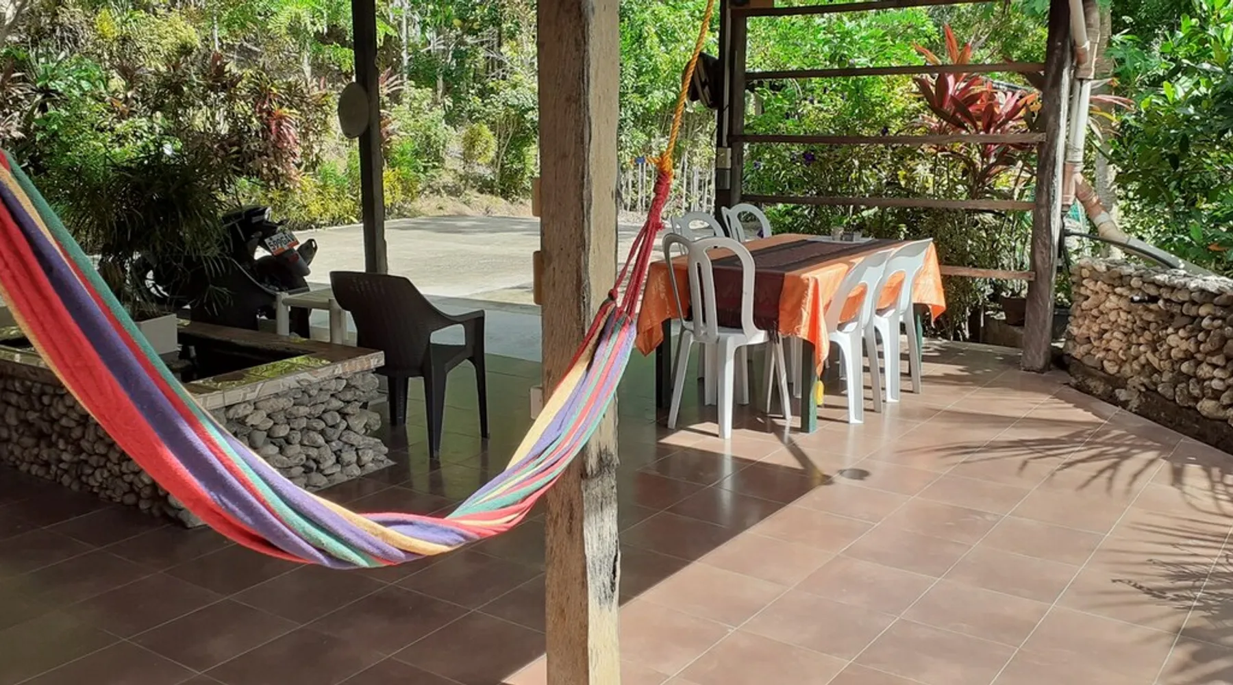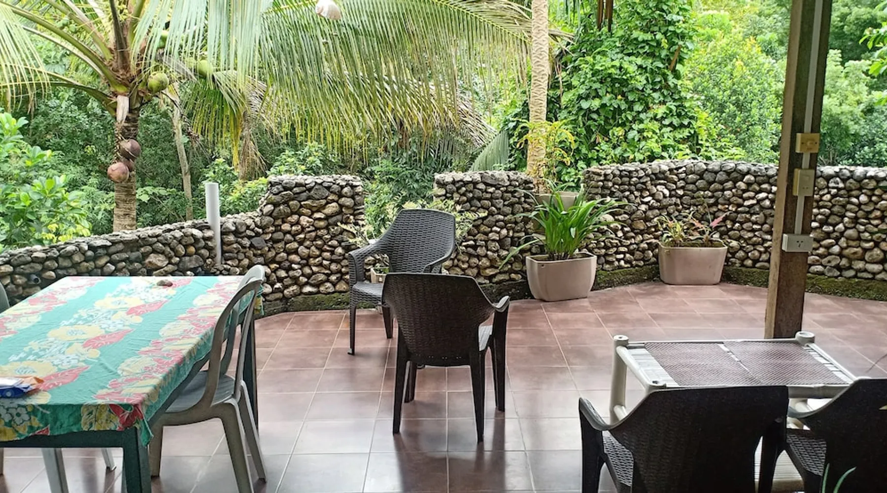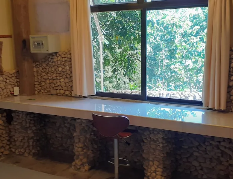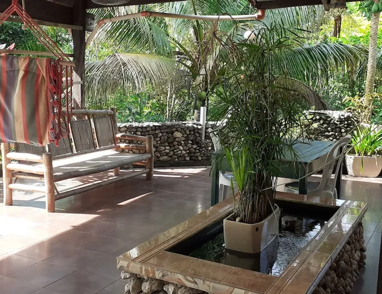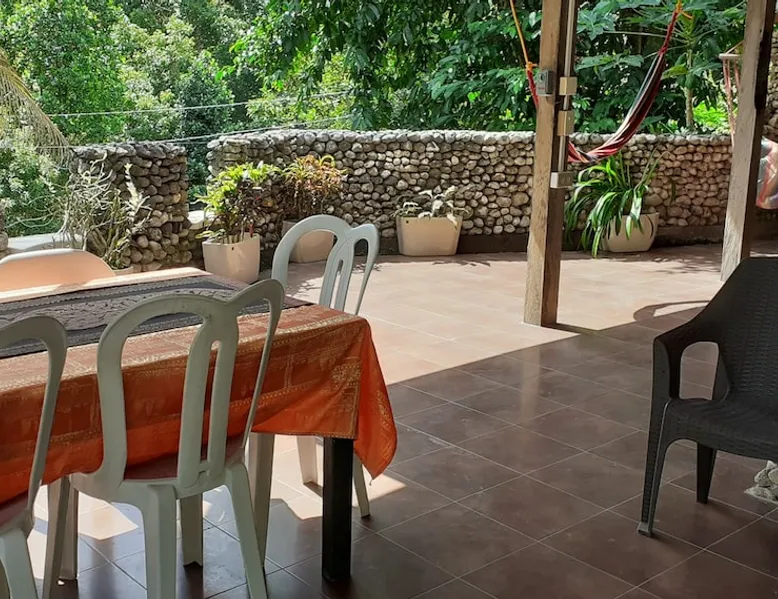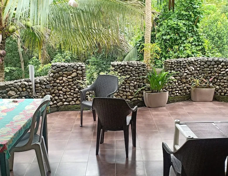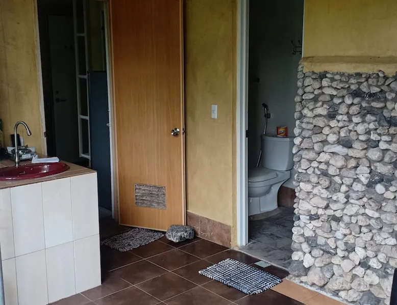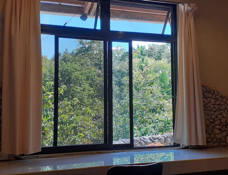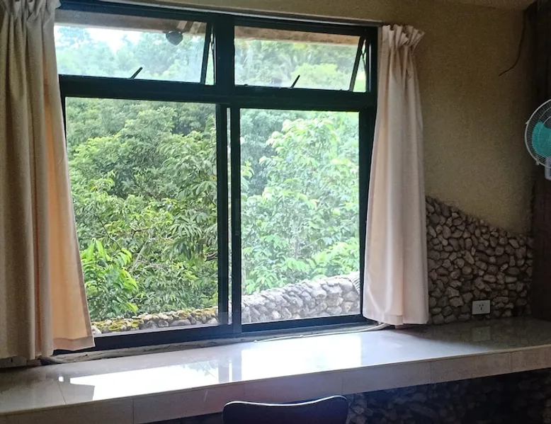 A unique peaceful spot with a cooler clean fresh air space, fan rooms, family safe, 2 double bedrooms, private lounge, kitchen with refrigerator freezer, 3 burner cooker, unlimited filtered drinking water. Covered parking. Up to 2 Children under 10 years stay FREE. We can give travel advice. Elevated, cool peaceful mountain area above the hot spring. You may self cater, order pizza delivered or I supply you with a comprehensive menu. The space Spacious areas, sleeps 4 in two double bedrooms. Two bathrooms with hot shower. Child safe outside area. We charge for use of laundry machine or we can do your laundry. Please contact me anytime when here. For your safety and comfort we have solar backup lighting and LPG hot showers. You may cook outside using one of our portable gas cookers (pay butane.) We hire motorbikes. Hot Spring must be booked, it is not managed by me. Questions welcome, please ask and we reply as soon as possible. Guest access Large deck space and covered car park and covered motorcycle parks. Roadways lite at night, many walking spaces. Feel free to move about.. we have walkways all over these mountains. FOR LONG STAY it's a peaceful, undisturbed base, inexpensive, includes optional self catering, in a cooler tropical climate away from most Typhoons. Facilities include great Internet (Starlink + Local connection shared), big library of novels and reference books plus a massive media library of all tastes. Great place to relax, study, timeout and to explore nature and back country life. Close enough to the sea, tourist, cultural, commercial and community services. We hire out motorbikes, printers and large monitors, big speakers, you know the stuff too big for your bag. Other things to note Our room comes with a fan only, but the natural mountain breeze makes it cool and comfortable for most guests. Questions welcome, we try to answer quickly. Thank you.