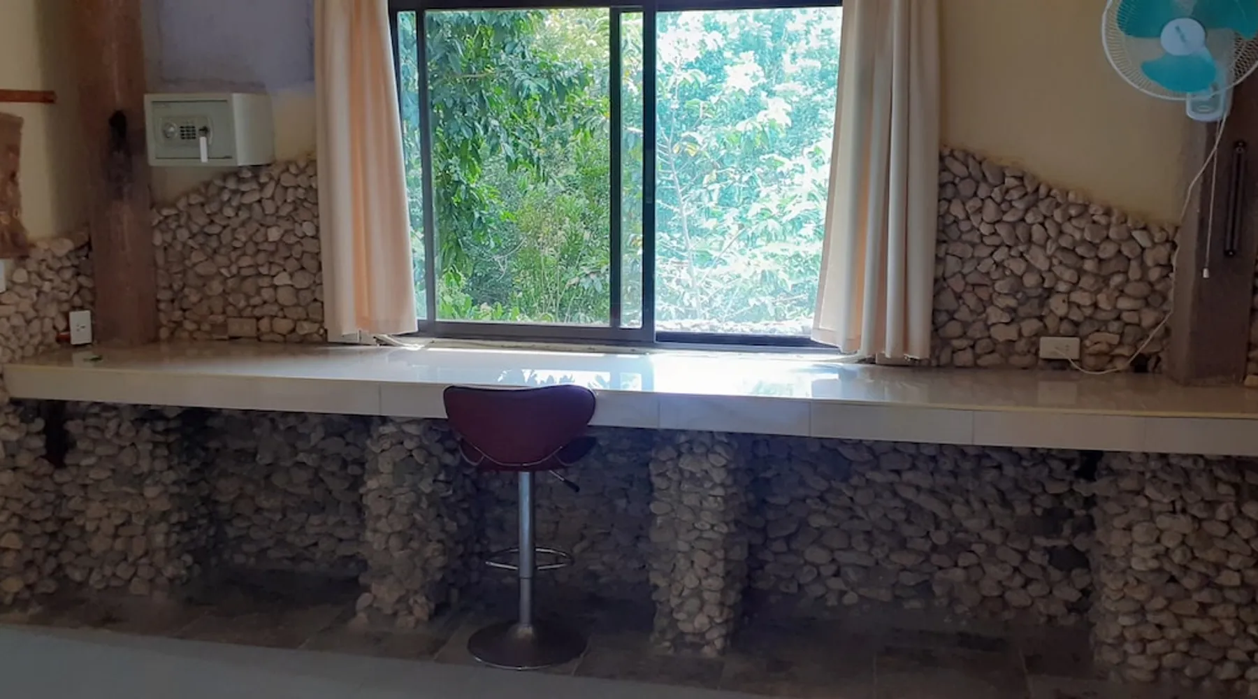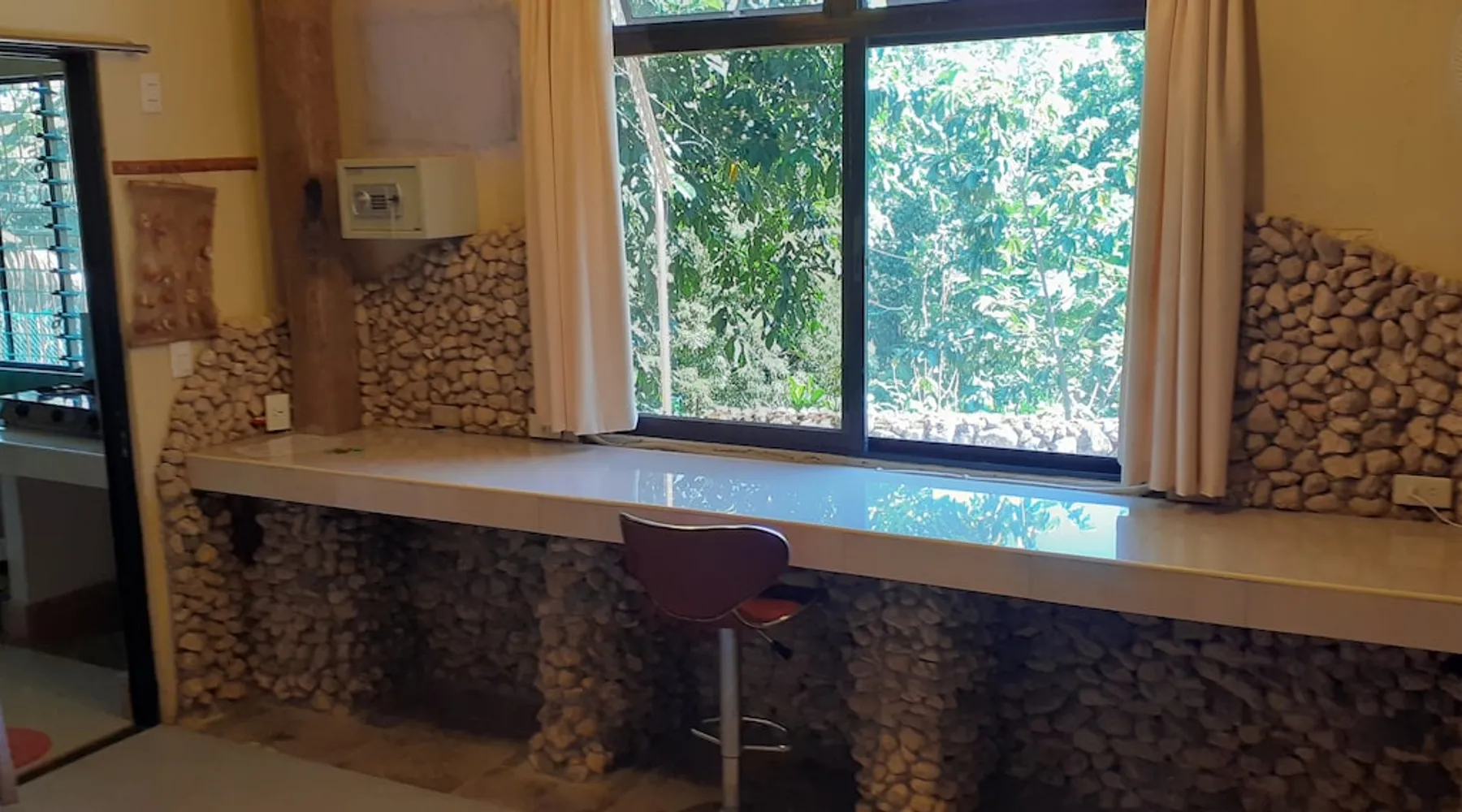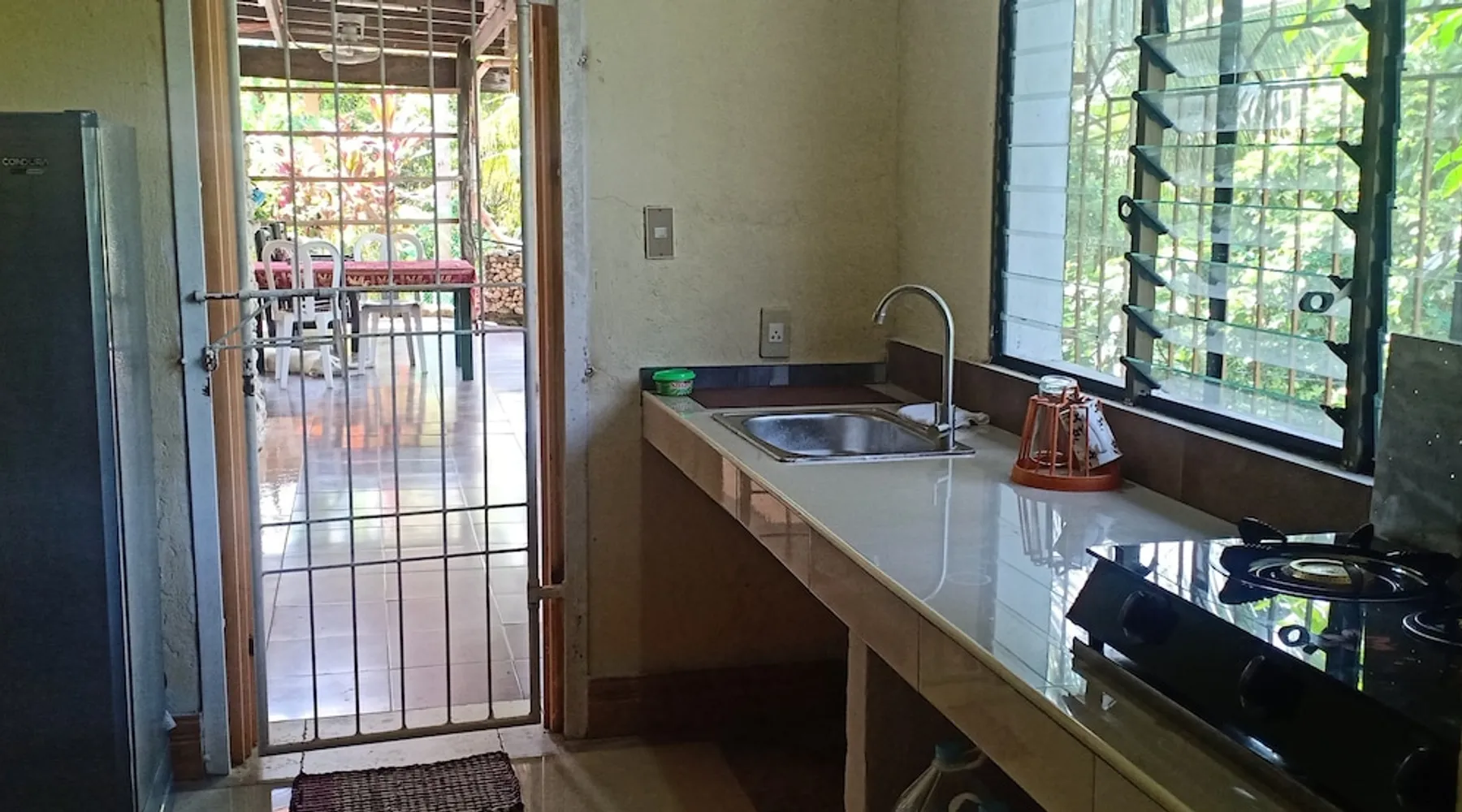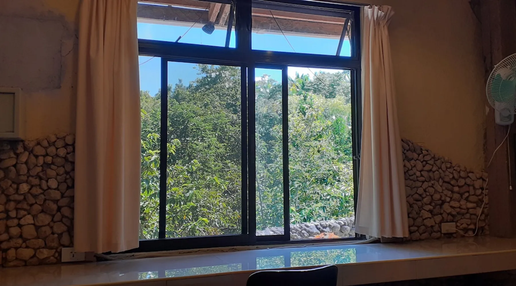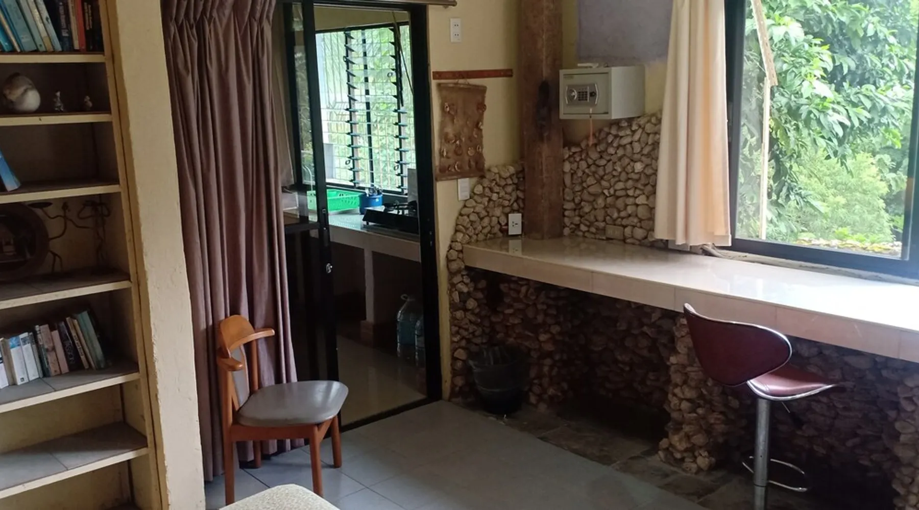 A unique peaceful spot with a cooler clean fresh air space, fan rooms, family safe, 2 double bedrooms, private lounge, kitchen with refrigerator freezer, 3 burner cooker, unlimited filtered drinking water. Covered parking. Up to 2 Children under 10 years stay FREE. We can give travel advice. Elevated, cool peaceful mountain area above the hot spring. You may self cater, order pizza delivered or I supply you with a comprehensive menu. The space Spacious areas, sleeps 4 in two double bedrooms. Two bathrooms with hot shower. Child safe outside area. We charge for use of laundry machine or we can do your laundry. Please contact me anytime when here. For your safety and comfort we have solar backup lighting and LPG hot showers. You may cook outside using one of our portable gas cookers (pay butane.) We hire motorbikes. Hot Spring must be booked, it is not managed by me. Questions welcome, please ask and we reply as soon as possible. Guest access Large deck space and covered car park and covered motorcycle parks. Roadways lite at night, many walking spaces. Feel free to move about.. we have walkways all over these mountains. FOR LONG STAY it's a peaceful, undisturbed base, inexpensive, includes optional self catering, in a cooler tropical climate away from most Typhoons. Facilities include great Internet (Starlink + Local connection shared), big library of novels and reference books plus a massive media library of all tastes. Great place to relax, study, timeout and to explore nature and back country life. Close enough to the sea, tourist, cultural, commercial and community services. We hire out motorbikes, printers and large monitors, big speakers, you know the stuff too big for your bag. Other things to note Our room comes with a fan only, but the natural mountain breeze makes it cool and comfortable for most guests. Questions welcome, we try to answer quickly. Thank you.