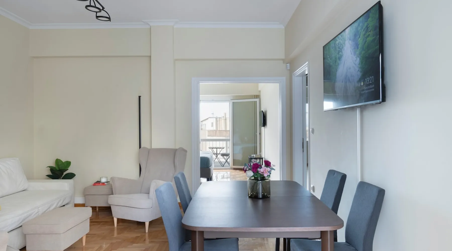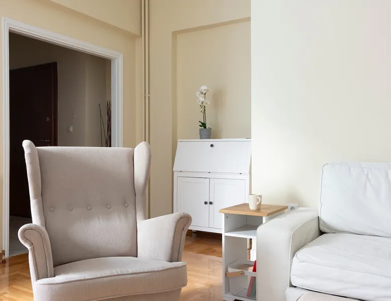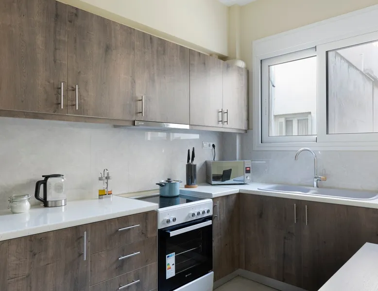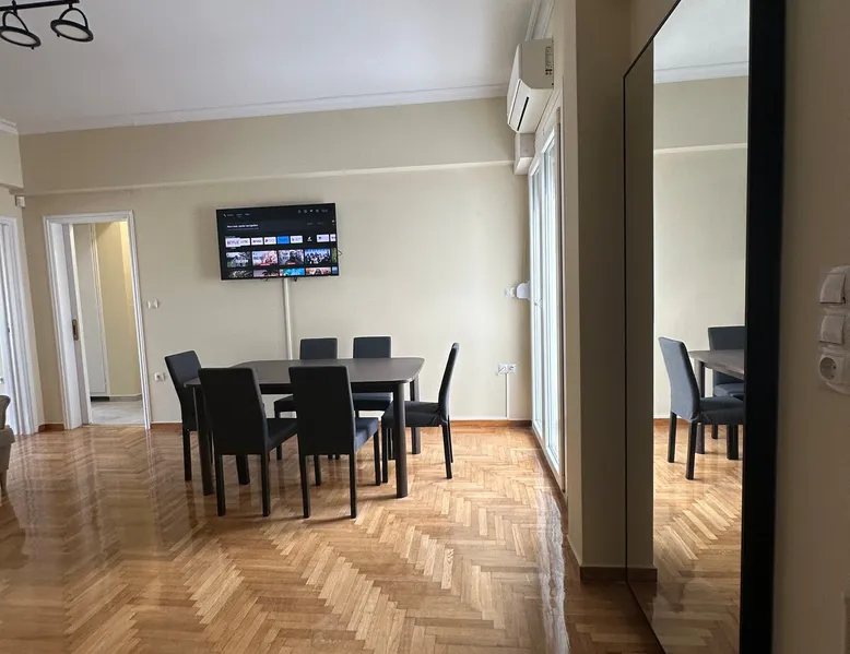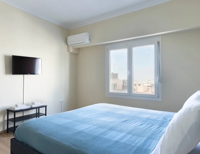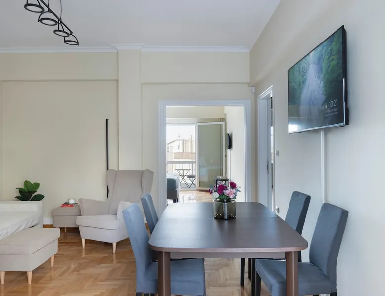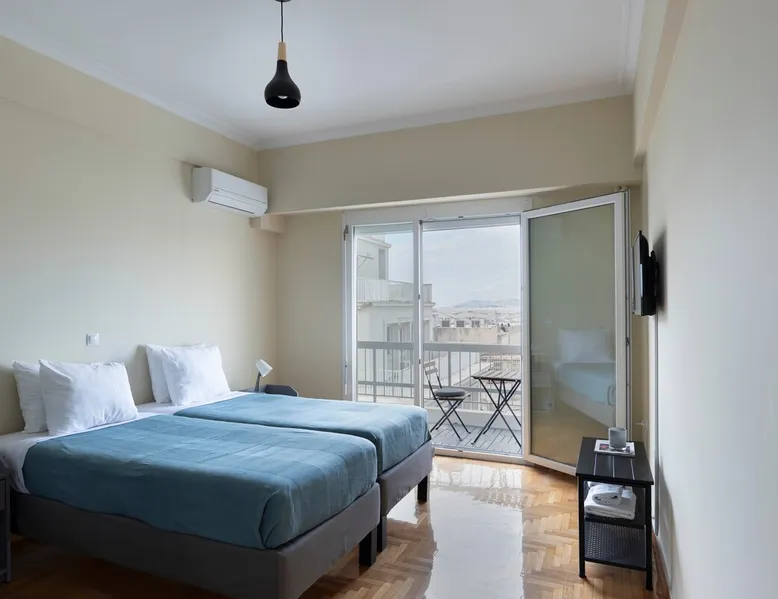 Located right in the heart of central Athens, perched on the 6th floor is this delightful 2 BR apartment ideal for the entire family or group. Boasting 2 large BRs, 1.5 bathrooms, large living/dining and kitchen areas, plus all necessary amenities, you will have everything you need. On a side street of Athens' iconic Ermou pedestrian street + steps away from the Acropolis & Plaka, it is truly in the middle of it all. The house also boasts 2 balconies, a washing machine and AC/TV in every bedroom The space - 2 Large Bedrooms - Dining/Living Room (with pull-out 2-person full bed) - 1 Full bathroom + 1 W.C. - 2 Balconies with seating - Full kitchen with stove, oven, refrigerator, microwave, toaster - Smart TVs in every room - Wi-Fi - Espresso Machine - Water Kettle Registration Details 00002322921