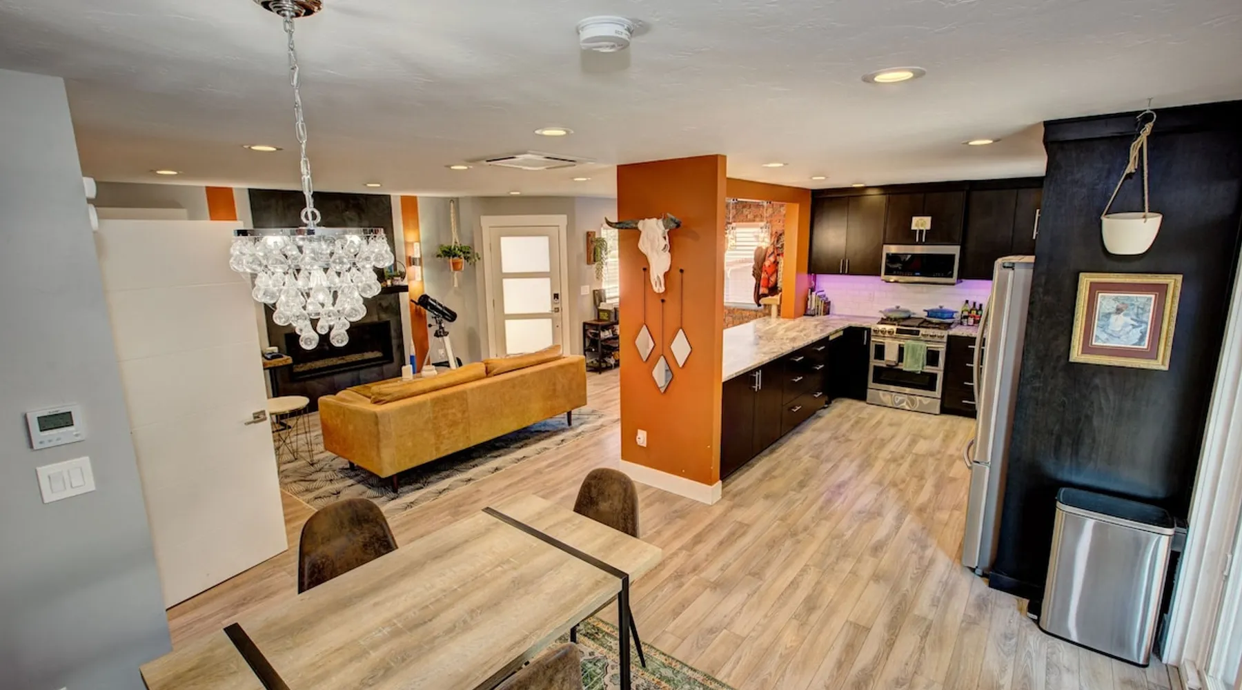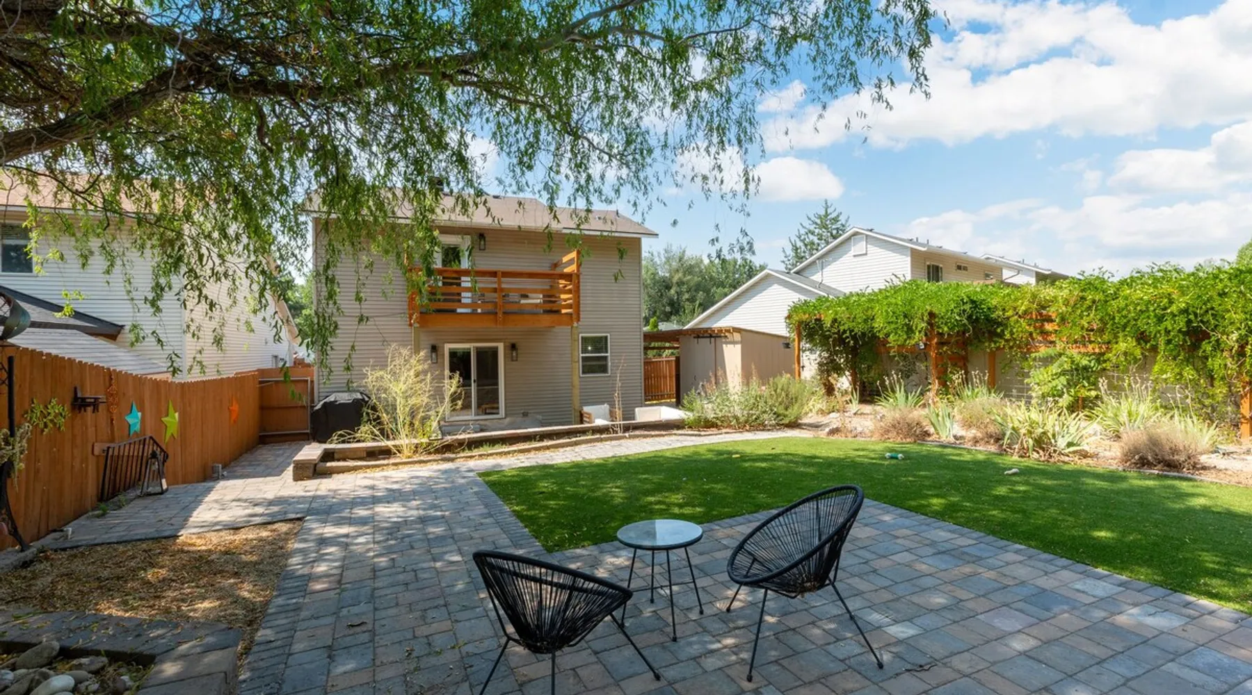 Kick off your boots in this charmingly remodeled 3-bedroom home modernized with a local vibe in the heart of Garden City, Idaho! Complete with a hot tub and expansive manicured back yard that opens up the Boise Greenbelt, you will not find a more ideal location to explore Boise from. Nestled in a delightful neighborhood, this serene retreat offers the perfect blend of style and luxury for your vacation getaway. The space Step inside this modern and spacious home with an inviting open floor plan that seamlessly connects living spaces, creating a harmonious environment for relaxation and socializing, The living area boasts a cozy atmosphere, complete with plush seating and a smart TV for your entertainment needs. The kitchen island, which seats four, is adored by crystal lighting casting a warm and inviting glow throughout the home. The modern kitchen with stainless steal appliances are ready to assist you in whipping up culinary delights, and the adjacent dining space is perfect for sharing meals and creating lasting memories. Indulge in relaxation in the backyard oasis, where you'll find a private outdoor patio area complete with hot tub. Lounge on comfortable outdoor furniture while savoring your morning coffee or relishing a mouthwatering barbecue grilled to perfection on the provided grill. The hot tub beckons, offering a soothing soak under the vast Idaho sky, a true luxury under both the sun and stars. For those who seek a little outdoor adventure, the fully fenced yard offers both privacy and security for you and your pets, who are welcome, with a convenient gate that opens up to the Boise greenbelt. Nature enthusiasts will appreciate the immediate access to serene walking paths, picturesque views and access to the Boise River. This unique home offers three thoughtfully designed bedrooms, each providing a comfortable haven for restful nights. The master bedroom exudes elegance and comfort, with a private furnished balcony that overlooks the Boise Greenbelt while the second bedroom offers a welcoming retreat. The third bedroom has been creatively transformed into a versatile office space, complete with a queen-size pull-out couch for additional sleeping arrangements. Conveniently located near Garden City's attractions and only a short drive away from downtown Boise, you'll have easy access to shopping, dining, and entertainment options. Whether you're seeking relaxation or adventure, this 3-bedroom home is the perfect choice for your Garden City, Idaho experience. Book now and create memories that will last a lifetime! Early check-in, Late check-out? We got your covered. Both of these services are available upon request through your guest portal you will receive at booking. Customized Amenities: We have many to choose from including a wine and cheese package, girls getaway weekend, cruiser bike rentals, pack n play rental and much, much more. Go to your guest portal upon booking and explore all the personalized and customized packages you can include with your stay with us. Guest access Guests have access to the entire home