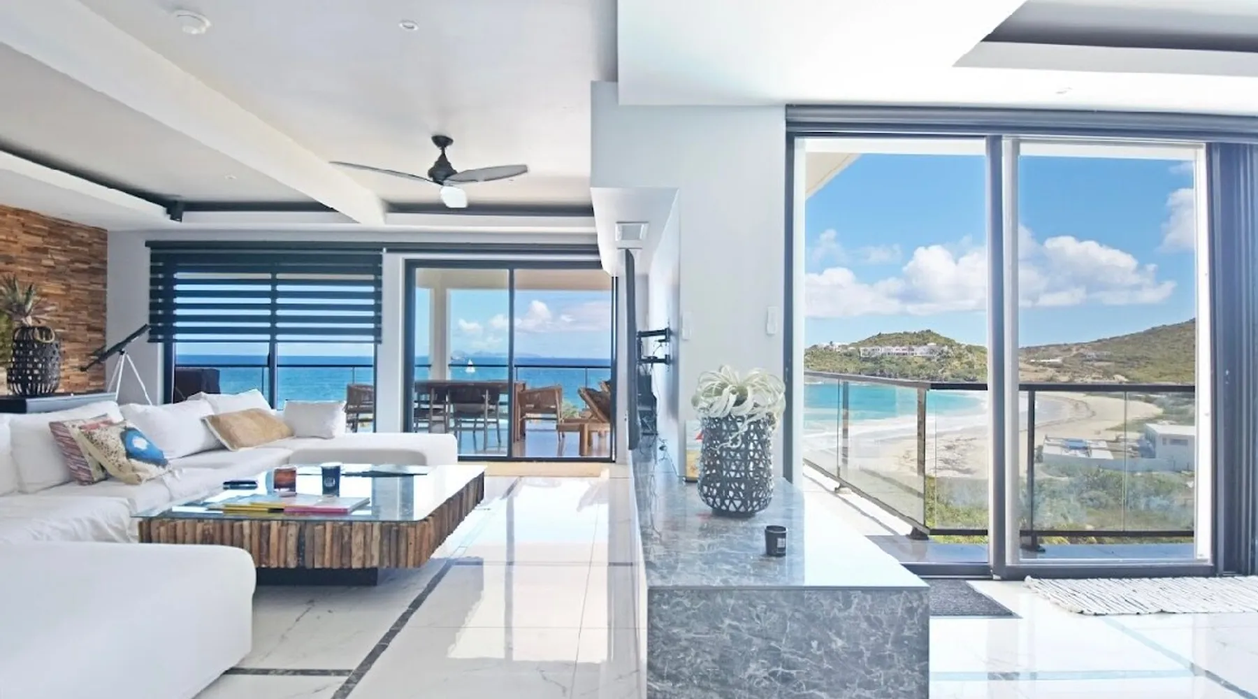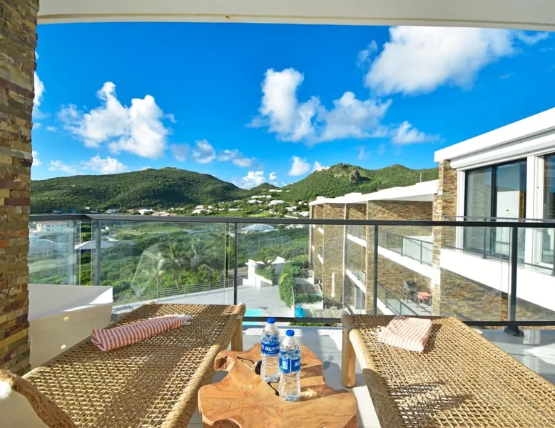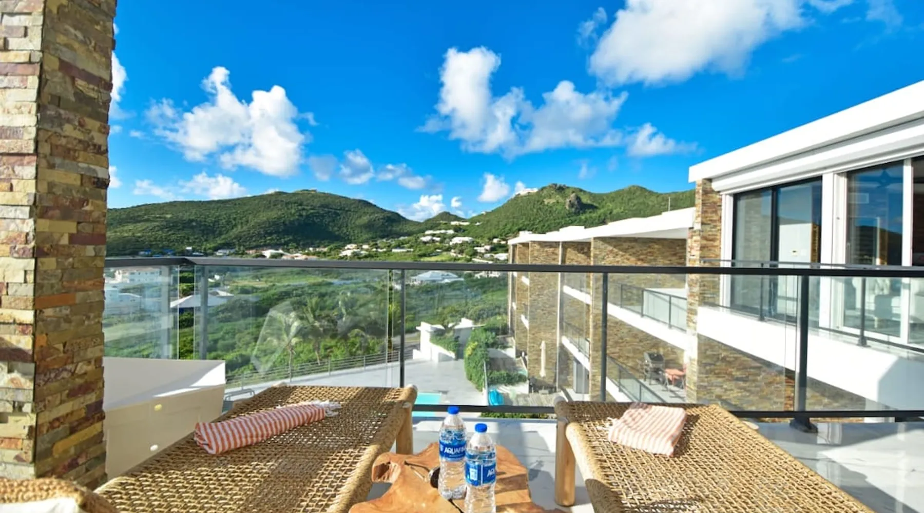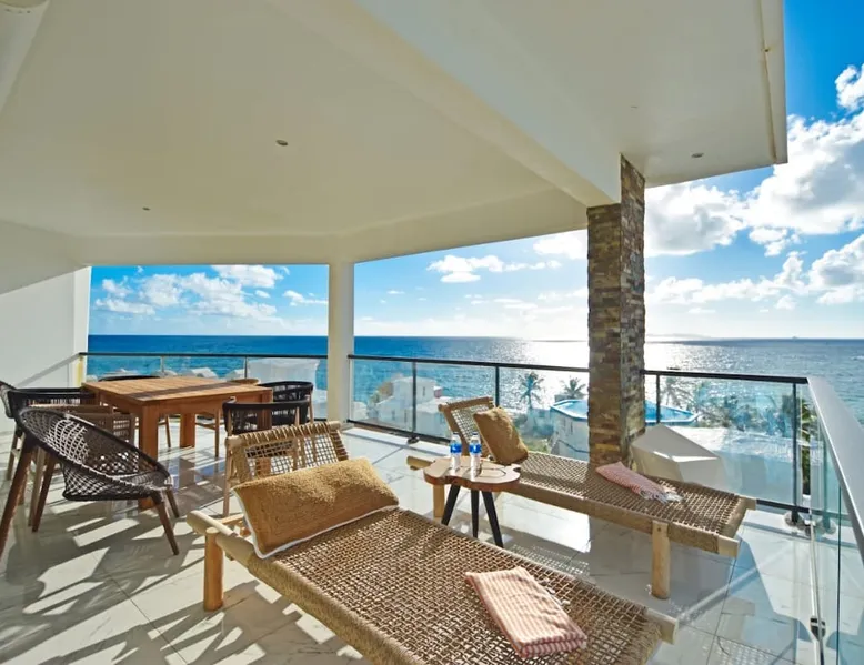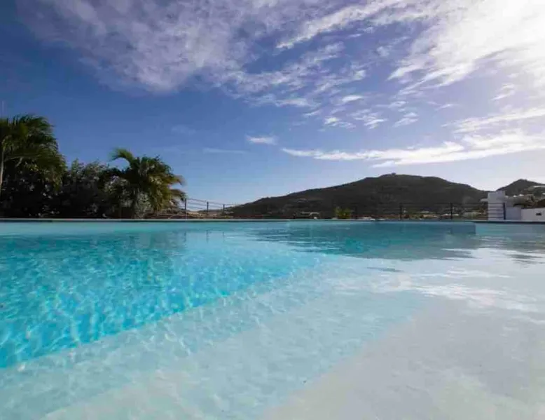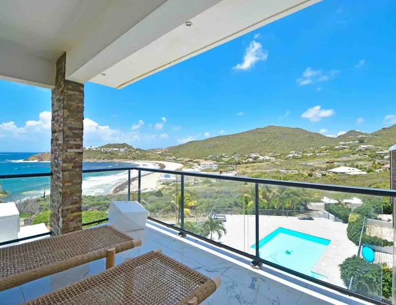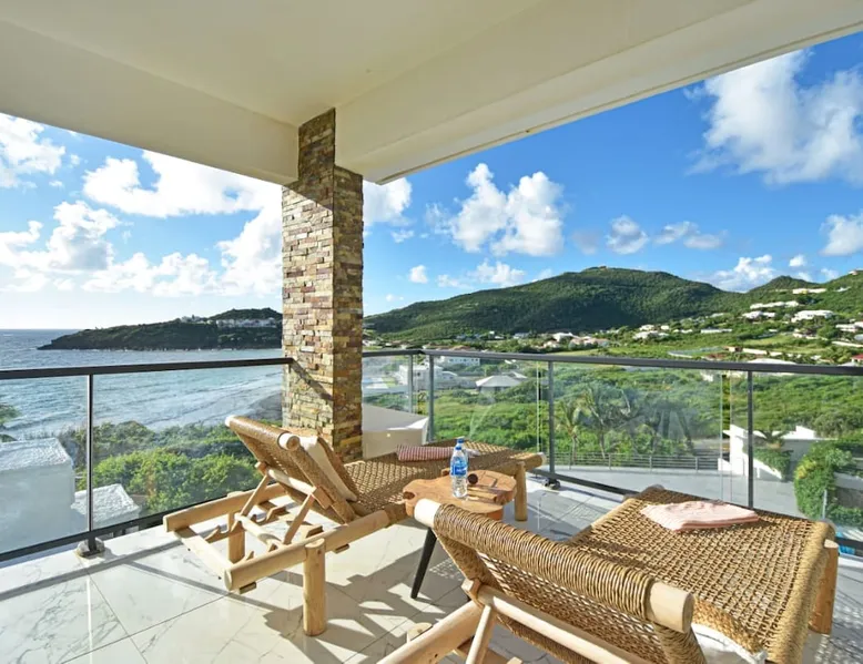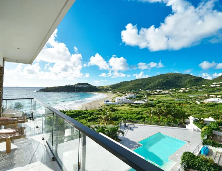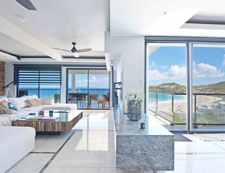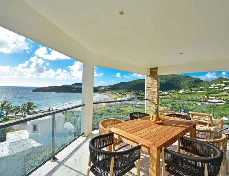Villa La Vista, a luxurious penthouse perched on a palm-lined hillside in Sint Maarten’s Guana Bay. Just steps from the breathtaking famous Guana Bay Beach. Go relax on the beach and play in the waves as you take in breathtaking views of the Atlantic Ocean and St. Barths. This Penthouse features 4 elegant bedrooms, 4.5 spa-inspired bathrooms, a shared private pool, and an expansive sun terrace. 3 minutes away from the famous philipsburg boardwalk for luxury shopping and curated restaurants. The space Superior design, modern layout, and cutting-edge decor choices define this premier Penthouse in Sint Maarten’s Guana Bay . Set on a palm tree hillside overlooking the beautiful crystal clear Atlantic Ocean , the home offers huge living spaces, gorgeous pool deck , and a spacious sun terrace. No expense has been spared with this property, with golden beaches, bars, cruise outings and Philipsburg town nearby. An exceptional view awaits new arrivals that step into the central living space at Villa La Vista , with a shimmering sea framed by a blue pool, waving palm trees and artful pergola. Guests can expect designer furnishings, ranging from huge dining tables and specially-selected beds . The interior boasts stunning artwork from French artists , A fully equipped state of the art kitchen and loungers out on the terrace . The shining, fully-equipped kitchen ensures that catering for big groups is especially easy. From Villa La Vista , guests are a short drive from picturesque shorelines, including the sandy philipsburg beaches ,Simpson Bay Beach and the famous “close-shave” airport approach at Maho Beach. A huge range of ocean outings are available from within minutes, including speed boat trips, scuba diving in crystalline waters, and relaxing yacht and catamaran trips. Visit local rum distilleries for a taste of the island’s unique culture, or take to the countryside on an exhilarating ATV outing. After strolling the colonial Dutch streets of the local town, retire to your private terrace for a cool drink and a glorious sunset WHERE YOU CAN OVERLOOK THE BEAUTIFUL RIVERA OF ST.BARTHS!! Guest access Guests will have exclusive access to the penthouse, including the sun terrace and all indoor living spaces. The condo complex’s private pool is available for guest use, offering a tranquil setting to enjoy the island’s warmth and beauty. Additional amenities include high-speed Wi-Fi, on-site parking, and a fully equipped kitchen. Whether you’re lounging by the pool or exploring the nearby beaches, Villa La Vista offers the perfect mix of privacy and convenience. Other things to note The condo complex features a private pool shared with a small number of other residents, ensuring a peaceful and relaxing atmosphere. While we strive to provide a flawless experience, occasional maintenance may be required to keep the property in perfect condition, and we will notify guests in advance if this occurs. Conveniently located near Sint Maarten’s best beaches, dining, and attractions, Villa La Vista is the ideal home base for your Caribbean getaway. VILLA LA VISTA is FULLY POWERED by a GENERATOR in case of electric outages. Recently the island has had energy shortage problems due to loosing 3 turbines that power the island . The power goes out 1-2 hours daily in most areas . But rest assured you will not be inconvenienced by this at all . The switch to the generator is automatic and seamless.