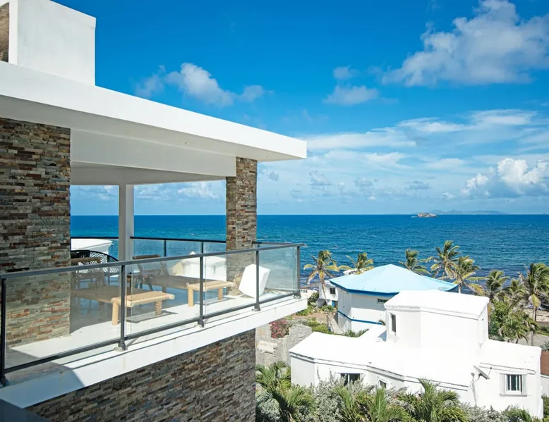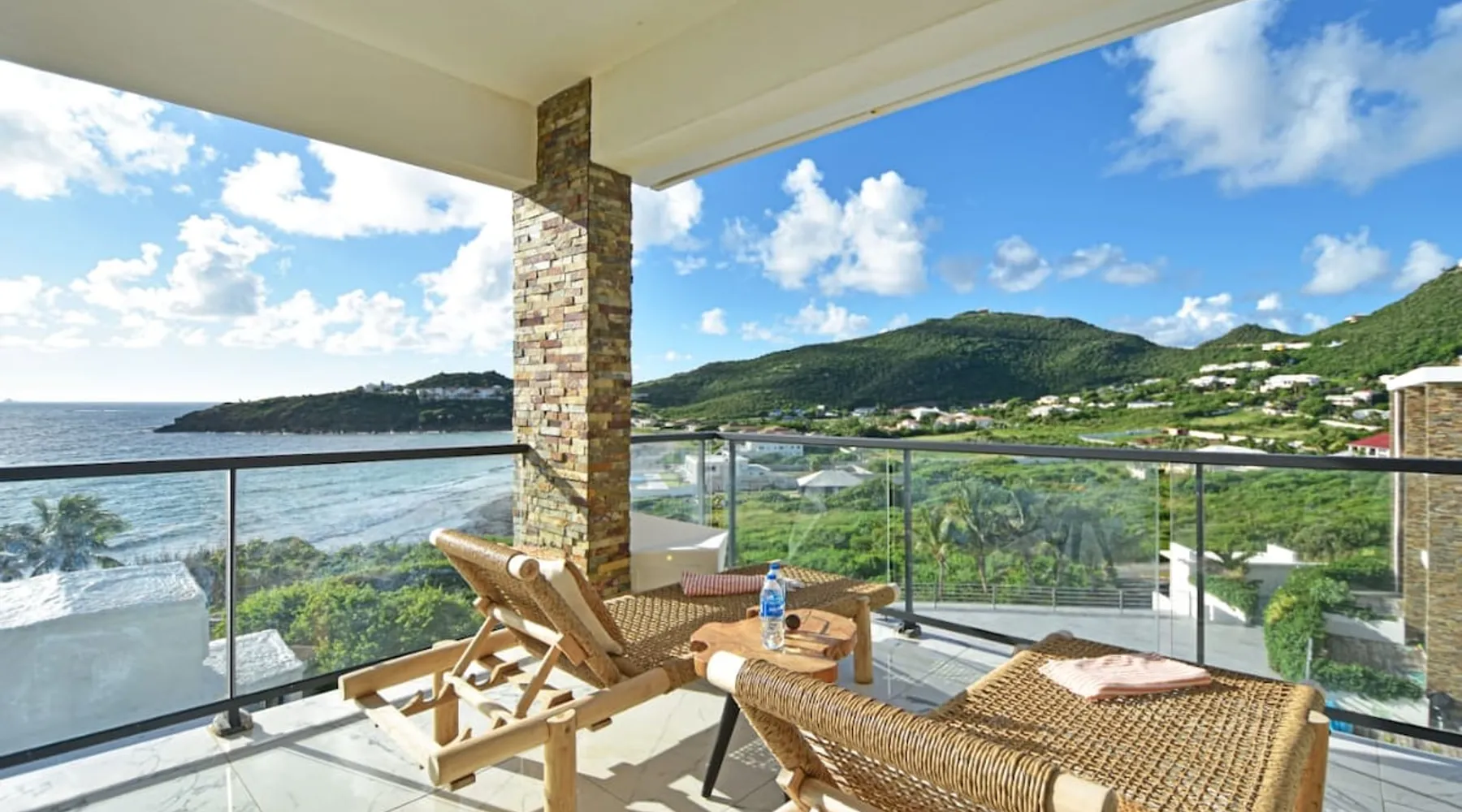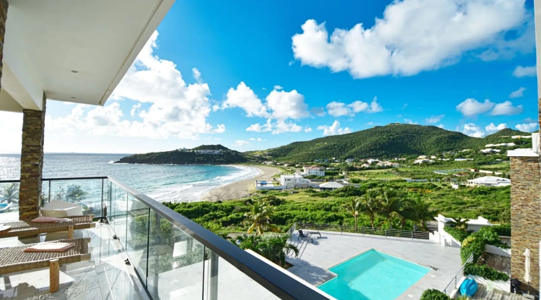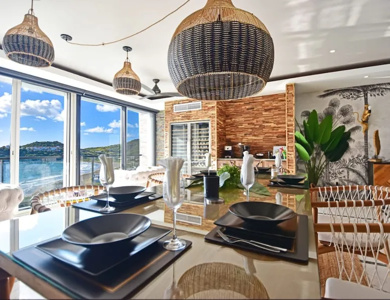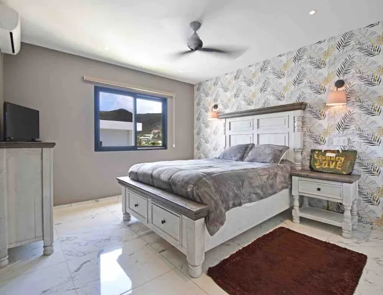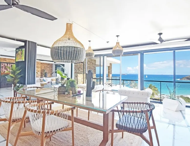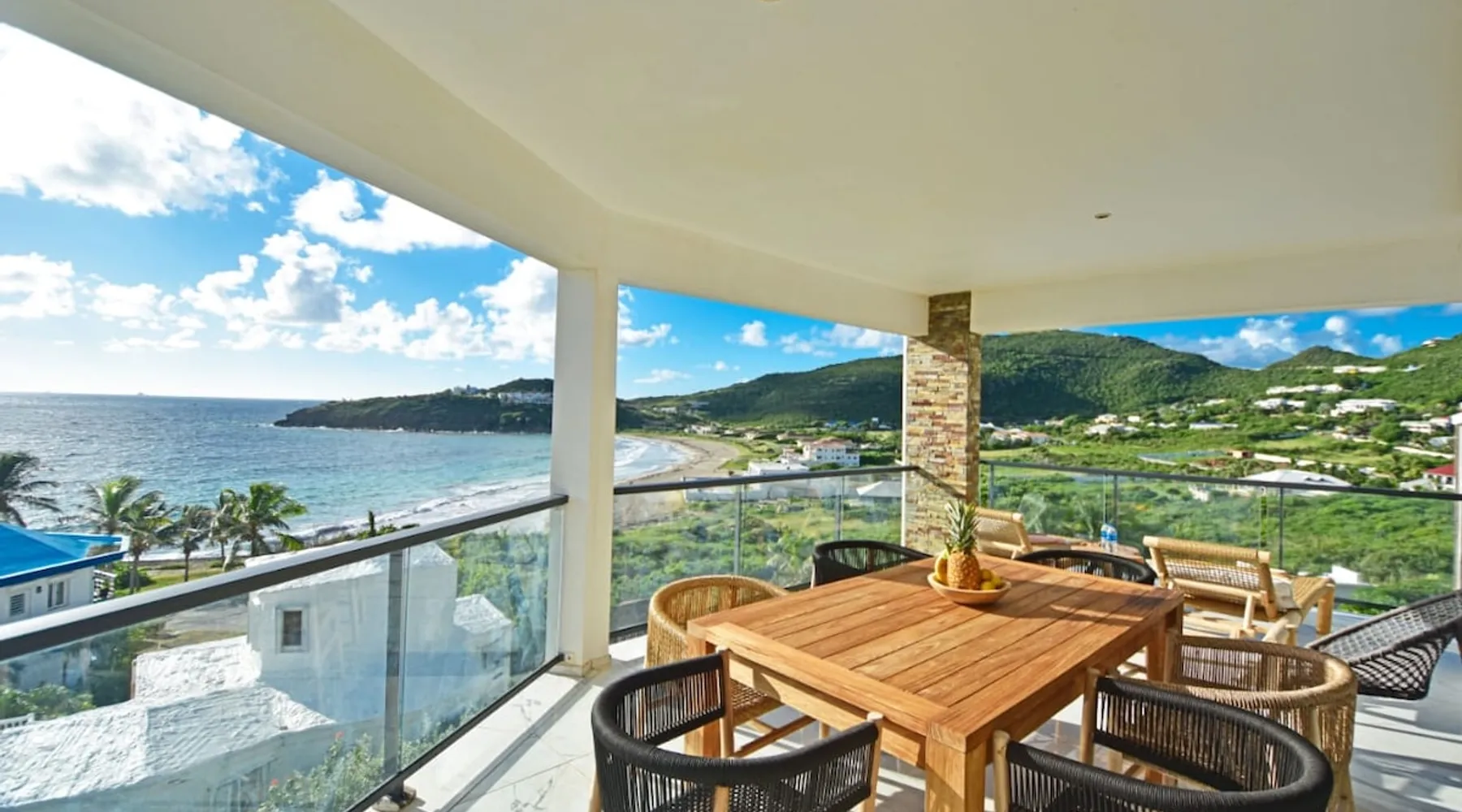 Villa La Vista, a luxurious penthouse perched on a palm-lined hillside in Sint Maarten’s Guana Bay. Just steps from the breathtaking famous Guana Bay Beach. Go relax on the beach and play in the waves as you take in breathtaking views of the Atlantic Ocean and St. Barths. This Penthouse features 4 elegant bedrooms, 4.5 spa-inspired bathrooms, a shared private pool, and an expansive sun terrace. 3 minutes away from the famous philipsburg boardwalk for luxury shopping and curated restaurants. The space Superior design, modern layout, and cutting-edge decor choices define this premier Penthouse in Sint Maarten’s Guana Bay . Set on a palm tree hillside overlooking the beautiful crystal clear Atlantic Ocean , the home offers huge living spaces, gorgeous pool deck , and a spacious sun terrace. No expense has been spared with this property, with golden beaches, bars, cruise outings and Philipsburg town nearby. An exceptional view awaits new arrivals that step into the central living space at Villa La Vista , with a shimmering sea framed by a blue pool, waving palm trees and artful pergola. Guests can expect designer furnishings, ranging from huge dining tables and specially-selected beds . The interior boasts stunning artwork from French artists , A fully equipped state of the art kitchen and loungers out on the terrace . The shining, fully-equipped kitchen ensures that catering for big groups is especially easy. From Villa La Vista , guests are a short drive from picturesque shorelines, including the sandy philipsburg beaches ,Simpson Bay Beach and the famous “close-shave” airport approach at Maho Beach. A huge range of ocean outings are available from within minutes, including speed boat trips, scuba diving in crystalline waters, and relaxing yacht and catamaran trips. Visit local rum distilleries for a taste of the island’s unique culture, or take to the countryside on an exhilarating ATV outing. After strolling the colonial Dutch streets of the local town, retire to your private terrace for a cool drink and a glorious sunset WHERE YOU CAN OVERLOOK THE BEAUTIFUL RIVERA OF ST.BARTHS!! Guest access Guests will have exclusive access to the penthouse, including the sun terrace and all indoor living spaces. The condo complex’s private pool is available for guest use, offering a tranquil setting to enjoy the island’s warmth and beauty. Additional amenities include high-speed Wi-Fi, on-site parking, and a fully equipped kitchen. Whether you’re lounging by the pool or exploring the nearby beaches, Villa La Vista offers the perfect mix of privacy and convenience. Other things to note The condo complex features a private pool shared with a small number of other residents, ensuring a peaceful and relaxing atmosphere. While we strive to provide a flawless experience, occasional maintenance may be required to keep the property in perfect condition, and we will notify guests in advance if this occurs. Conveniently located near Sint Maarten’s best beaches, dining, and attractions, Villa La Vista is the ideal home base for your Caribbean getaway. VILLA LA VISTA is FULLY POWERED by a GENERATOR in case of electric outages. Recently the island has had energy shortage problems due to loosing 3 turbines that power the island . The power goes out 1-2 hours daily in most areas . But rest assured you will not be inconvenienced by this at all . The switch to the generator is automatic and seamless.