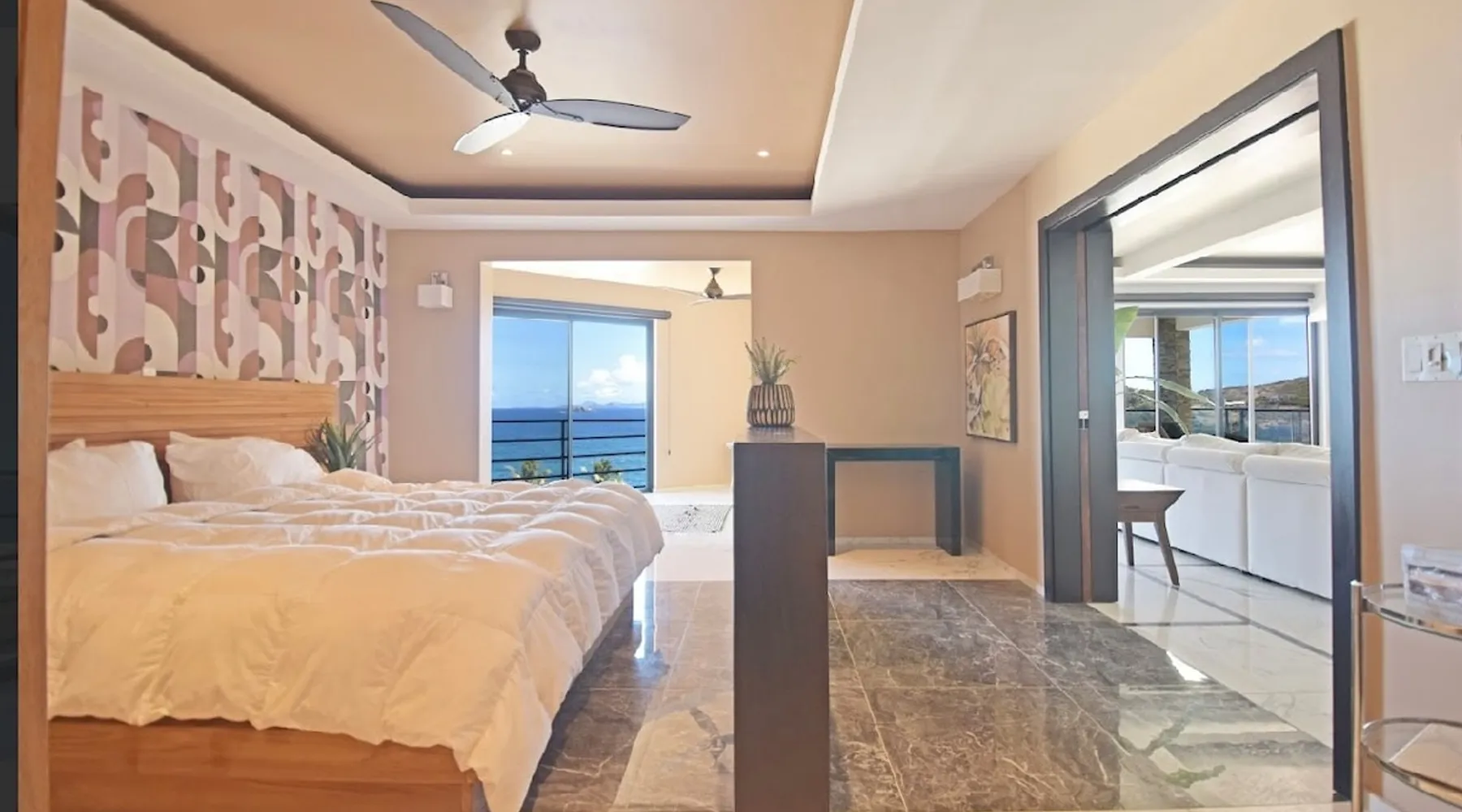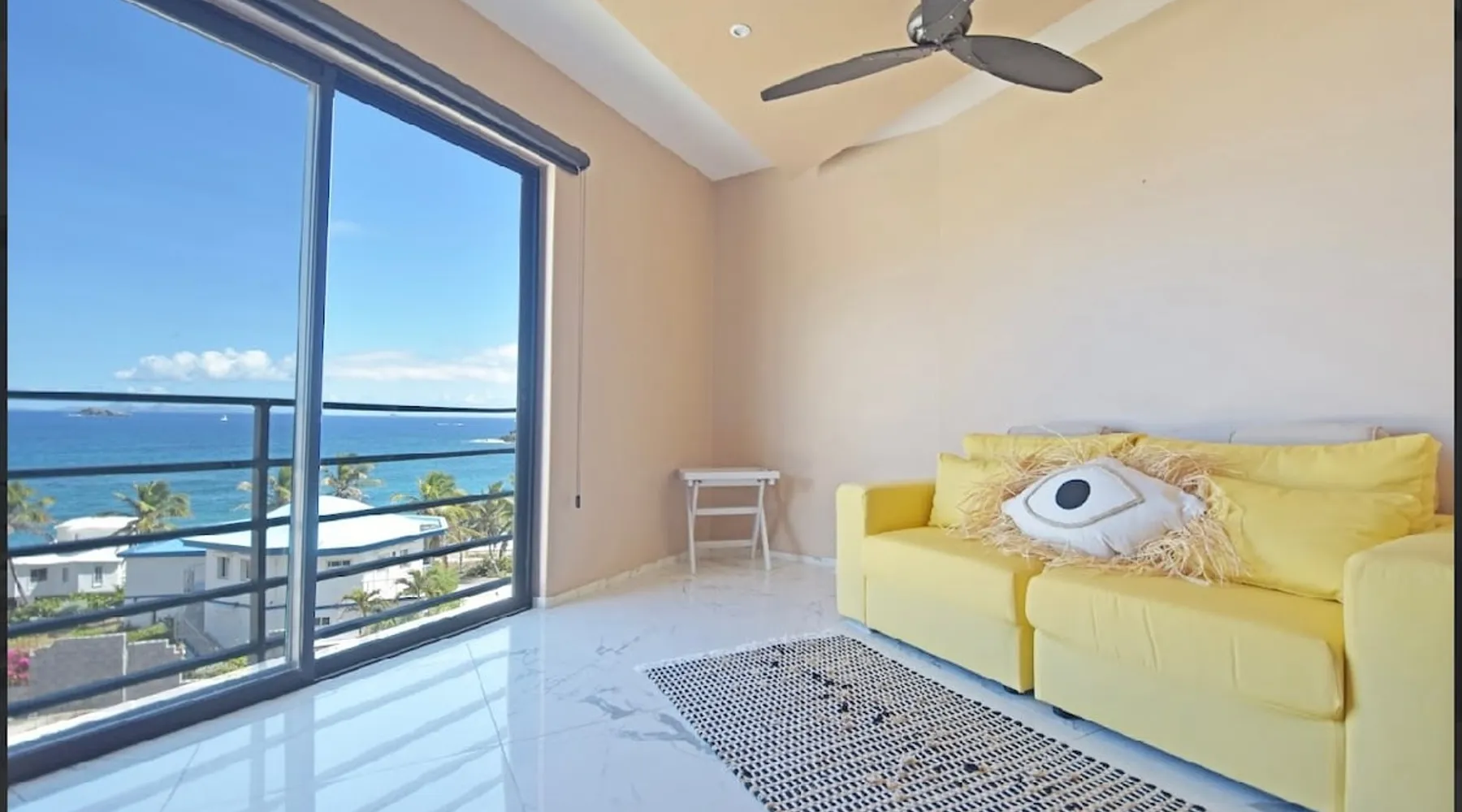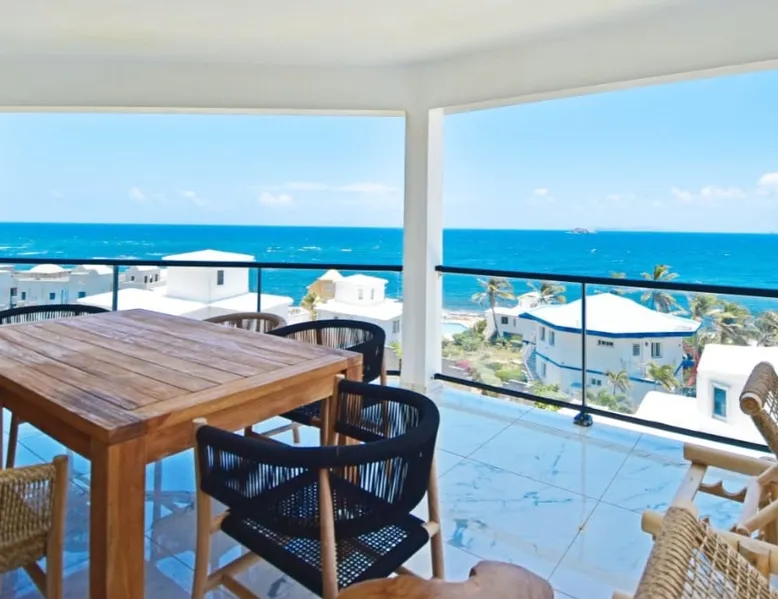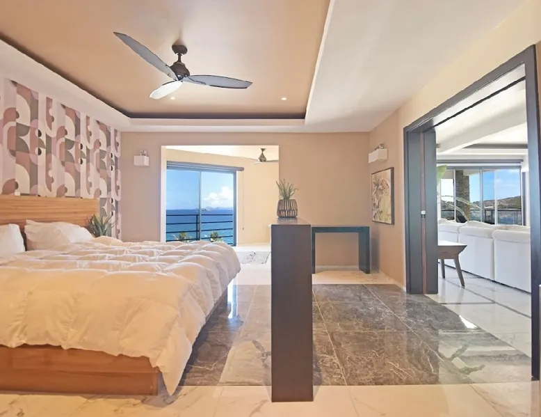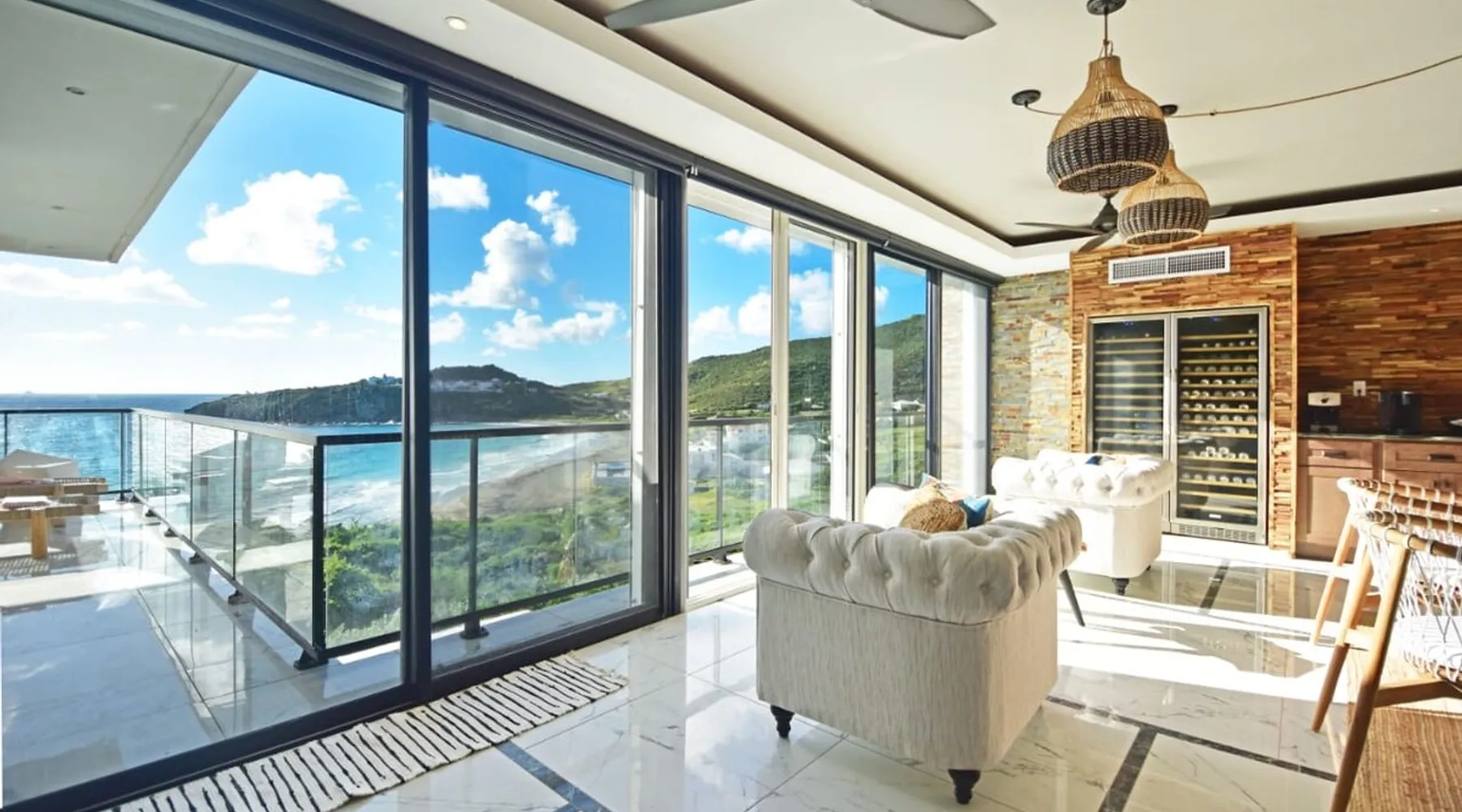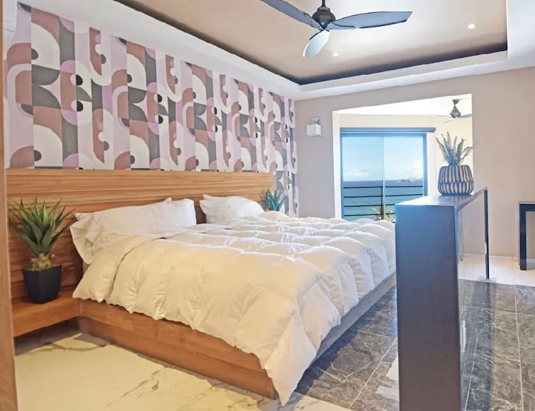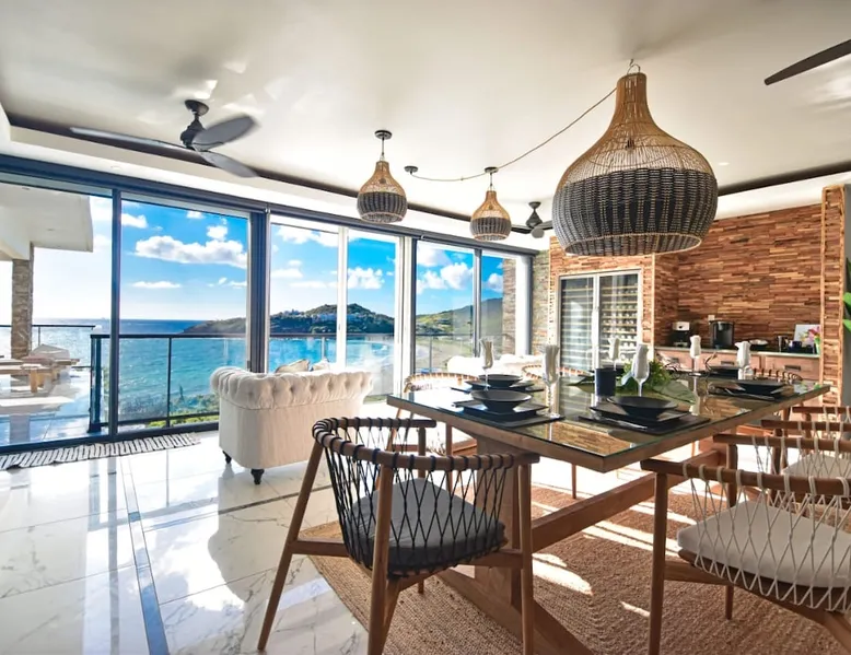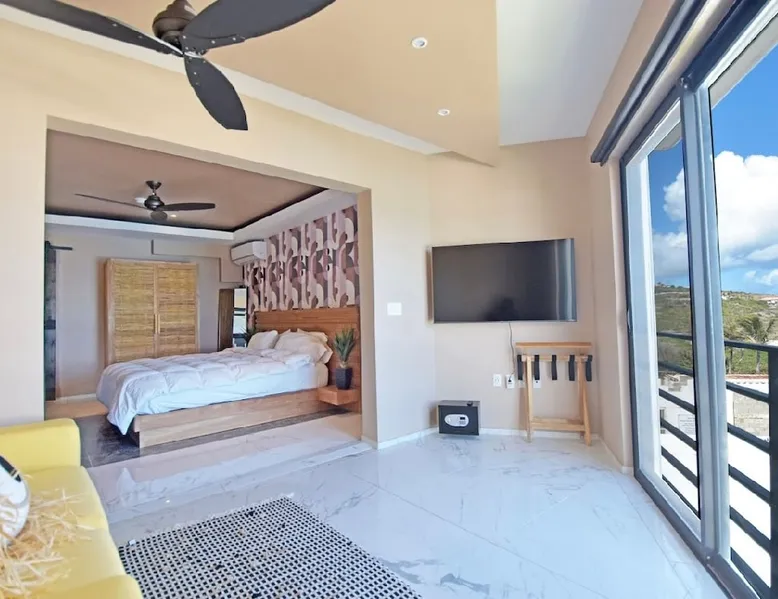 Villa La Vista, a luxurious penthouse perched on a palm-lined hillside in Sint Maarten’s Guana Bay. Just steps from the breathtaking famous Guana Bay Beach. Go relax on the beach and play in the waves as you take in breathtaking views of the Atlantic Ocean and St. Barths. This Penthouse features 4 elegant bedrooms, 4.5 spa-inspired bathrooms, a shared private pool, and an expansive sun terrace. 3 minutes away from the famous philipsburg boardwalk for luxury shopping and curated restaurants. The space Superior design, modern layout, and cutting-edge decor choices define this premier Penthouse in Sint Maarten’s Guana Bay . Set on a palm tree hillside overlooking the beautiful crystal clear Atlantic Ocean , the home offers huge living spaces, gorgeous pool deck , and a spacious sun terrace. No expense has been spared with this property, with golden beaches, bars, cruise outings and Philipsburg town nearby. An exceptional view awaits new arrivals that step into the central living space at Villa La Vista , with a shimmering sea framed by a blue pool, waving palm trees and artful pergola. Guests can expect designer furnishings, ranging from huge dining tables and specially-selected beds . The interior boasts stunning artwork from French artists , A fully equipped state of the art kitchen and loungers out on the terrace . The shining, fully-equipped kitchen ensures that catering for big groups is especially easy. From Villa La Vista , guests are a short drive from picturesque shorelines, including the sandy philipsburg beaches ,Simpson Bay Beach and the famous “close-shave” airport approach at Maho Beach. A huge range of ocean outings are available from within minutes, including speed boat trips, scuba diving in crystalline waters, and relaxing yacht and catamaran trips. Visit local rum distilleries for a taste of the island’s unique culture, or take to the countryside on an exhilarating ATV outing. After strolling the colonial Dutch streets of the local town, retire to your private terrace for a cool drink and a glorious sunset WHERE YOU CAN OVERLOOK THE BEAUTIFUL RIVERA OF ST.BARTHS!! Guest access Guests will have exclusive access to the penthouse, including the sun terrace and all indoor living spaces. The condo complex’s private pool is available for guest use, offering a tranquil setting to enjoy the island’s warmth and beauty. Additional amenities include high-speed Wi-Fi, on-site parking, and a fully equipped kitchen. Whether you’re lounging by the pool or exploring the nearby beaches, Villa La Vista offers the perfect mix of privacy and convenience. Other things to note The condo complex features a private pool shared with a small number of other residents, ensuring a peaceful and relaxing atmosphere. While we strive to provide a flawless experience, occasional maintenance may be required to keep the property in perfect condition, and we will notify guests in advance if this occurs. Conveniently located near Sint Maarten’s best beaches, dining, and attractions, Villa La Vista is the ideal home base for your Caribbean getaway. VILLA LA VISTA is FULLY POWERED by a GENERATOR in case of electric outages. Recently the island has had energy shortage problems due to loosing 3 turbines that power the island . The power goes out 1-2 hours daily in most areas . But rest assured you will not be inconvenienced by this at all . The switch to the generator is automatic and seamless.
