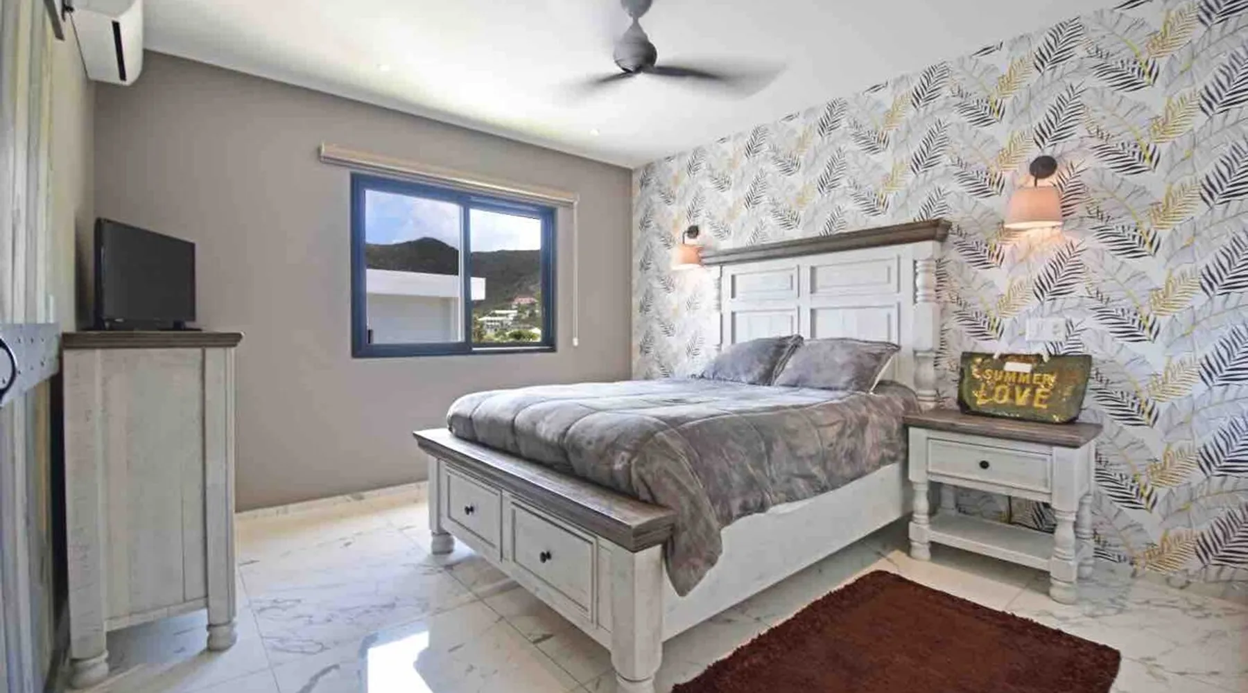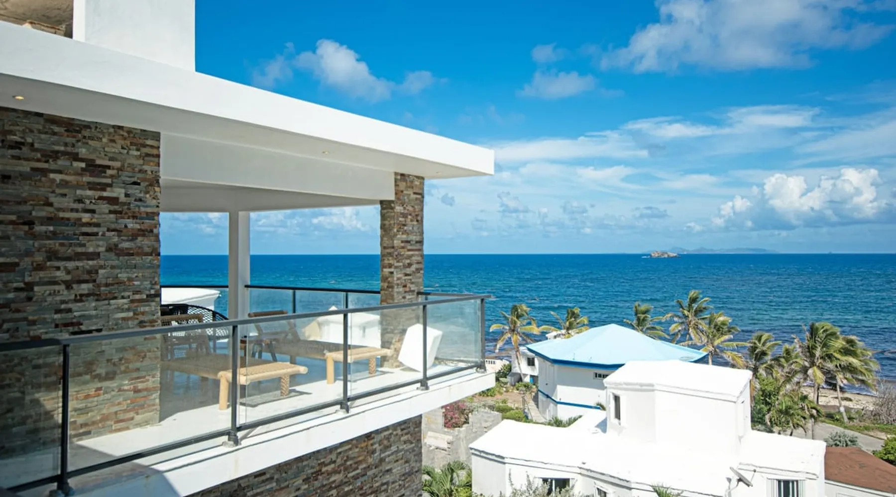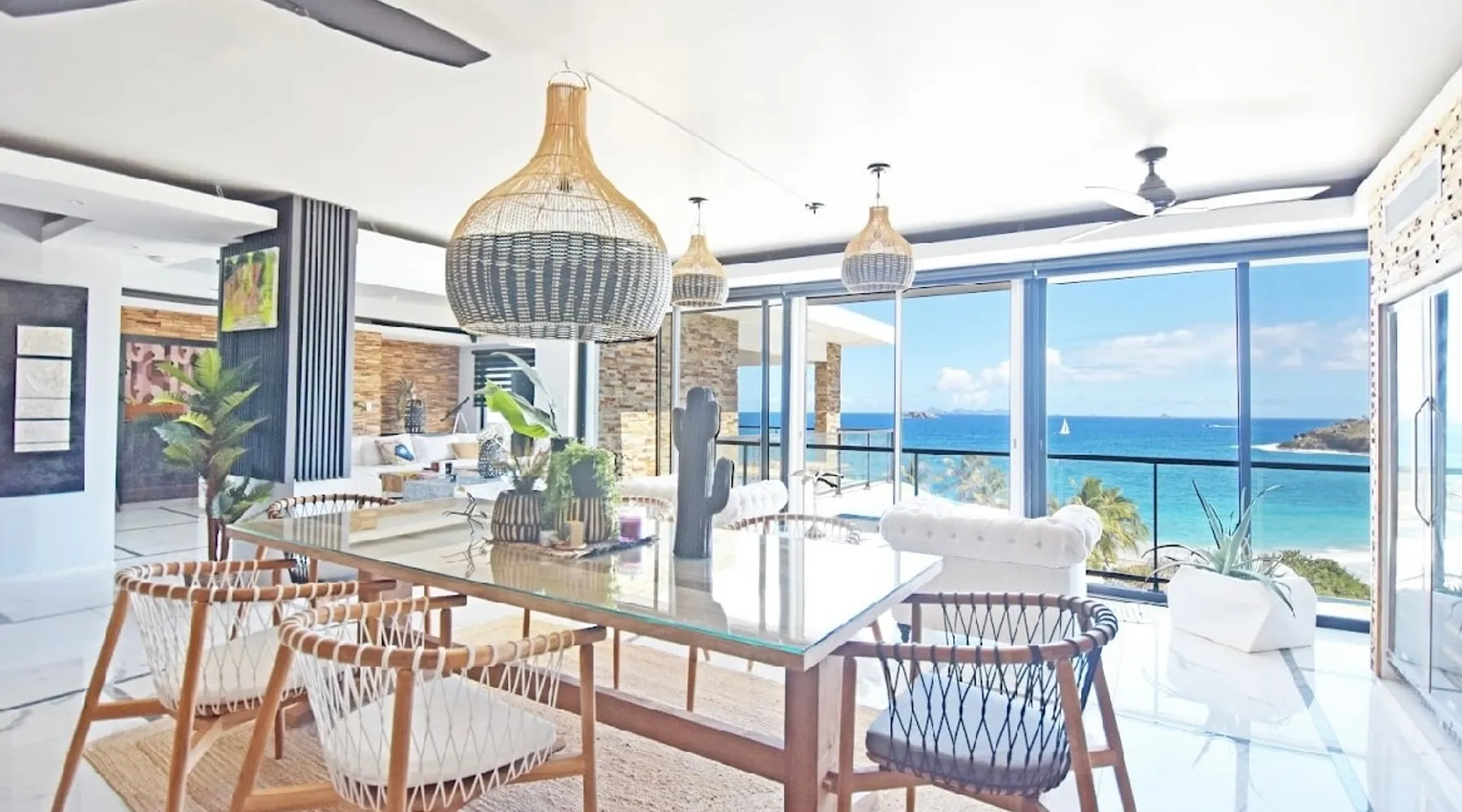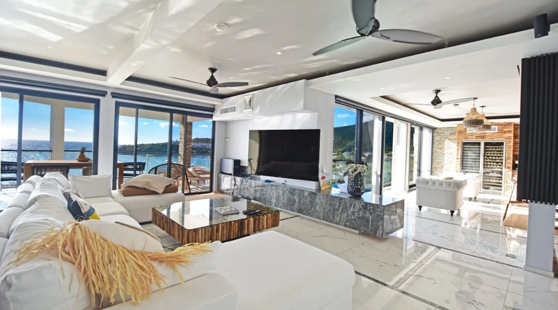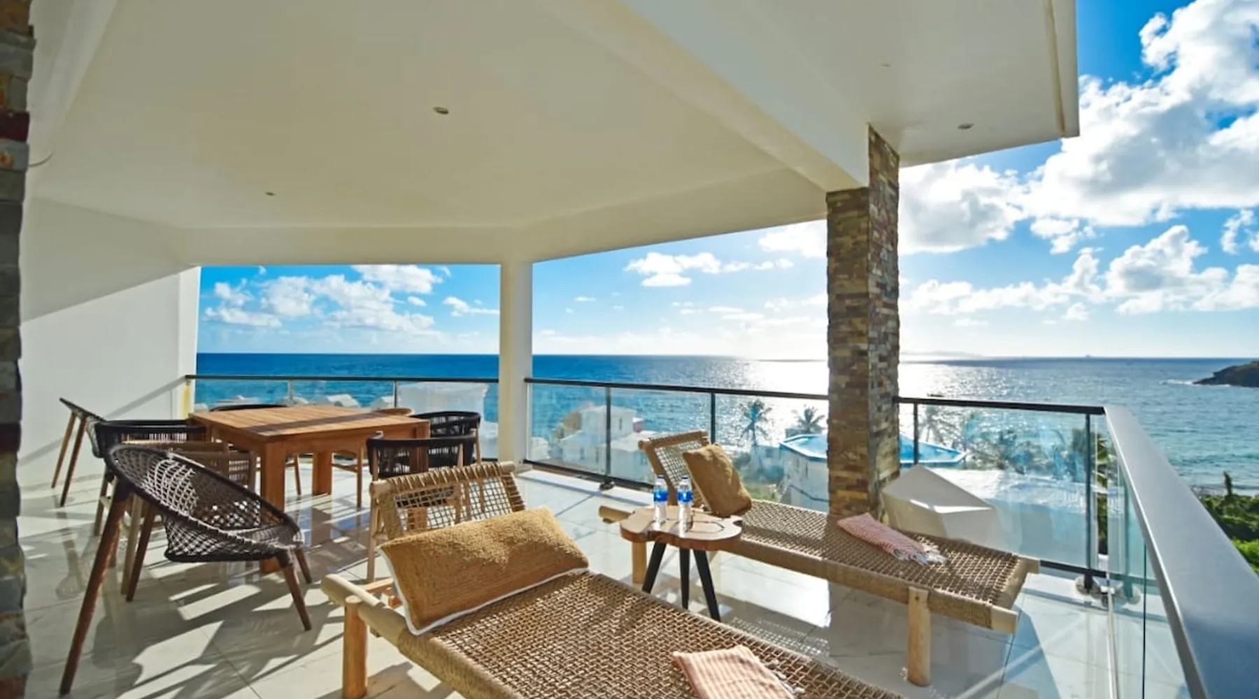 Villa La Vista, a luxurious penthouse perched on a palm-lined hillside in Sint Maarten’s Guana Bay. Just steps from the breathtaking famous Guana Bay Beach. Go relax on the beach and play in the waves as you take in breathtaking views of the Atlantic Ocean and St. Barths. This Penthouse features 4 elegant bedrooms, 4.5 spa-inspired bathrooms, a shared private pool, and an expansive sun terrace. 3 minutes away from the famous philipsburg boardwalk for luxury shopping and curated restaurants. The space Superior design, modern layout, and cutting-edge decor choices define this premier Penthouse in Sint Maarten’s Guana Bay . Set on a palm tree hillside overlooking the beautiful crystal clear Atlantic Ocean , the home offers huge living spaces, gorgeous pool deck , and a spacious sun terrace. No expense has been spared with this property, with golden beaches, bars, cruise outings and Philipsburg town nearby. An exceptional view awaits new arrivals that step into the central living space at Villa La Vista , with a shimmering sea framed by a blue pool, waving palm trees and artful pergola. Guests can expect designer furnishings, ranging from huge dining tables and specially-selected beds . The interior boasts stunning artwork from French artists , A fully equipped state of the art kitchen and loungers out on the terrace . The shining, fully-equipped kitchen ensures that catering for big groups is especially easy. From Villa La Vista , guests are a short drive from picturesque shorelines, including the sandy philipsburg beaches ,Simpson Bay Beach and the famous “close-shave” airport approach at Maho Beach. A huge range of ocean outings are available from within minutes, including speed boat trips, scuba diving in crystalline waters, and relaxing yacht and catamaran trips. Visit local rum distilleries for a taste of the island’s unique culture, or take to the countryside on an exhilarating ATV outing. After strolling the colonial Dutch streets of the local town, retire to your private terrace for a cool drink and a glorious sunset WHERE YOU CAN OVERLOOK THE BEAUTIFUL RIVERA OF ST.BARTHS!! Guest access Guests will have exclusive access to the penthouse, including the sun terrace and all indoor living spaces. The condo complex’s private pool is available for guest use, offering a tranquil setting to enjoy the island’s warmth and beauty. Additional amenities include high-speed Wi-Fi, on-site parking, and a fully equipped kitchen. Whether you’re lounging by the pool or exploring the nearby beaches, Villa La Vista offers the perfect mix of privacy and convenience. Other things to note The condo complex features a private pool shared with a small number of other residents, ensuring a peaceful and relaxing atmosphere. While we strive to provide a flawless experience, occasional maintenance may be required to keep the property in perfect condition, and we will notify guests in advance if this occurs. Conveniently located near Sint Maarten’s best beaches, dining, and attractions, Villa La Vista is the ideal home base for your Caribbean getaway. VILLA LA VISTA is FULLY POWERED by a GENERATOR in case of electric outages. Recently the island has had energy shortage problems due to loosing 3 turbines that power the island . The power goes out 1-2 hours daily in most areas . But rest assured you will not be inconvenienced by this at all . The switch to the generator is automatic and seamless.
