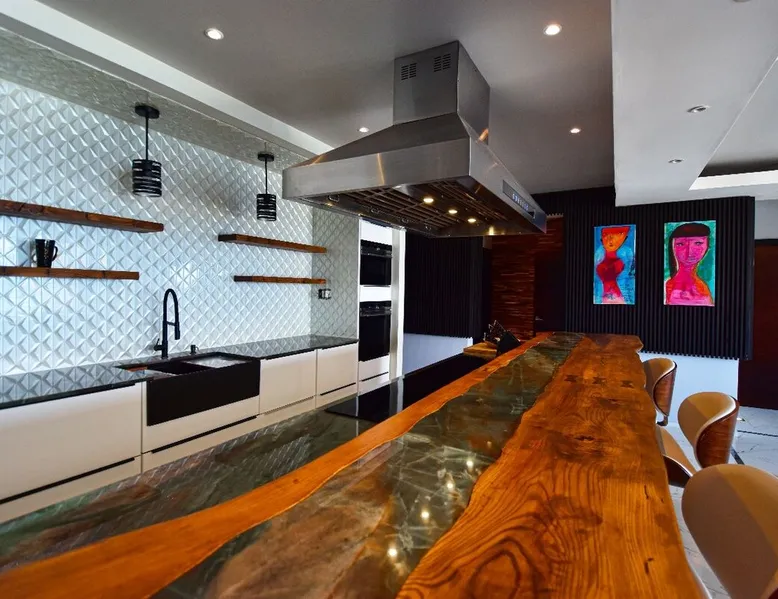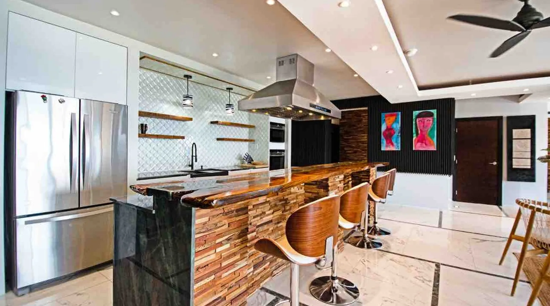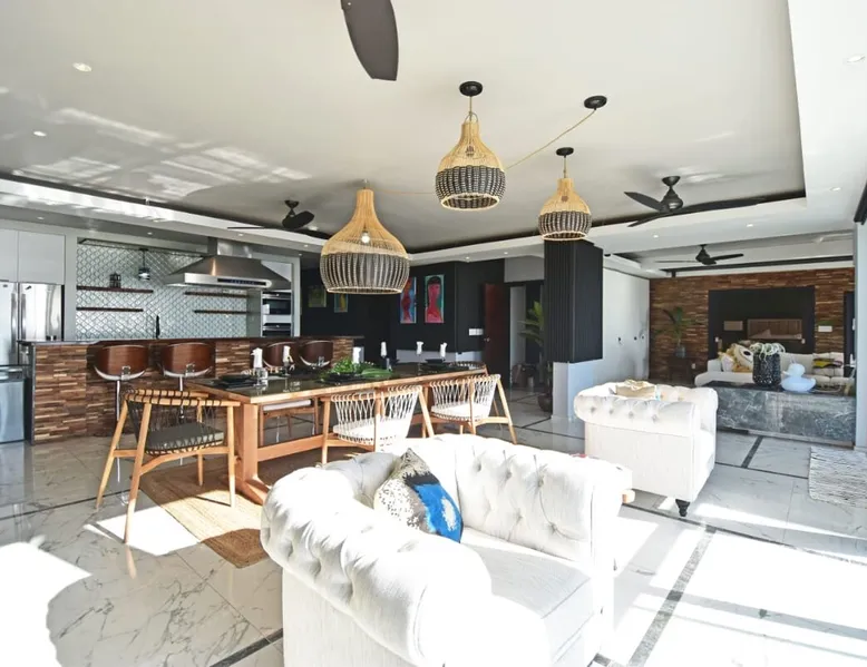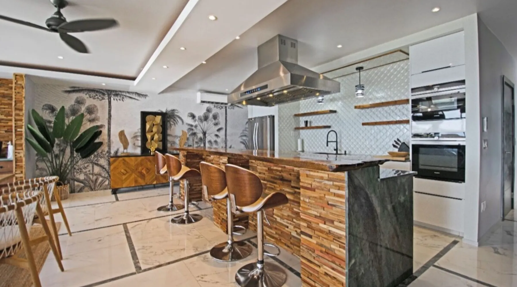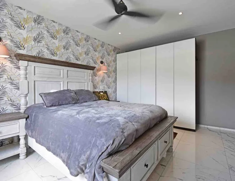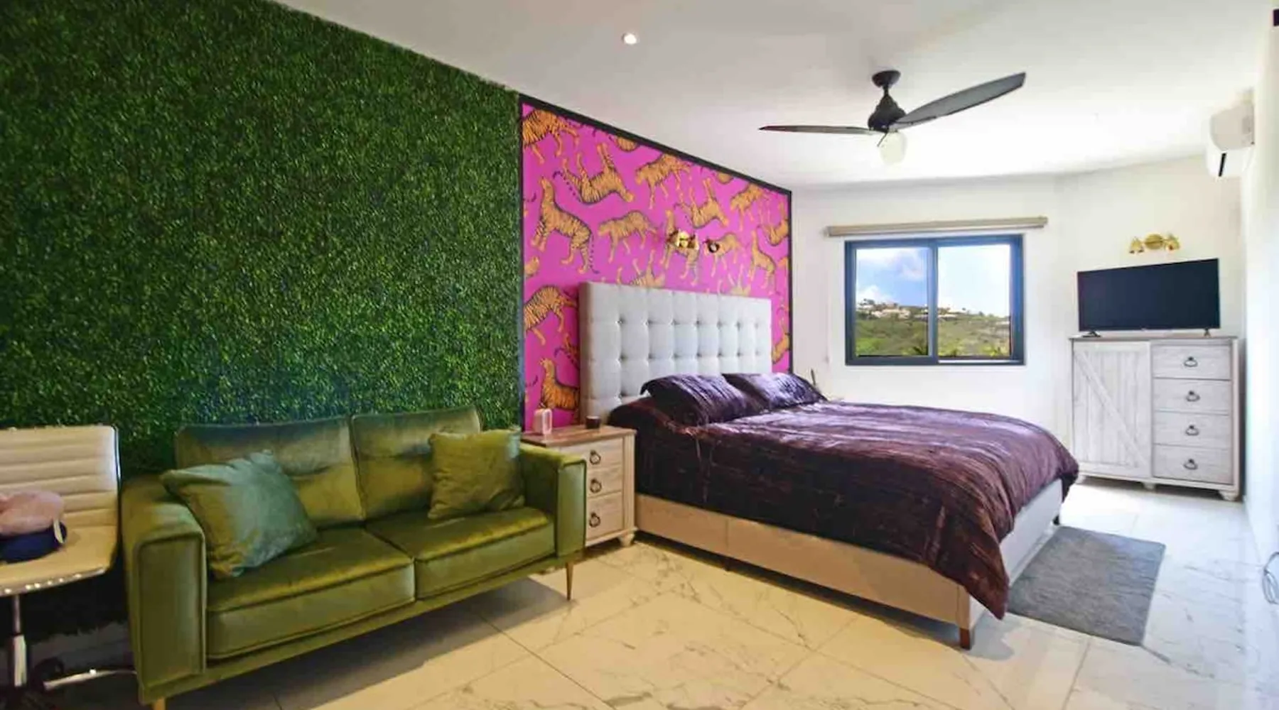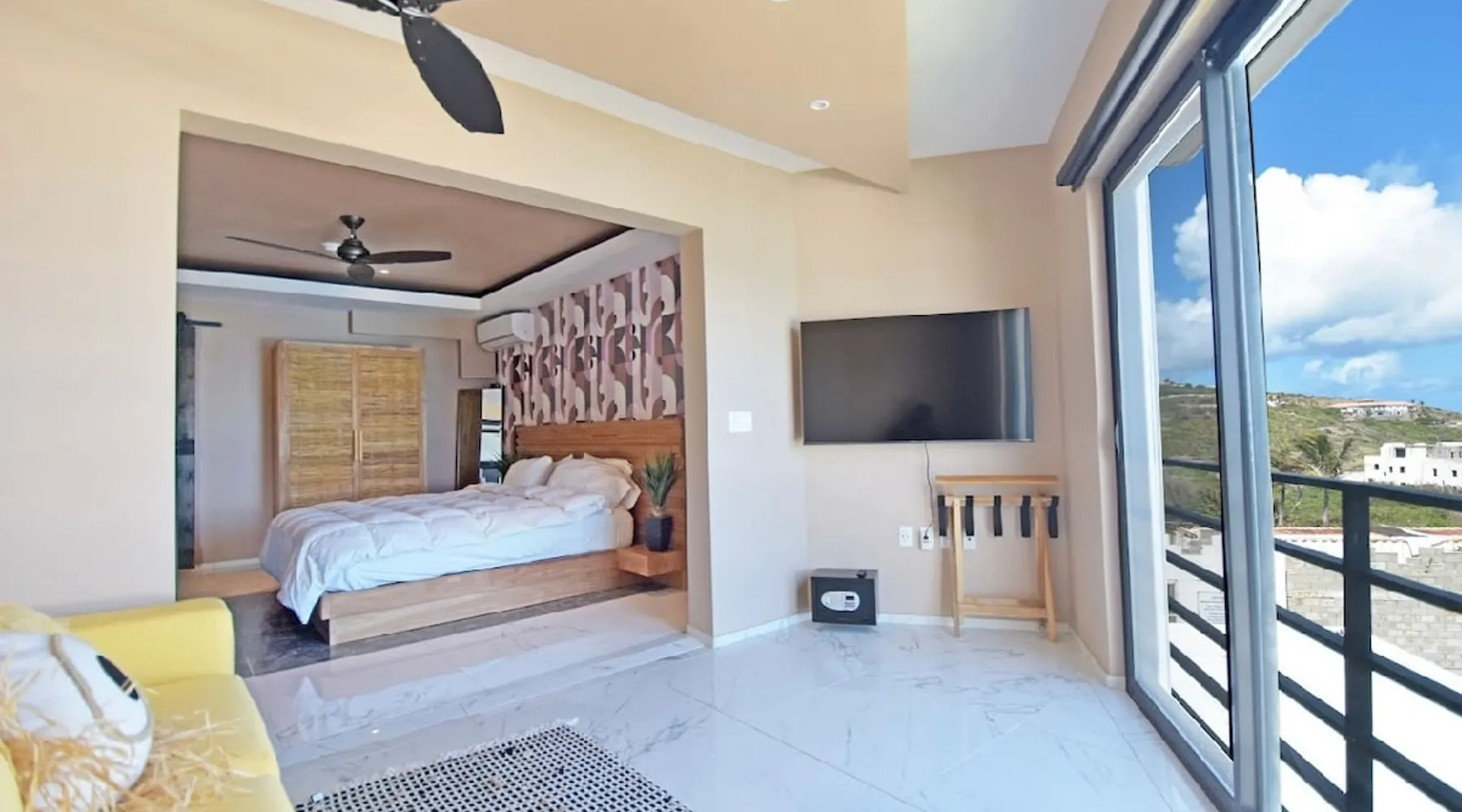 Villa La Vista, a luxurious penthouse perched on a palm-lined hillside in Sint Maarten’s Guana Bay. Just steps from the breathtaking famous Guana Bay Beach. Go relax on the beach and play in the waves as you take in breathtaking views of the Atlantic Ocean and St. Barths. This Penthouse features 4 elegant bedrooms, 4.5 spa-inspired bathrooms, a shared private pool, and an expansive sun terrace. 3 minutes away from the famous philipsburg boardwalk for luxury shopping and curated restaurants. The space Superior design, modern layout, and cutting-edge decor choices define this premier Penthouse in Sint Maarten’s Guana Bay . Set on a palm tree hillside overlooking the beautiful crystal clear Atlantic Ocean , the home offers huge living spaces, gorgeous pool deck , and a spacious sun terrace. No expense has been spared with this property, with golden beaches, bars, cruise outings and Philipsburg town nearby. An exceptional view awaits new arrivals that step into the central living space at Villa La Vista , with a shimmering sea framed by a blue pool, waving palm trees and artful pergola. Guests can expect designer furnishings, ranging from huge dining tables and specially-selected beds . The interior boasts stunning artwork from French artists , A fully equipped state of the art kitchen and loungers out on the terrace . The shining, fully-equipped kitchen ensures that catering for big groups is especially easy. From Villa La Vista , guests are a short drive from picturesque shorelines, including the sandy philipsburg beaches ,Simpson Bay Beach and the famous “close-shave” airport approach at Maho Beach. A huge range of ocean outings are available from within minutes, including speed boat trips, scuba diving in crystalline waters, and relaxing yacht and catamaran trips. Visit local rum distilleries for a taste of the island’s unique culture, or take to the countryside on an exhilarating ATV outing. After strolling the colonial Dutch streets of the local town, retire to your private terrace for a cool drink and a glorious sunset WHERE YOU CAN OVERLOOK THE BEAUTIFUL RIVERA OF ST.BARTHS!! Guest access Guests will have exclusive access to the penthouse, including the sun terrace and all indoor living spaces. The condo complex’s private pool is available for guest use, offering a tranquil setting to enjoy the island’s warmth and beauty. Additional amenities include high-speed Wi-Fi, on-site parking, and a fully equipped kitchen. Whether you’re lounging by the pool or exploring the nearby beaches, Villa La Vista offers the perfect mix of privacy and convenience. Other things to note The condo complex features a private pool shared with a small number of other residents, ensuring a peaceful and relaxing atmosphere. While we strive to provide a flawless experience, occasional maintenance may be required to keep the property in perfect condition, and we will notify guests in advance if this occurs. Conveniently located near Sint Maarten’s best beaches, dining, and attractions, Villa La Vista is the ideal home base for your Caribbean getaway. VILLA LA VISTA is FULLY POWERED by a GENERATOR in case of electric outages. Recently the island has had energy shortage problems due to loosing 3 turbines that power the island . The power goes out 1-2 hours daily in most areas . But rest assured you will not be inconvenienced by this at all . The switch to the generator is automatic and seamless.