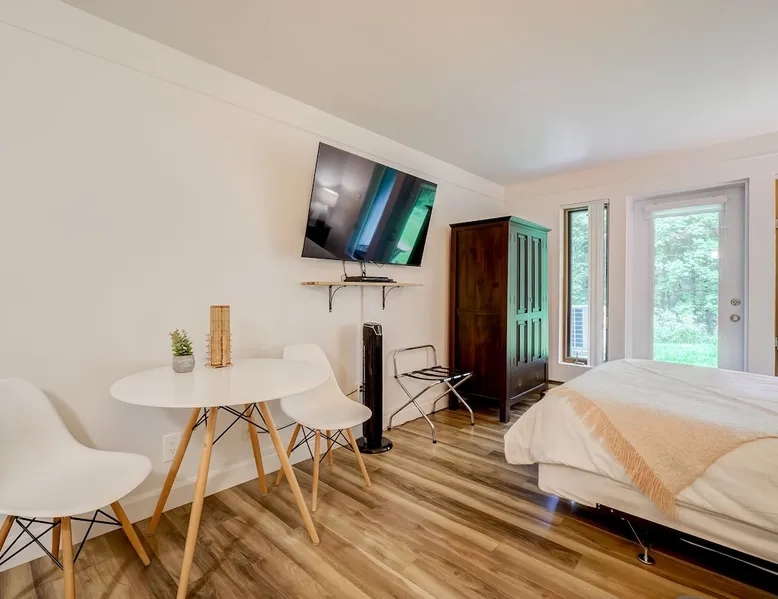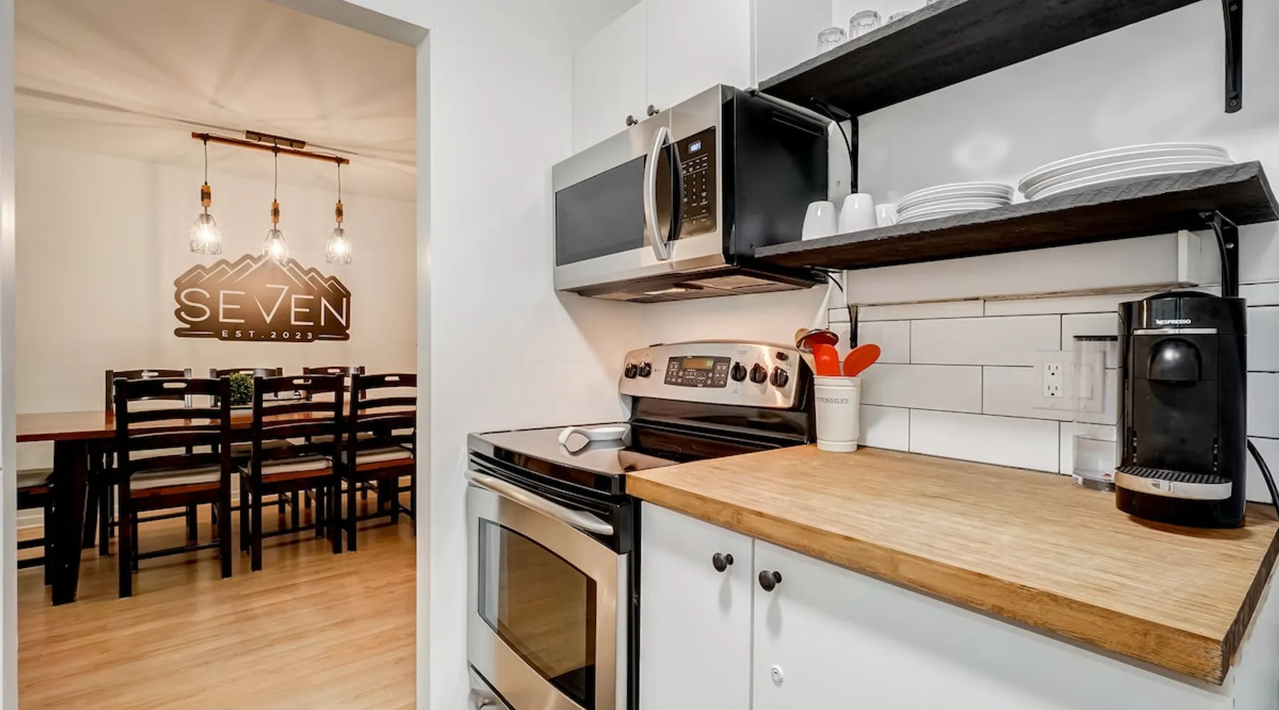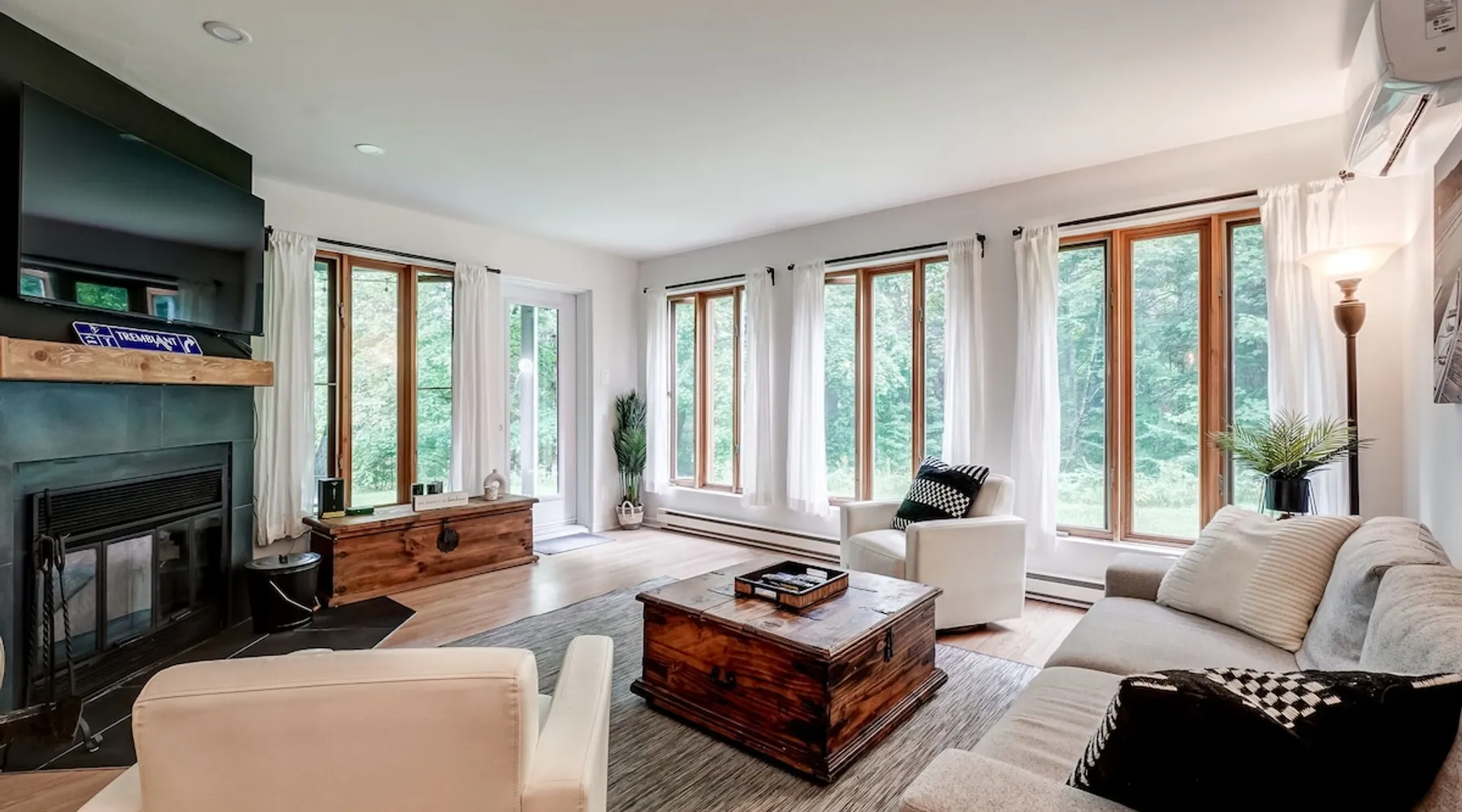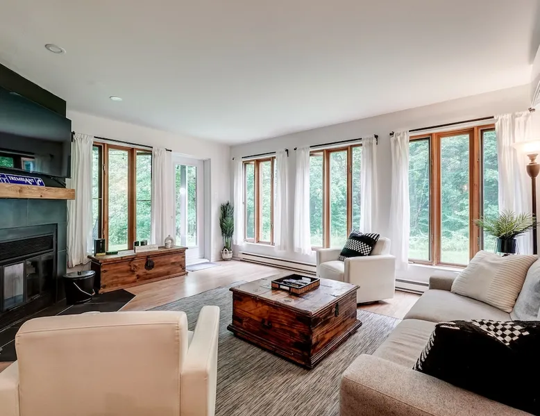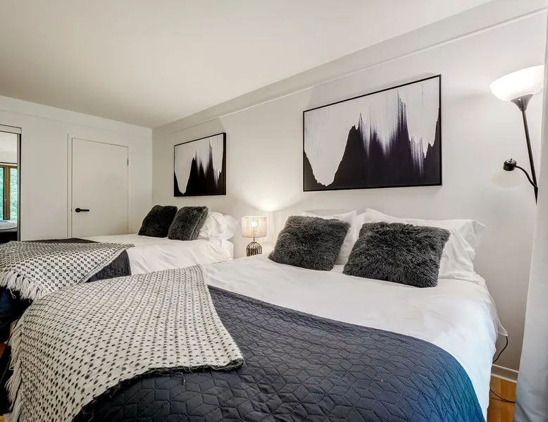 Welcome to our little piece of paradise! This beautiful condo with 2 suites is perfectly situated at only 7 minutes from the mountain, 5 minutes from old Mont-Tremblant and 5 minutes from St-Jovite. This condo gives you the tranquility you need from the city and provides easy access to skiing, hiking, mountain biking and so much more. Immerse yourself in comfort and convenience while indulging in the beauty of Mont-Tremblant. The space Le SEVEN offers 2 units for the comfort and space of all First unit includes full kitchen, large dining room, living room with lors of natural lights, full bathroom, one bedroom with 2 queen beds and private patio. Second unit includes partial kitchen, full bathroom, one queen size bed, one sofa bed (double) and of course its own patio. Guest access Le SEVEN rents both units together and the guests have access to the entire area Other things to note Free parking Registration Details Quebec - Registration number 300696, expires: 2026-09-13