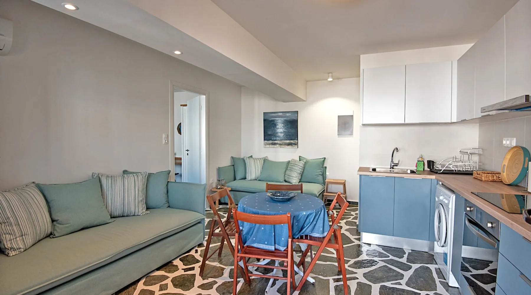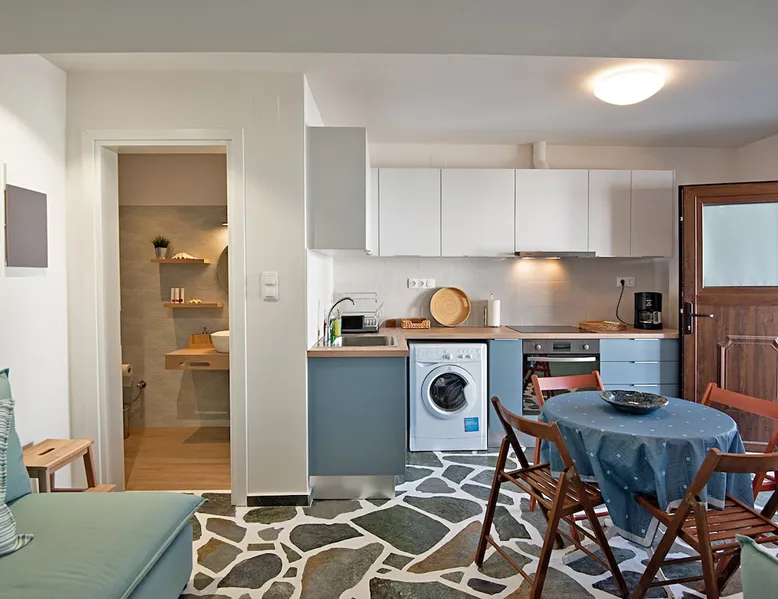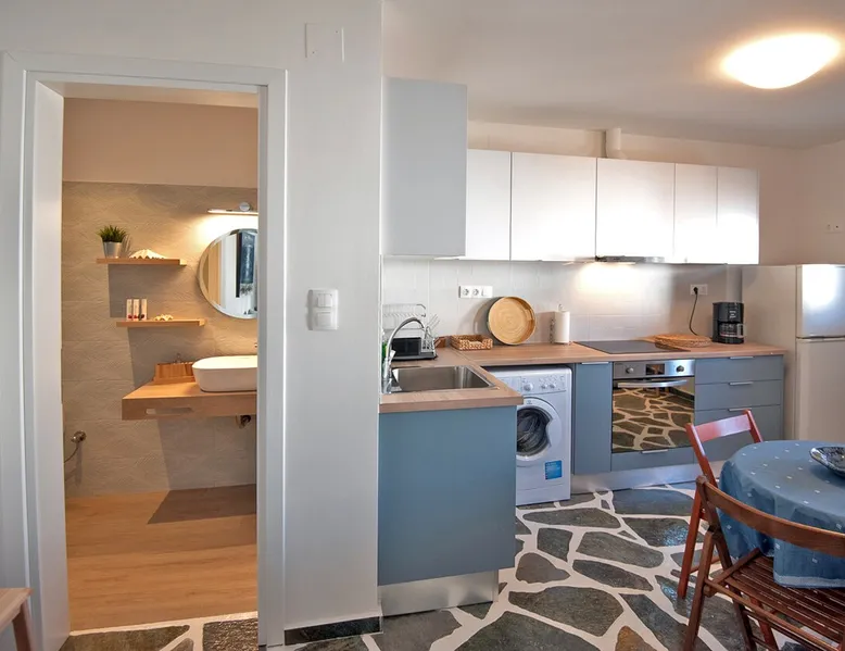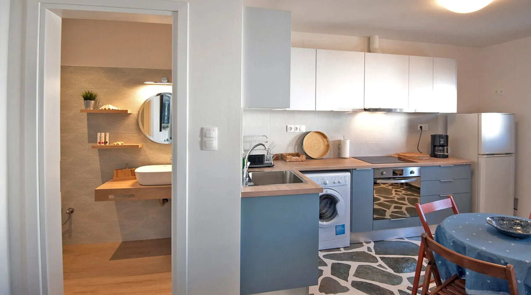 A newly built studio apartment just 4 minutes from the famous beach of Galissas! The space The apartment consists of two large rooms (a bedroom and a living room/kitchen) and it includes all the necessary amenities, such as a fully equipped kitchen, TVs, dining table, a spacious bathroom with a walk-in shower, washer, 2 sofa beds, even a little private veranda where you can have your coffee or breakfast in the morning! Other things to note Located about 50 meters from the main bus stop, as well as very close to mini markets, ATMs, restaurants and the village center. Registration Details 1177K111K0485900