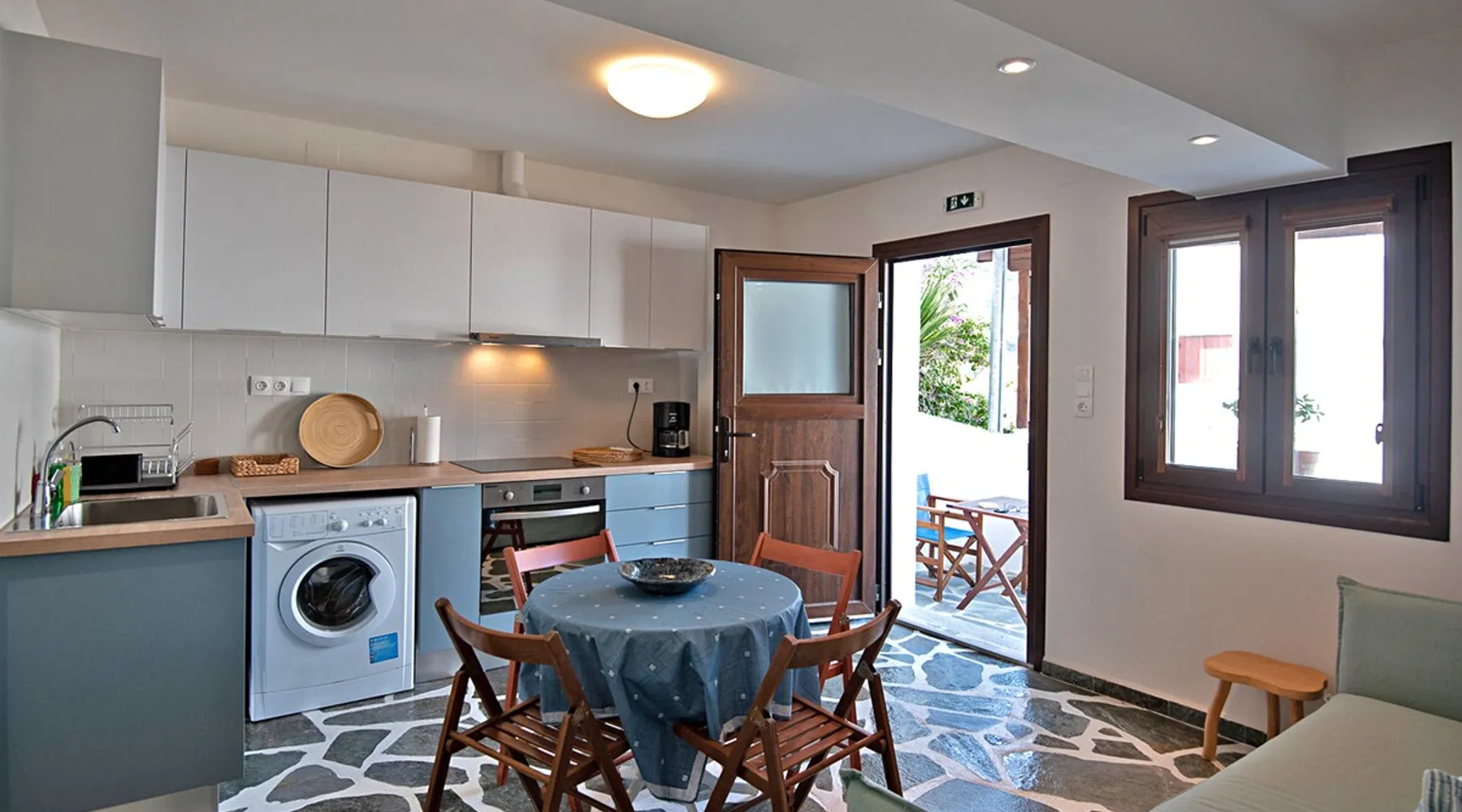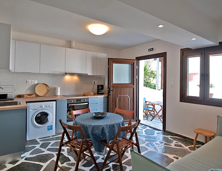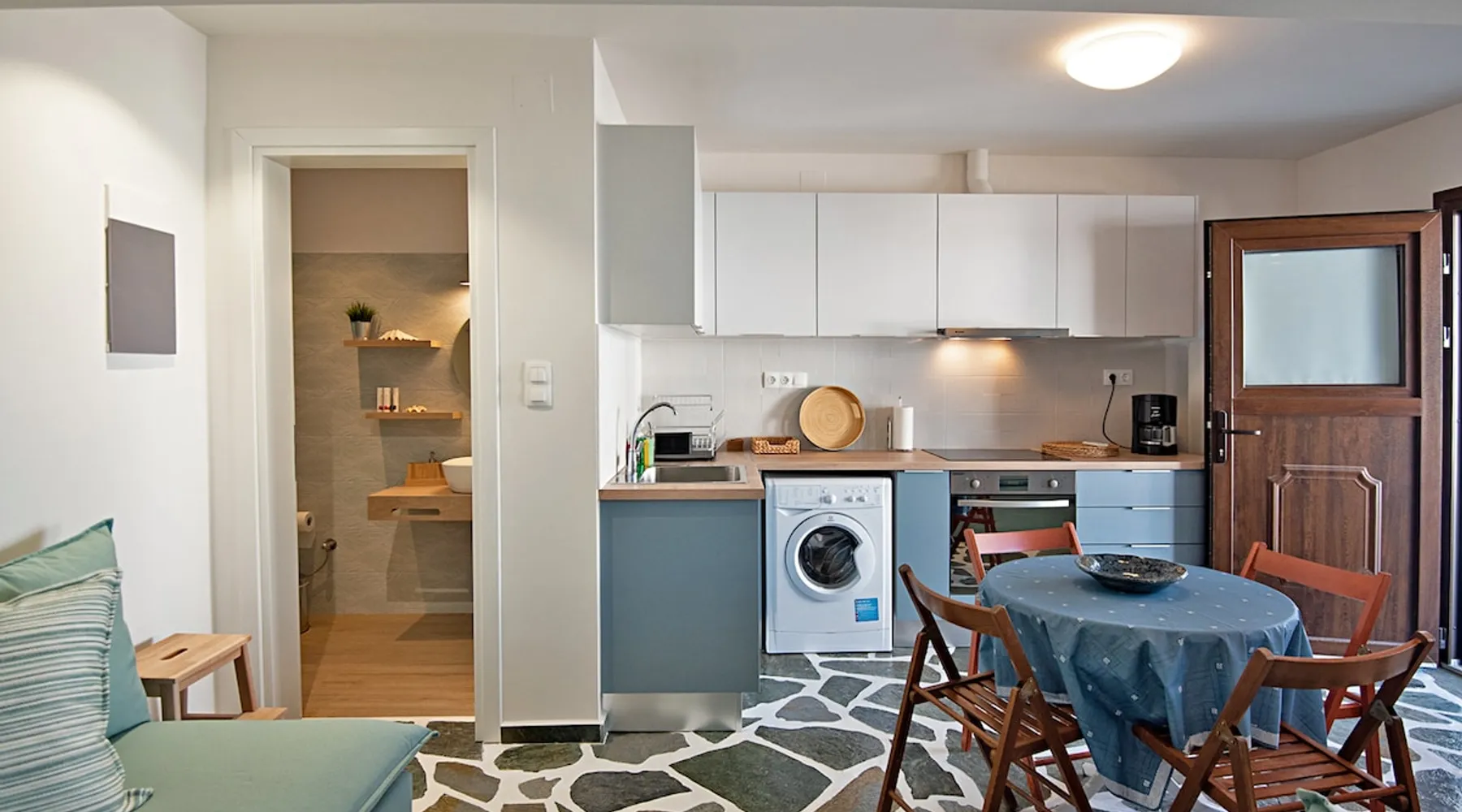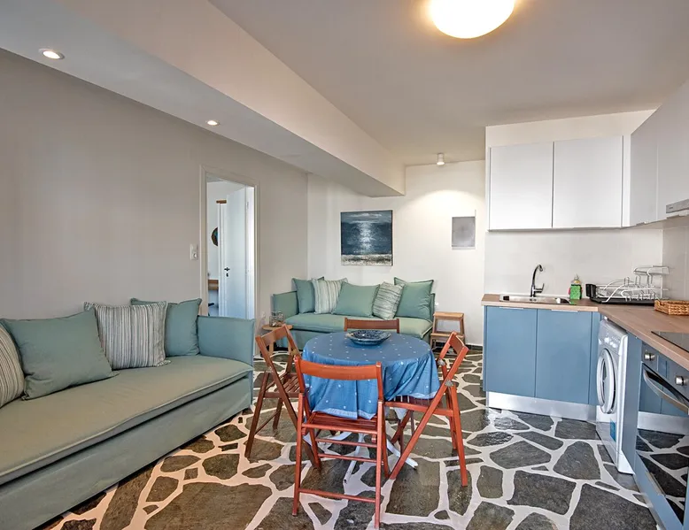 A newly built studio apartment just 4 minutes from the famous beach of Galissas! The space The apartment consists of two large rooms (a bedroom and a living room/kitchen) and it includes all the necessary amenities, such as a fully equipped kitchen, TVs, dining table, a spacious bathroom with a walk-in shower, washer, 2 sofa beds, even a little private veranda where you can have your coffee or breakfast in the morning! Other things to note Located about 50 meters from the main bus stop, as well as very close to mini markets, ATMs, restaurants and the village center. Registration Details 1177K111K0485900