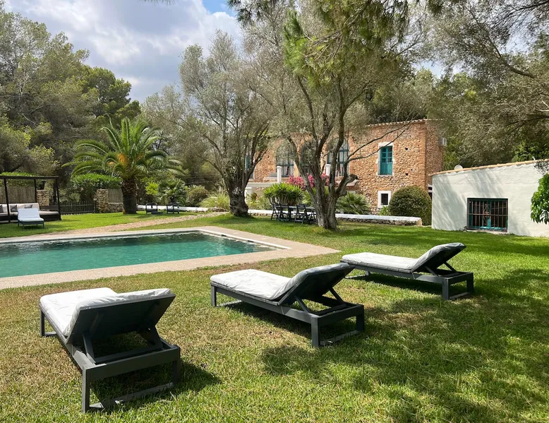 Where elegance and history come together. strategic location. Authentic finca just minutes from the center of Ibiza. It consists of 2 levels. On the ground floor there is a kitchen, a dining room, a living room with sofa and television, 2 bedrooms and 2 bathrooms. Upstairs we find two bedrooms, a bathroom and a crazy terrace overlooking the pool and the greenery of nature. Behind the pool we have a independent house with two bedroom, one bathroom and kitchen. Registration Details Spain - National registration number ESFCTU000007036000093714000000000000000000ETV-1615-E5