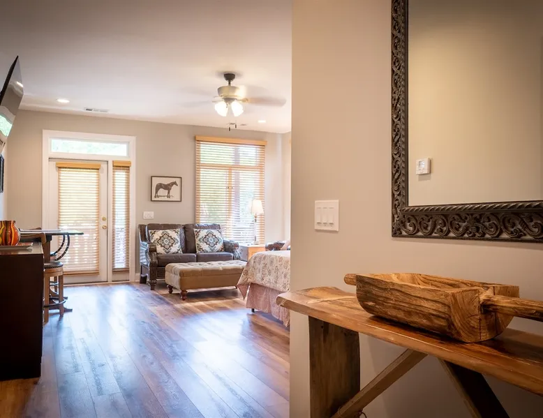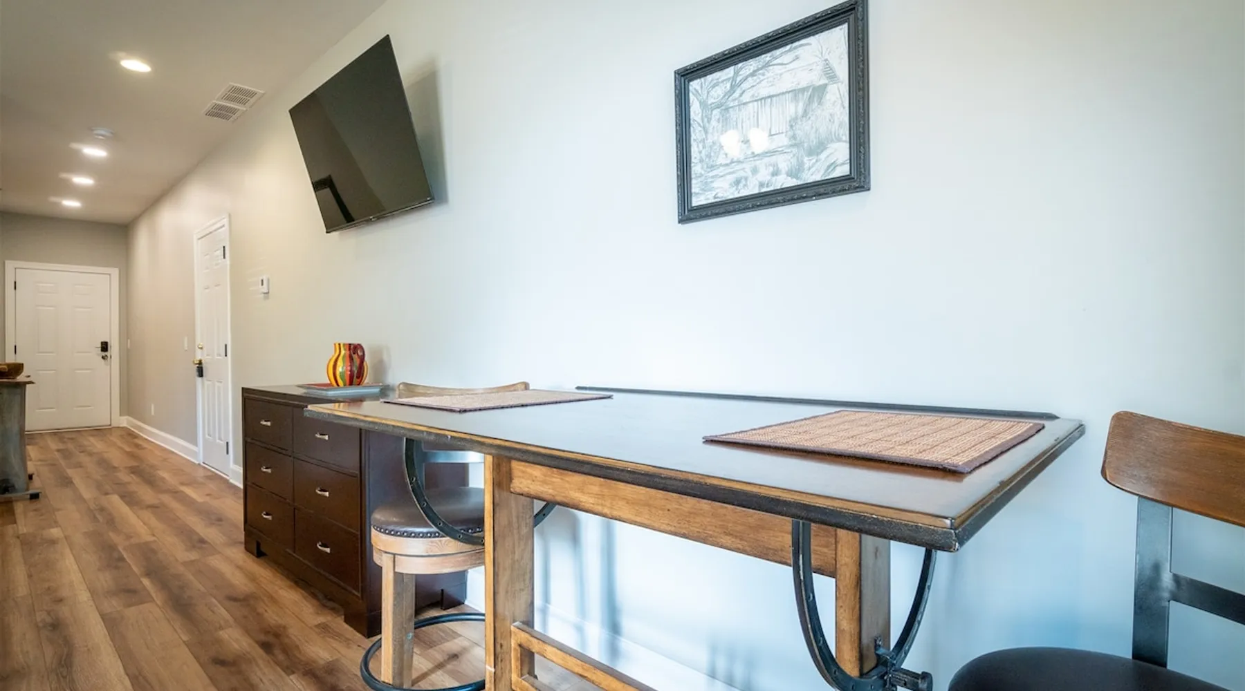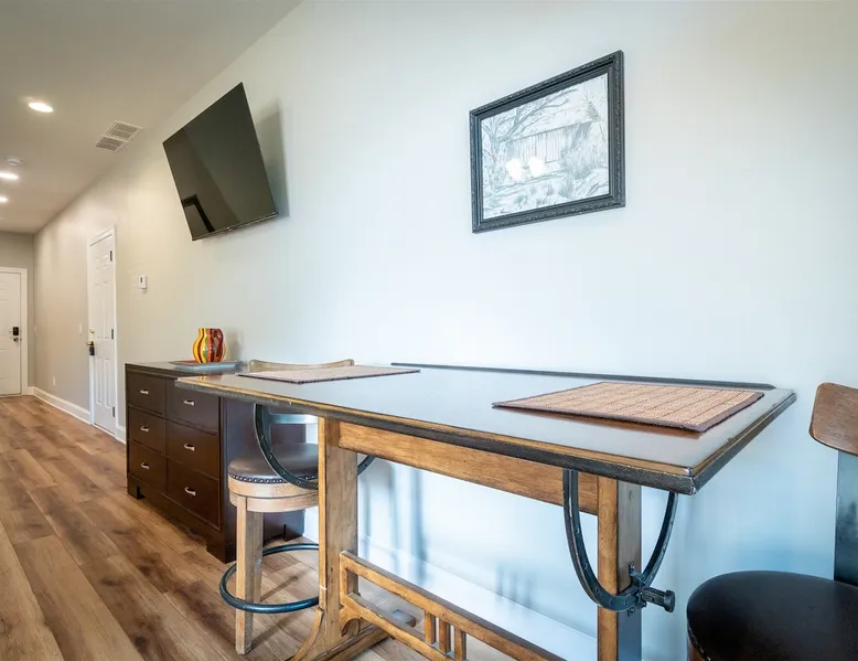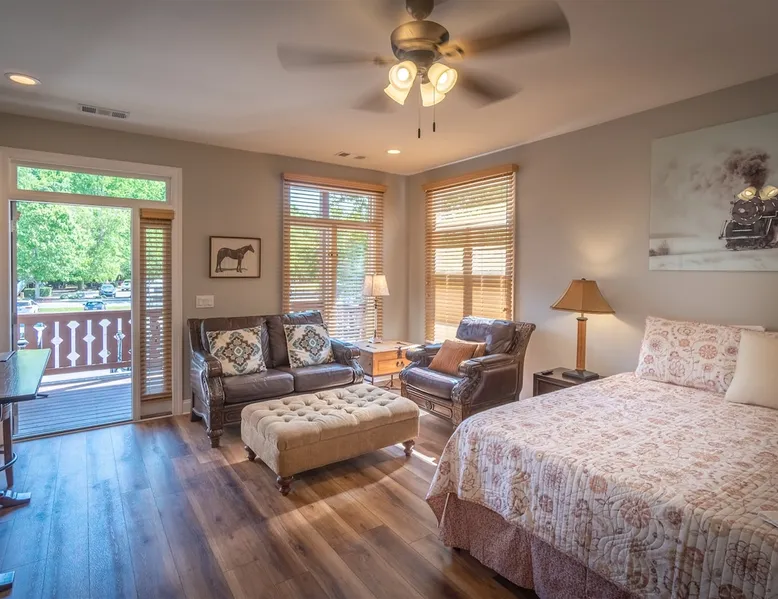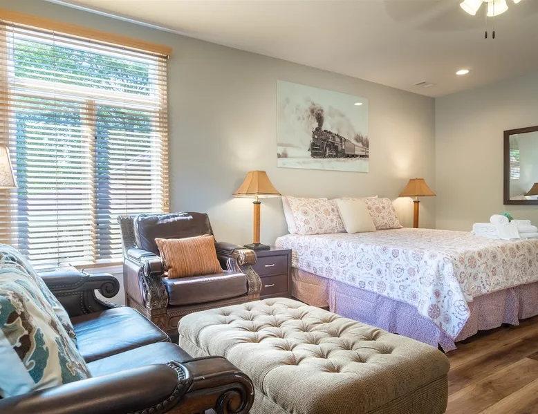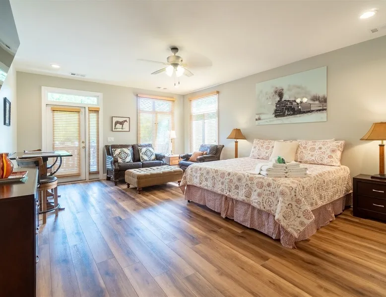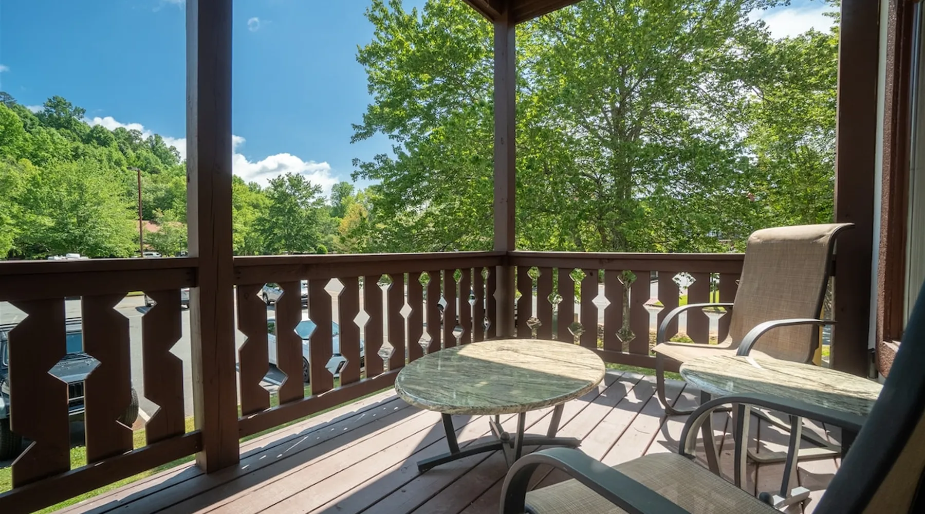 Charming central studio with private deck & AC - walk to river & downtown. Enjoy a mountain getaway in the heart of Helen at this Alpine Village condo. An ideal year-round retreat, this charming Bavarian-style village boasts an assortment of all-season entertainment and attractions, from world-famous Oktoberfest and seasonal festivals to regional wine tasting, hiking, and tubing along the Chattahoochee River. The space Booking Notes: 21+ age requirement for lead guest. No exceptions. This property is not pet-friendly. No exceptions. Digital rental agreement will be required to sign and complete after property is booked. Free parking available for 2 vehicles. Book all 4 Condos together and receive 20% off total Nightly Rates! Experience the best of the Blue Ridge Mountains at this Alpine Village studio located in the heart of downtown Helen. An ideal year-round retreat, this charming Bavarian-style village boasts a bevy of all-season entertainment and attractions, from world-famous Oktoberfest and seasonal festivals to regional wine tasting, hiking, and tubing along the Chattahoochee River. Helen's cobblestone streets are teeming with boutique retail offerings, traditional German fare, and immersive sites tracing the area's local history. The perfect home base for a couple's escape, this walkable downtown condo comes equipped for modern convenience. Plan at-home meals with ease in the well-appointed kitchenette and unwind in the open living area with shows and movies on the smart TV. The private deck makes a perfect perch for morning coffee or a glass of wine in the evening. Modern essentials include central air-conditioning and free WiFi. What's Nearby Alpine Mini Golf | 0.1 Miles Cool River Tubing | 0.3 Miles Helen Tubing & Waterpark | 0.7 Miles Nacoochee Adventures | 1.1 Miles Mount Yonah Trailhead | 5.8 Miles Babyland General Hospital | 7.6 Miles Things to Know This condo shares a lock-off door with the adjoining rental. No pets are allowed at this vacation rental. This rental is located on floor 1. Parking notes: Two parking spots available in front of condo. The adjacent parking lot offers free parking as well. ***You will Receive an Email with a Parking Pass Included. Please print this email and place the pass on the dash of all vehicles that will be parking at the unit. (There is a 2 Vehicle Limit). Parking is strictly designated to the area pictured below.