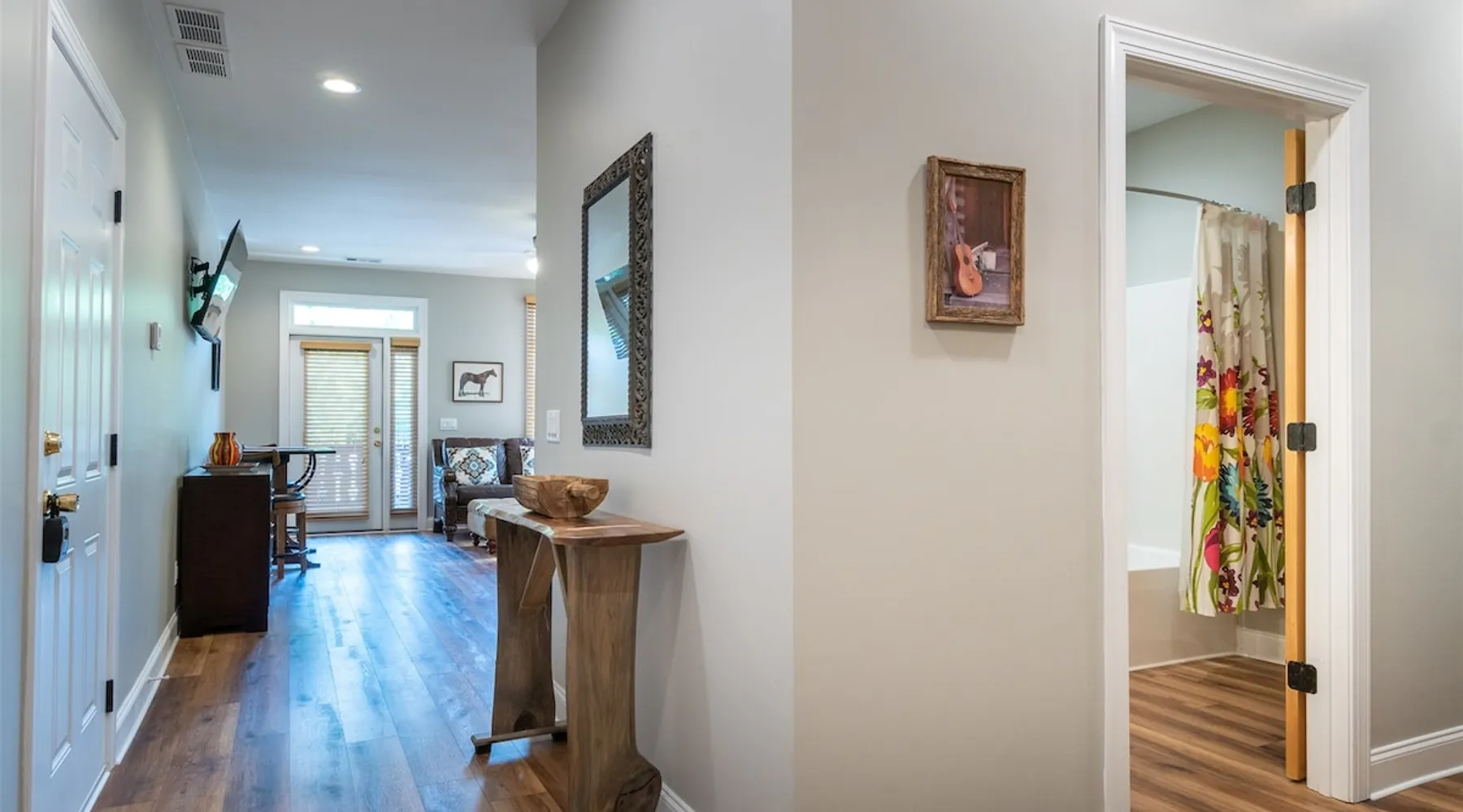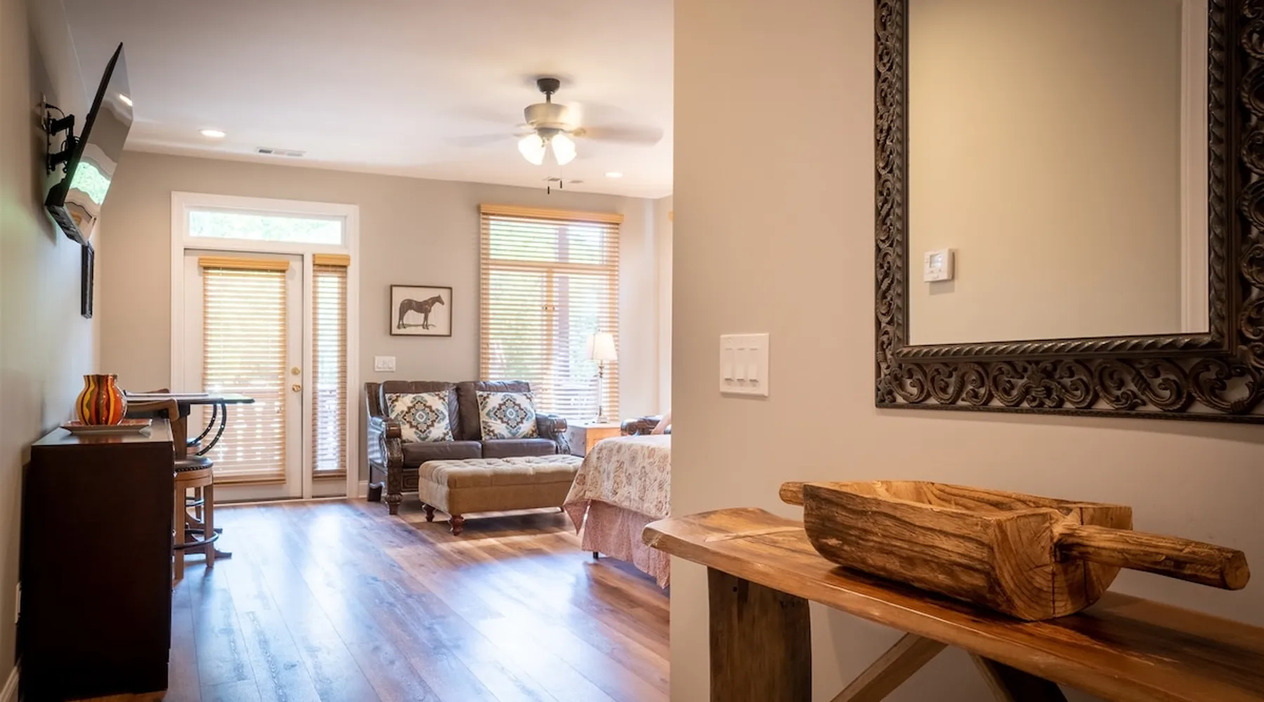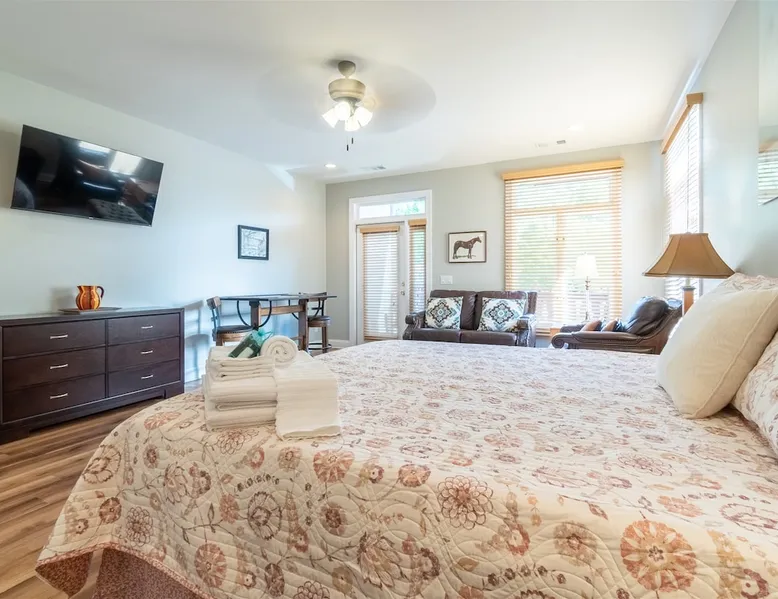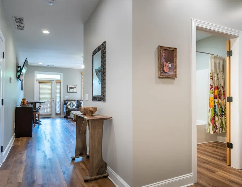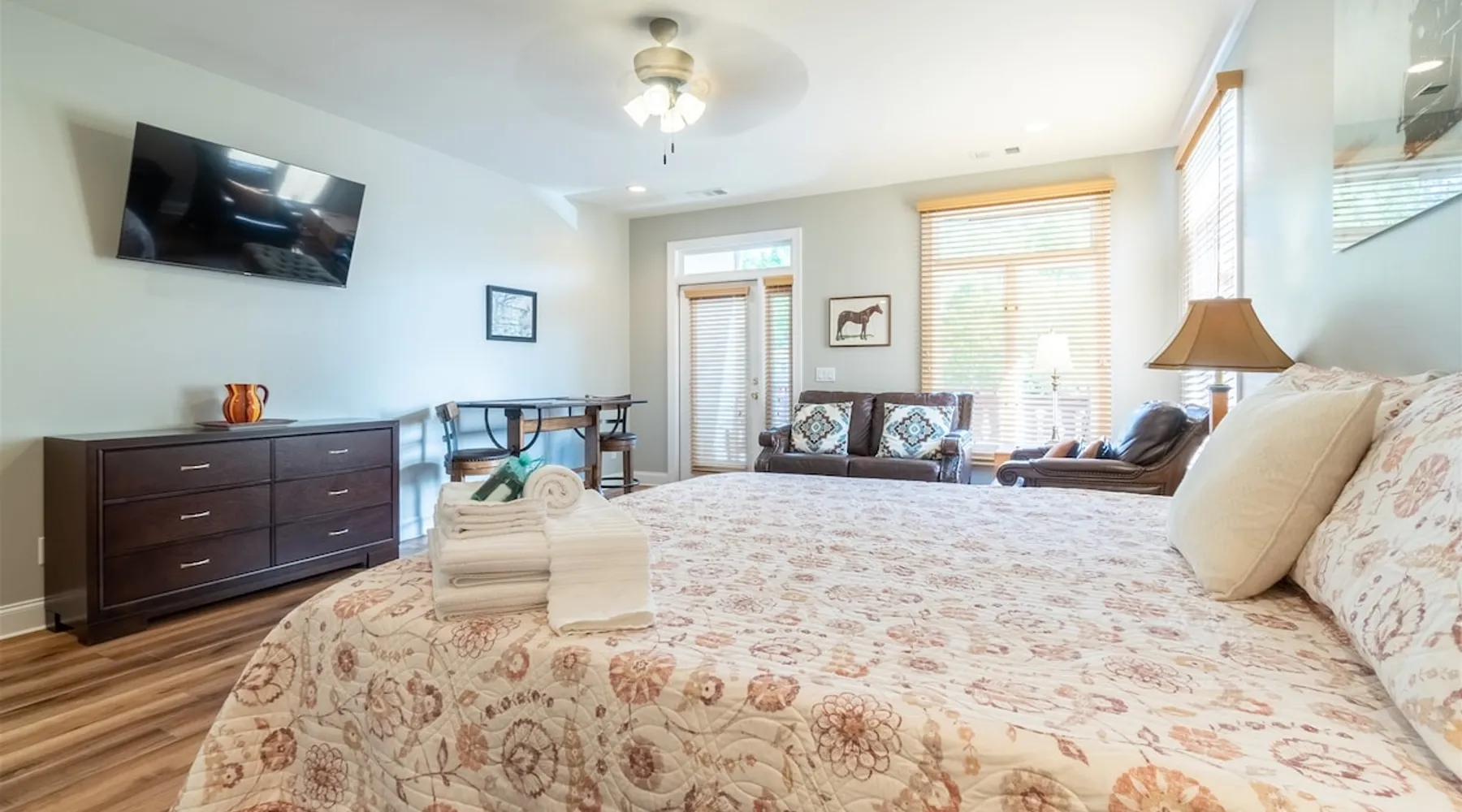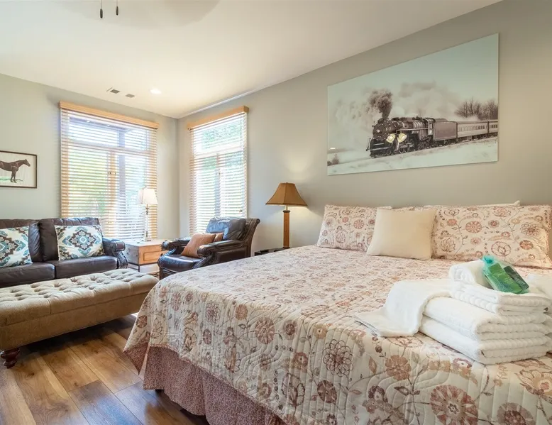 Charming central studio with private deck & AC - walk to river & downtown. Enjoy a mountain getaway in the heart of Helen at this Alpine Village condo. An ideal year-round retreat, this charming Bavarian-style village boasts an assortment of all-season entertainment and attractions, from world-famous Oktoberfest and seasonal festivals to regional wine tasting, hiking, and tubing along the Chattahoochee River. The space Booking Notes: 21+ age requirement for lead guest. No exceptions. This property is not pet-friendly. No exceptions. Digital rental agreement will be required to sign and complete after property is booked. Free parking available for 2 vehicles. Book all 4 Condos together and receive 20% off total Nightly Rates! Experience the best of the Blue Ridge Mountains at this Alpine Village studio located in the heart of downtown Helen. An ideal year-round retreat, this charming Bavarian-style village boasts a bevy of all-season entertainment and attractions, from world-famous Oktoberfest and seasonal festivals to regional wine tasting, hiking, and tubing along the Chattahoochee River. Helen's cobblestone streets are teeming with boutique retail offerings, traditional German fare, and immersive sites tracing the area's local history. The perfect home base for a couple's escape, this walkable downtown condo comes equipped for modern convenience. Plan at-home meals with ease in the well-appointed kitchenette and unwind in the open living area with shows and movies on the smart TV. The private deck makes a perfect perch for morning coffee or a glass of wine in the evening. Modern essentials include central air-conditioning and free WiFi. What's Nearby Alpine Mini Golf | 0.1 Miles Cool River Tubing | 0.3 Miles Helen Tubing & Waterpark | 0.7 Miles Nacoochee Adventures | 1.1 Miles Mount Yonah Trailhead | 5.8 Miles Babyland General Hospital | 7.6 Miles Things to Know This condo shares a lock-off door with the adjoining rental. No pets are allowed at this vacation rental. This rental is located on floor 1. Parking notes: Two parking spots available in front of condo. The adjacent parking lot offers free parking as well. ***You will Receive an Email with a Parking Pass Included. Please print this email and place the pass on the dash of all vehicles that will be parking at the unit. (There is a 2 Vehicle Limit). Parking is strictly designated to the area pictured below.
